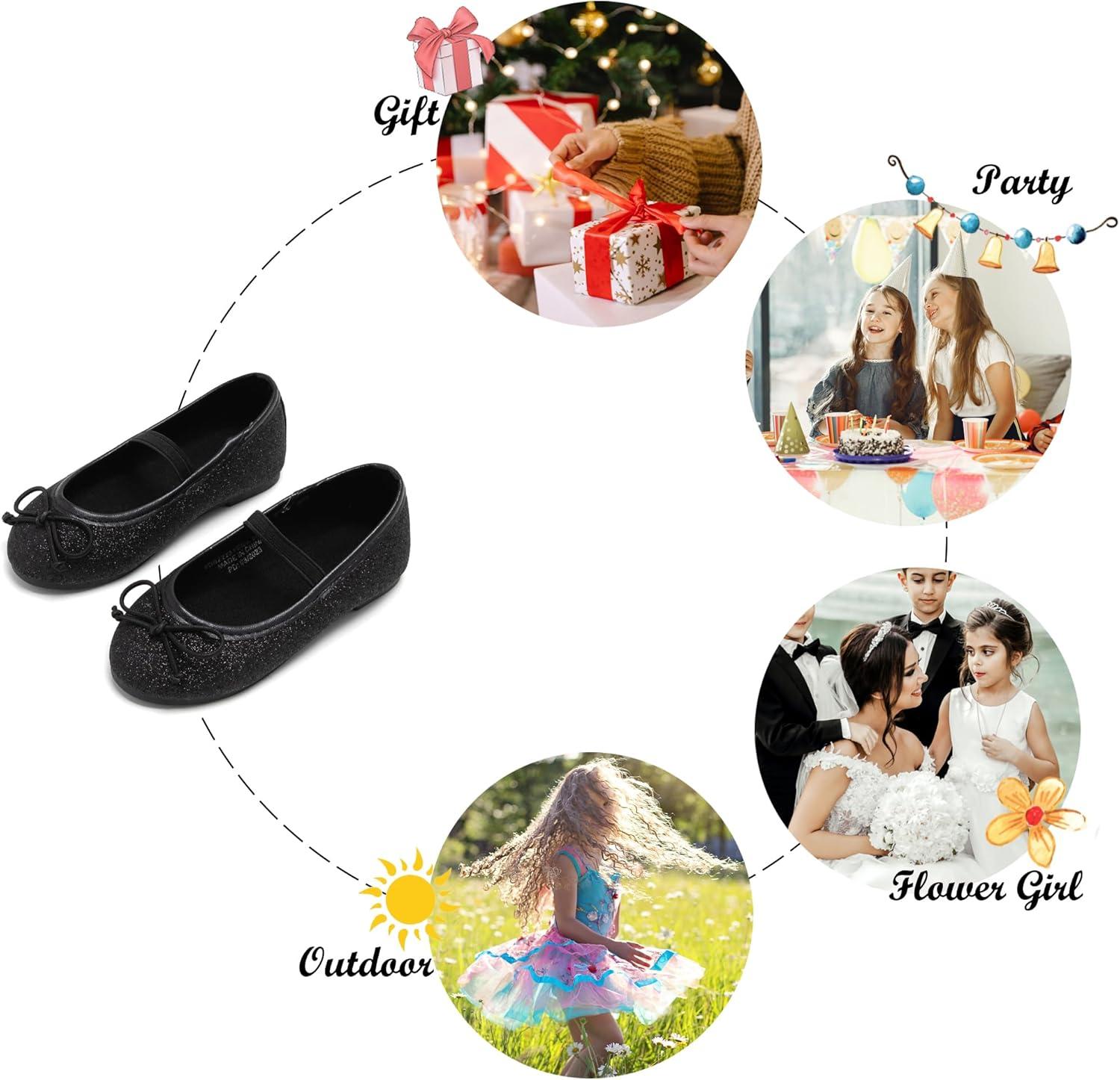 Felix & Flora Toddler Flower Girl Mary Jane Shoes – Little Girls Dress Flats Princess Wedding Party(Bh23-black)