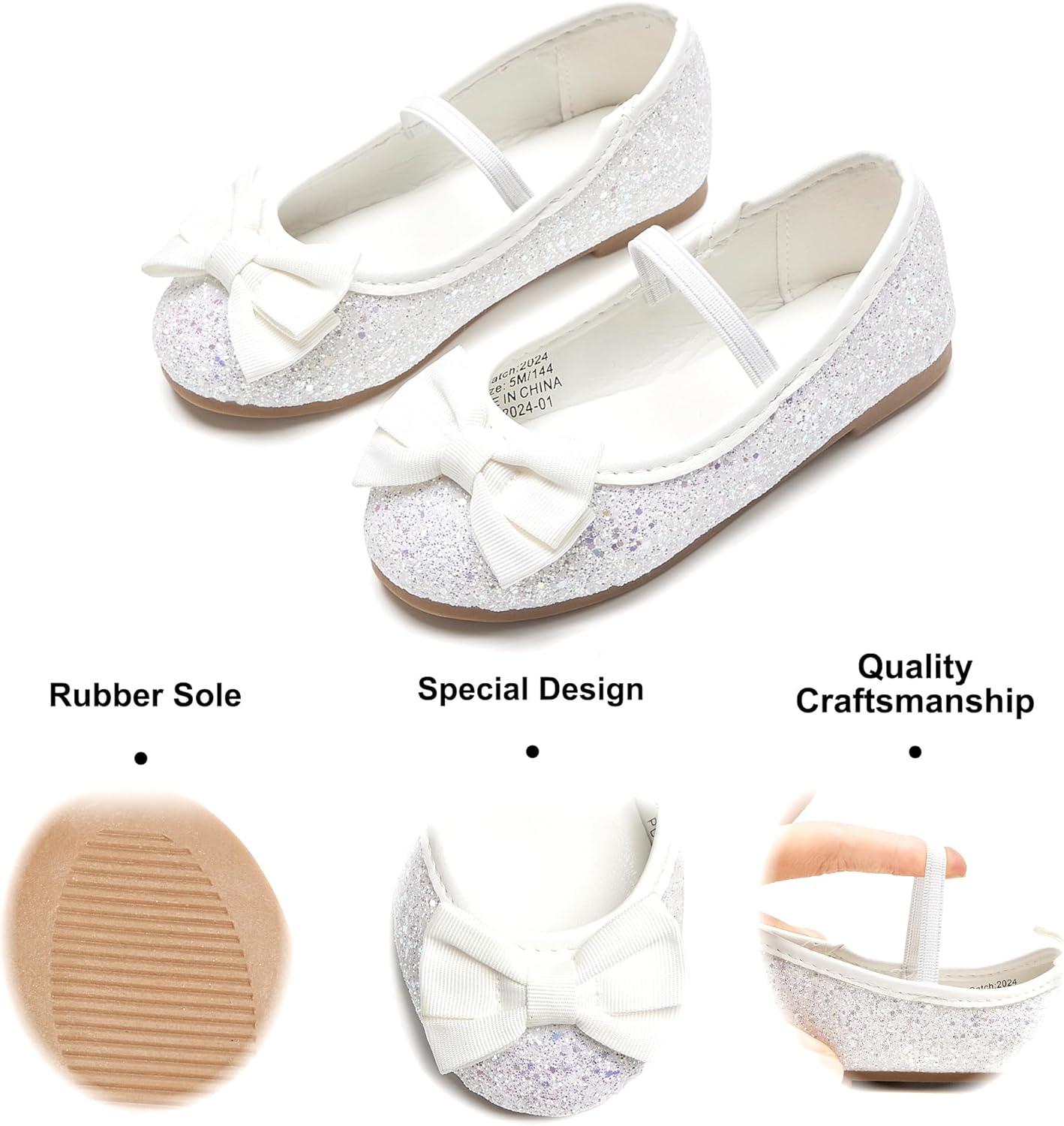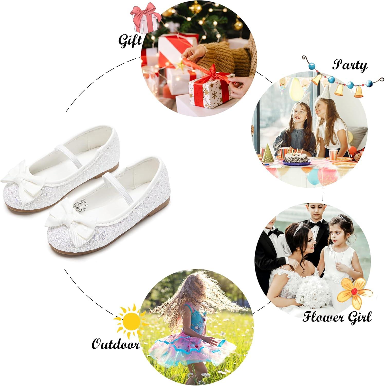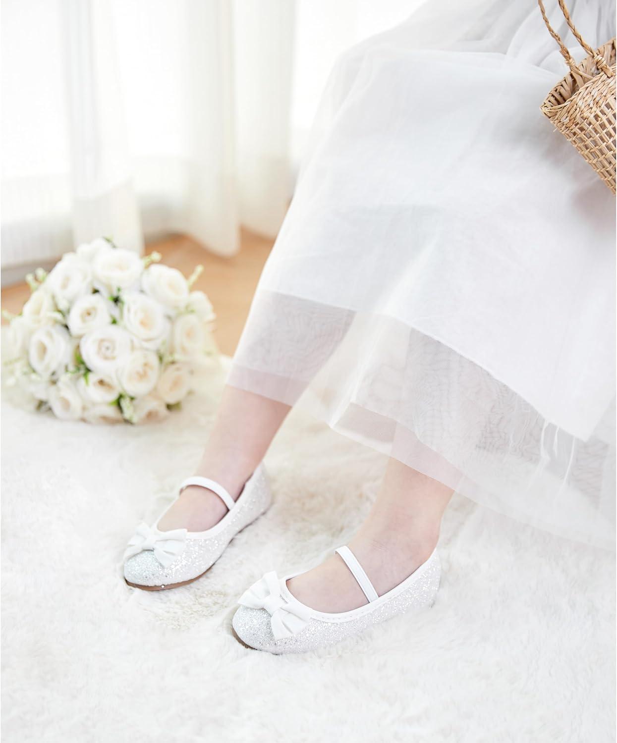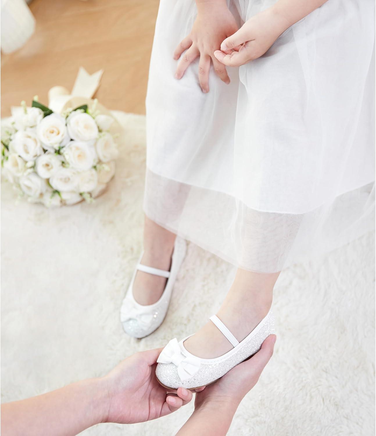Felix & Flora Toddler Flower Girl Mary Jane Shoes – Little Girls Dress Flats Princess Wedding Party(Bh25-white)