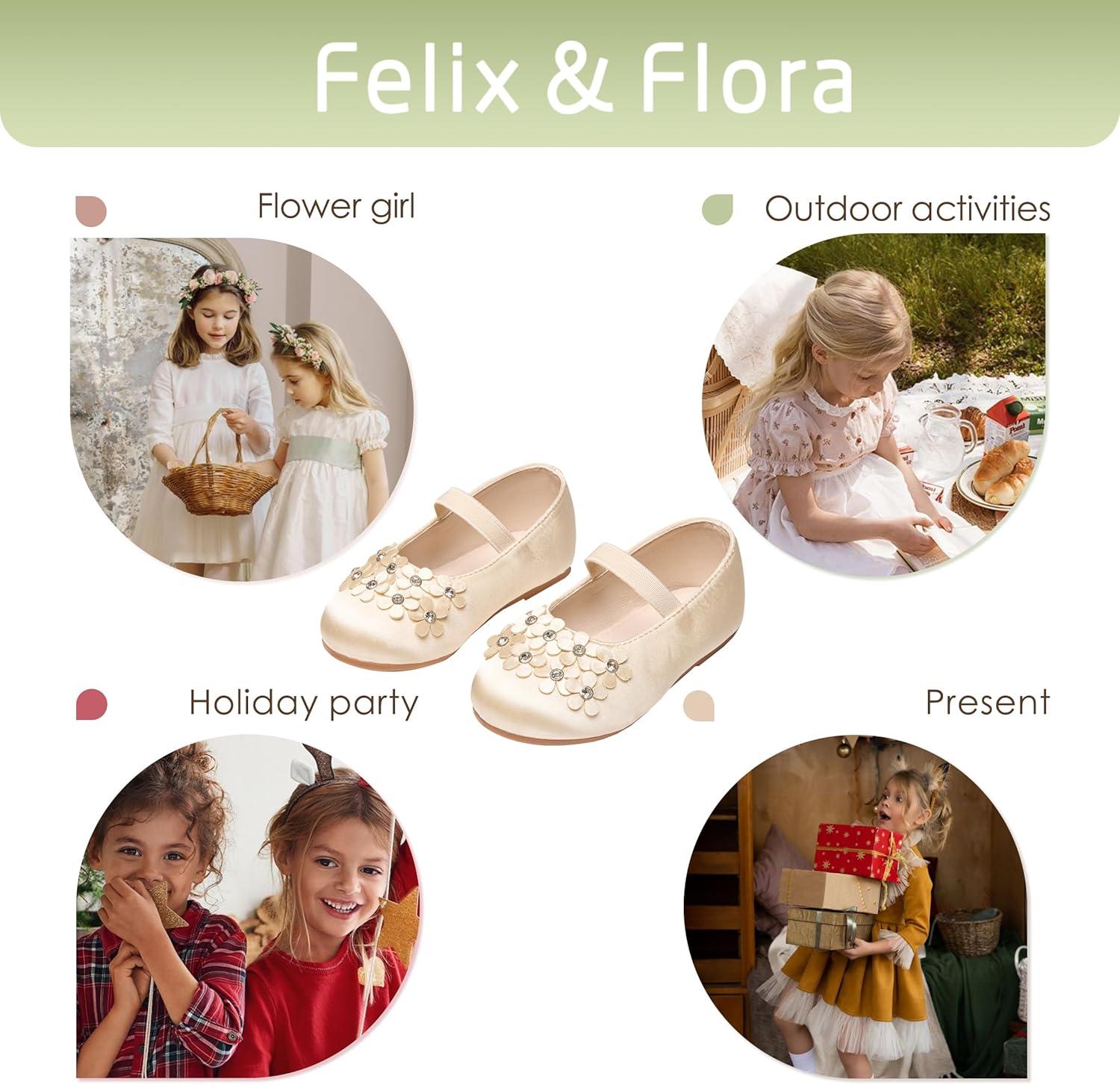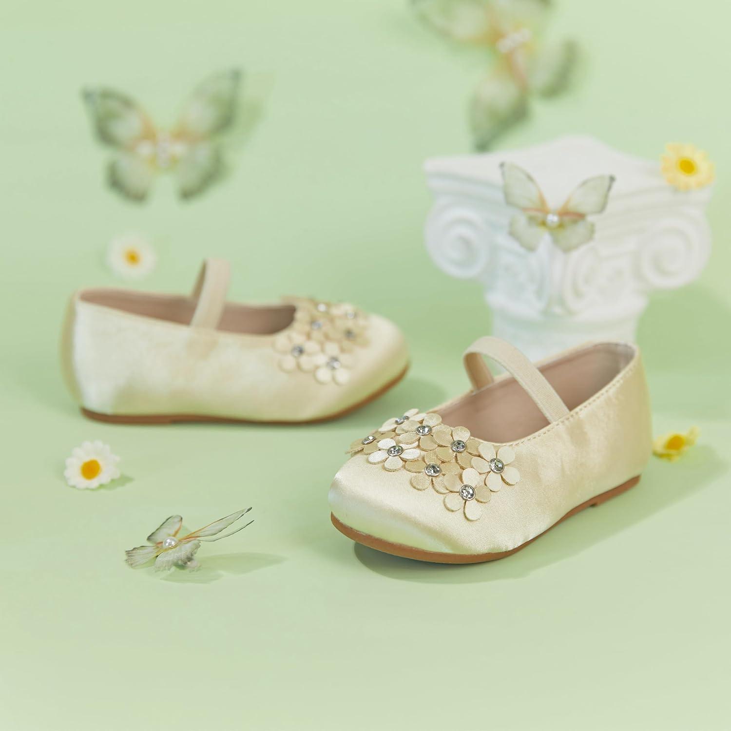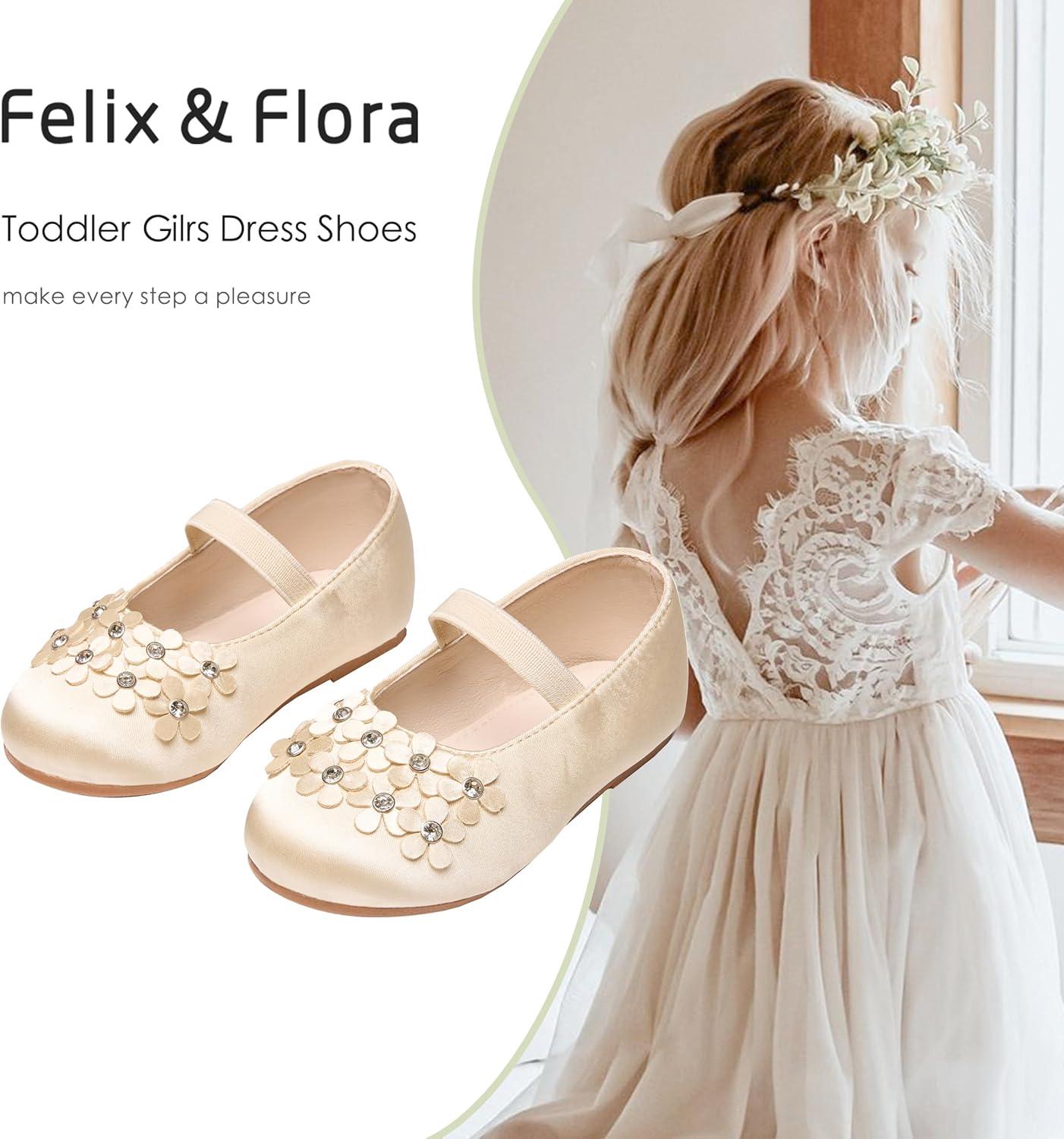 Felix & Flora Toddler Girl Dress Shoes – Flower Girl Ballet Flats School Wedding Party(B891-gold)
