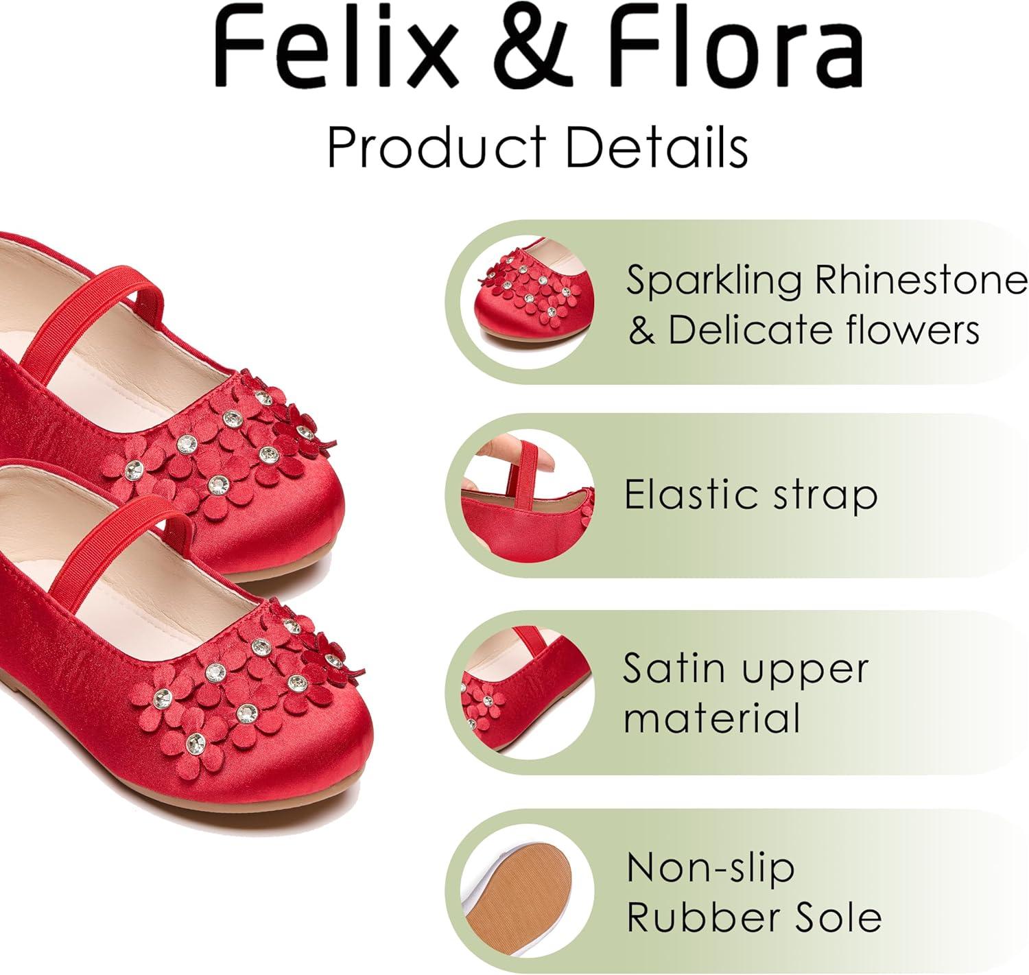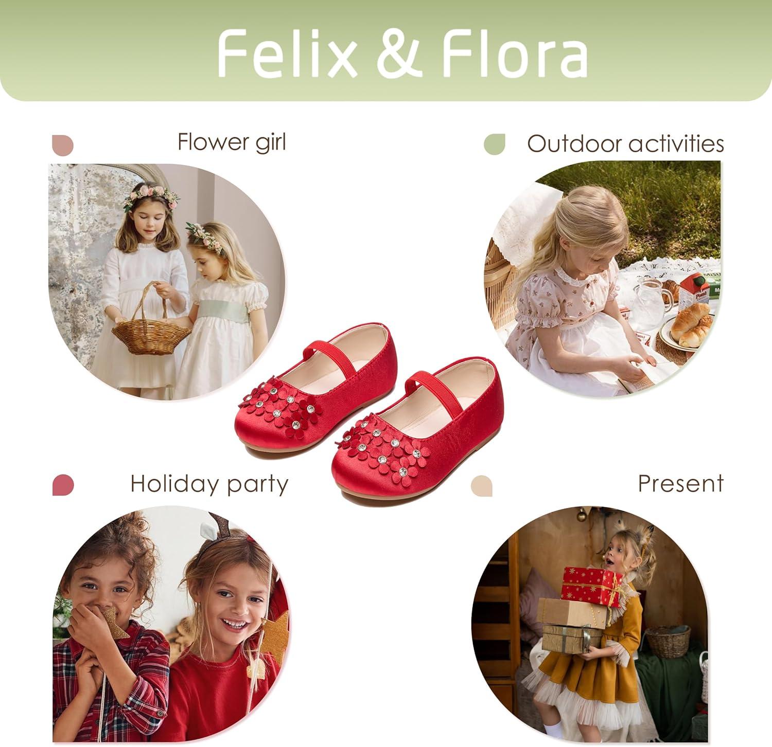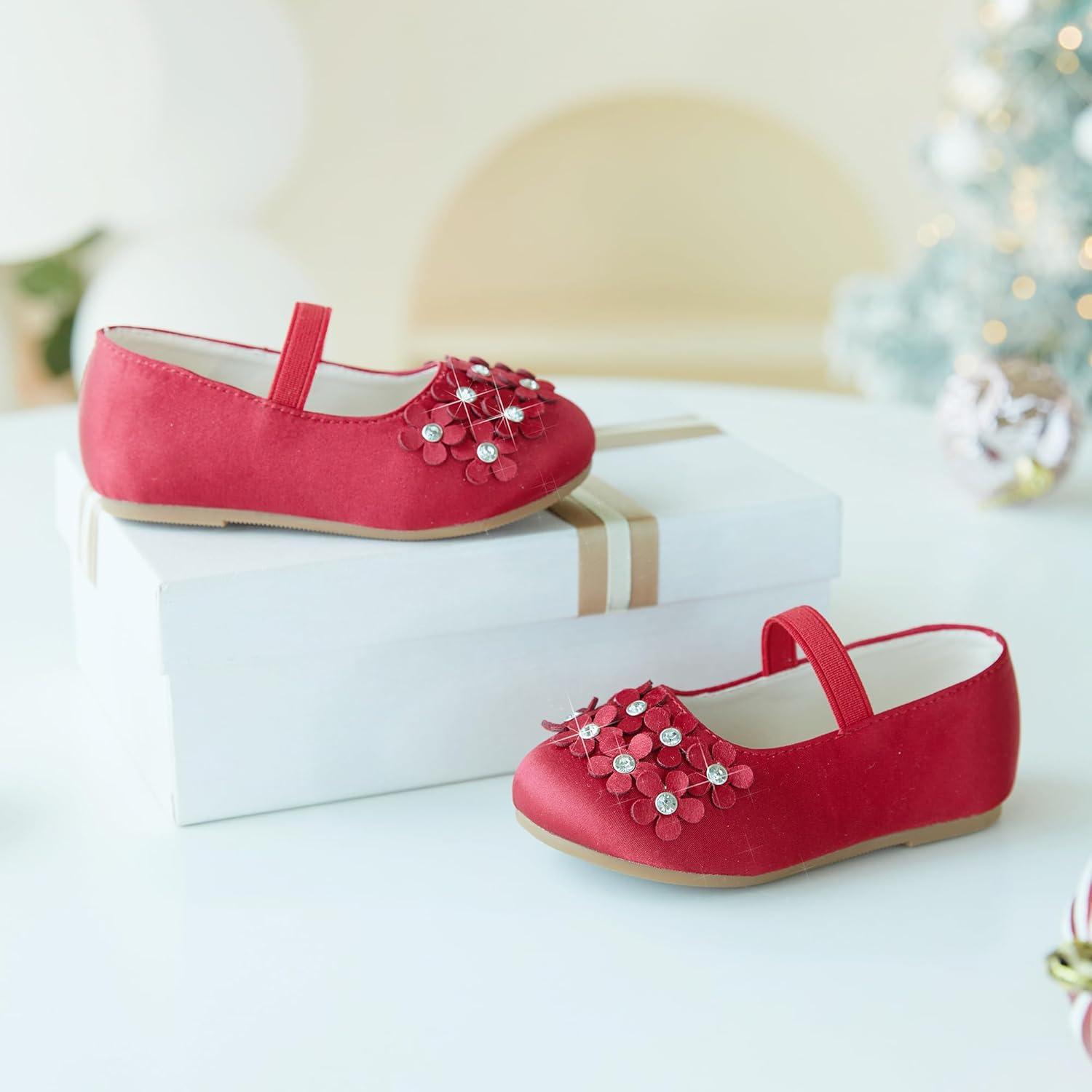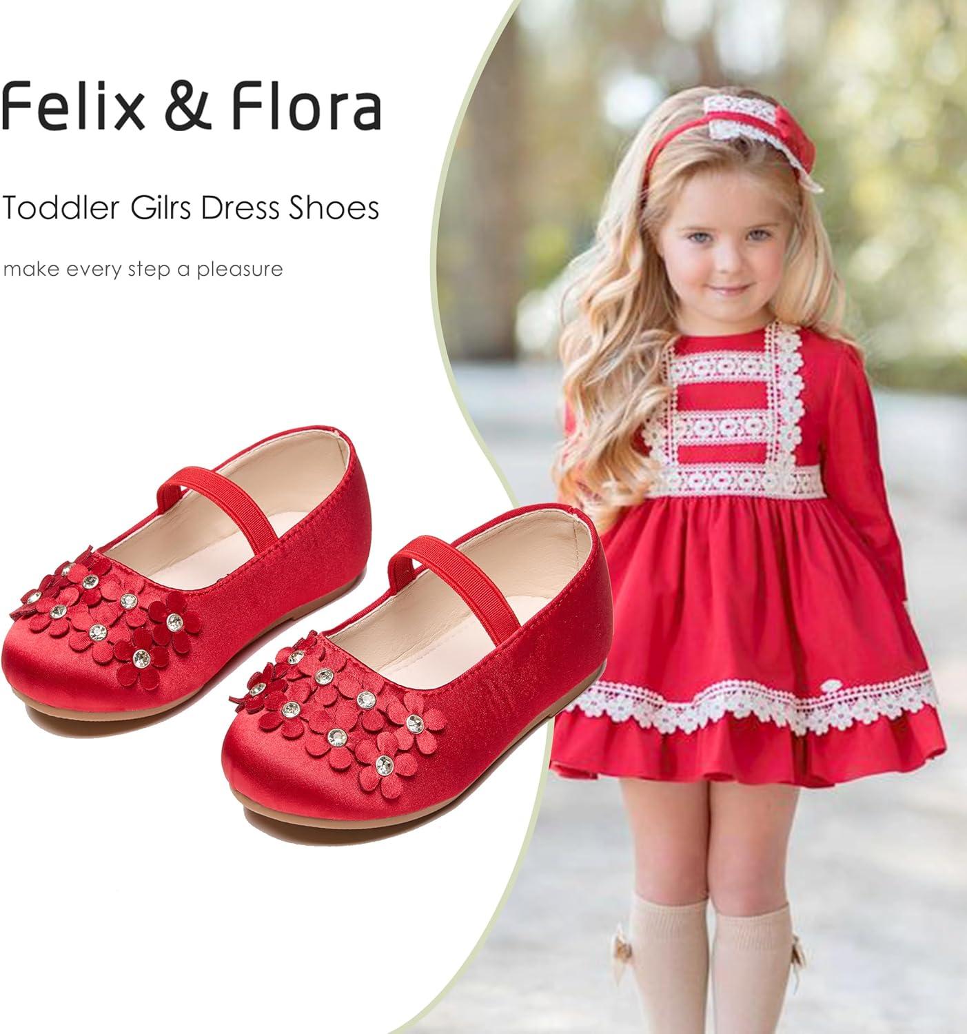 Felix & Flora Toddler Girl Dress Shoes – Flower Girl Ballet Flats School Wedding Party(B891-red)