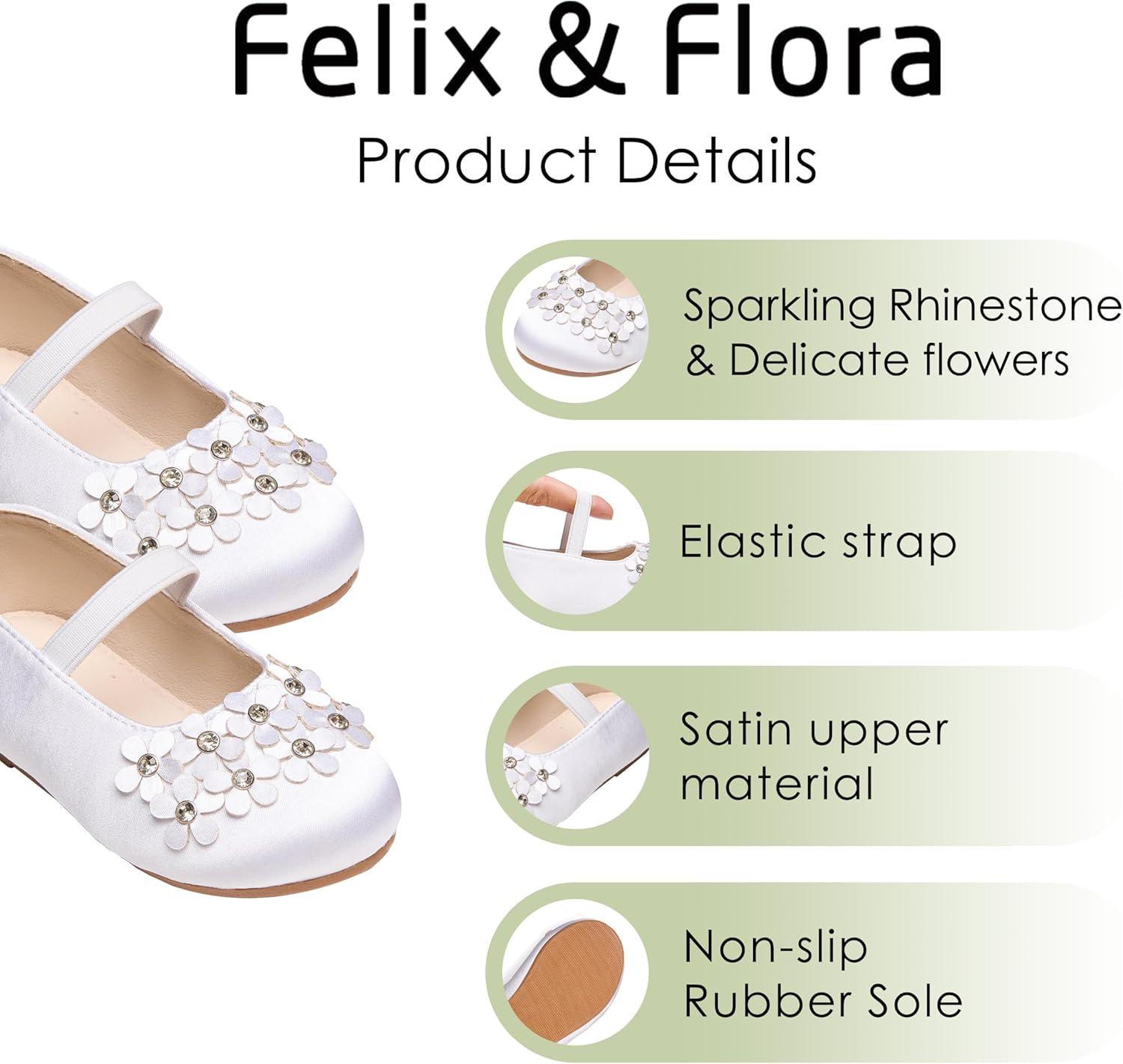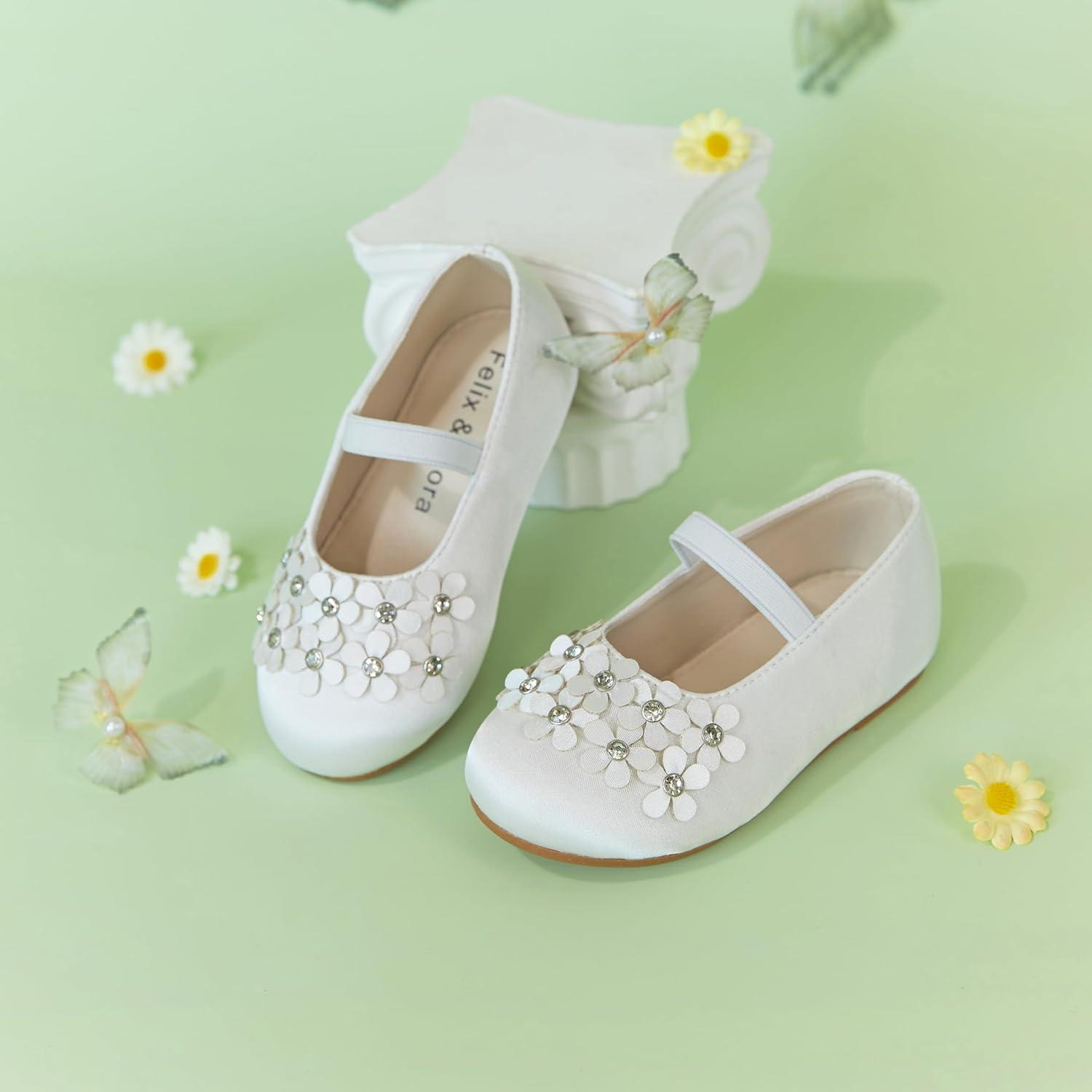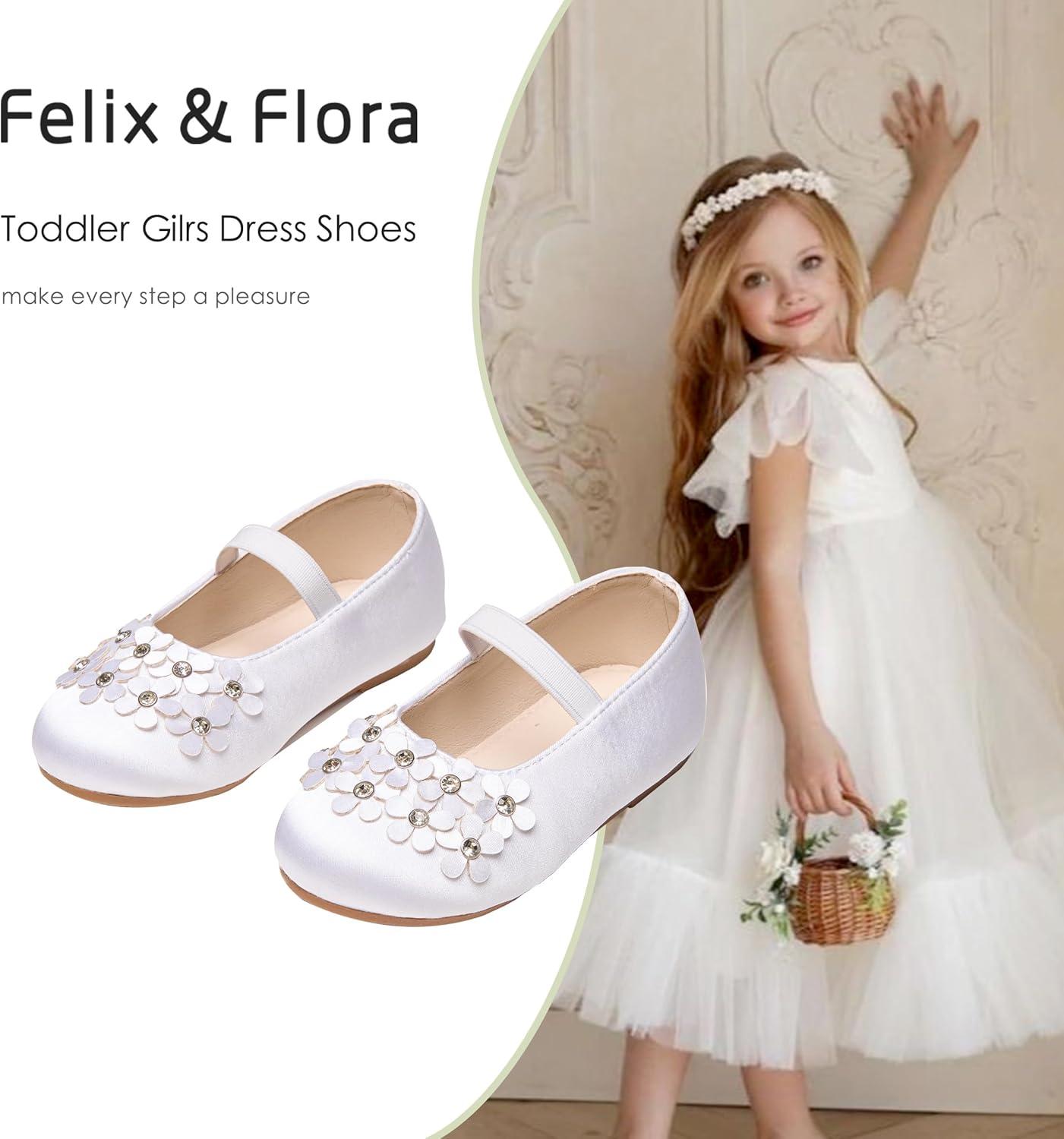 Felix & Flora Toddler Girl Dress Shoes – Flower Girl Ballet Flats School Wedding Party(B891-white)
