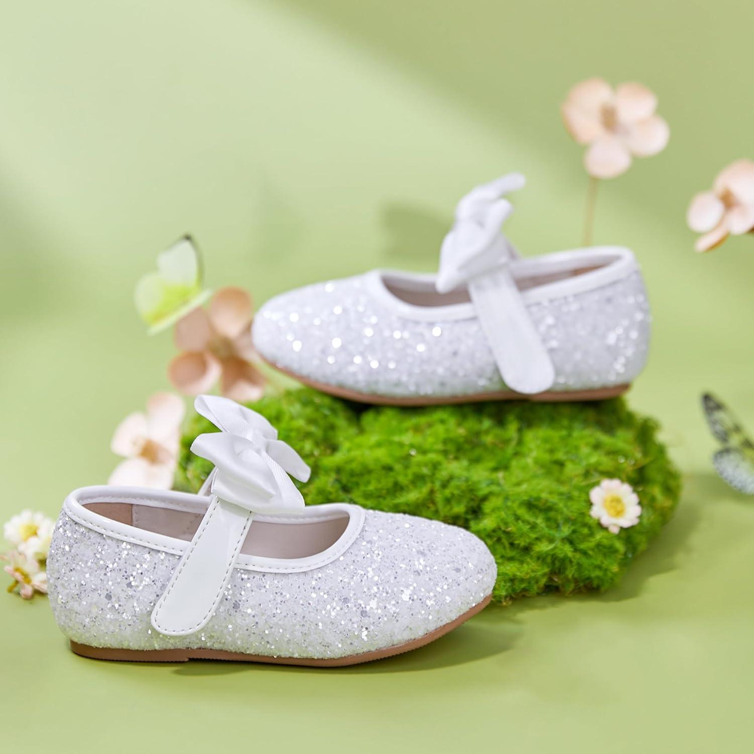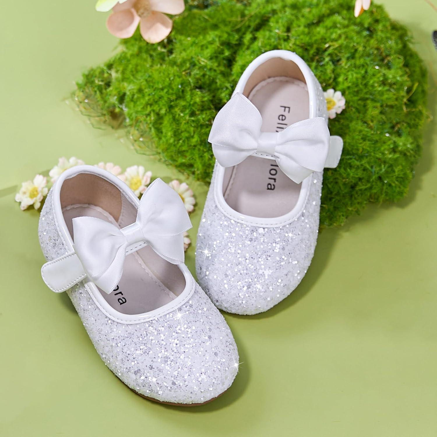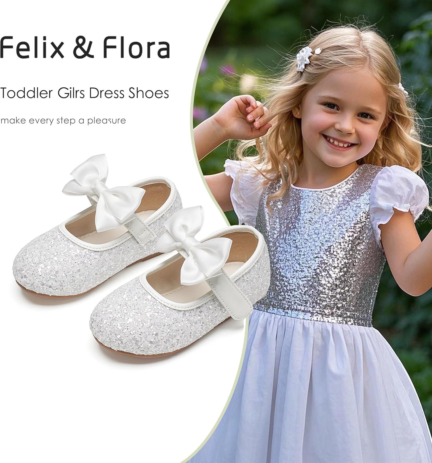Felix & Flora Toddler Girl Dress Shoes – Flower Girl Ballet Flats School Wedding Party(B903-glitter White)