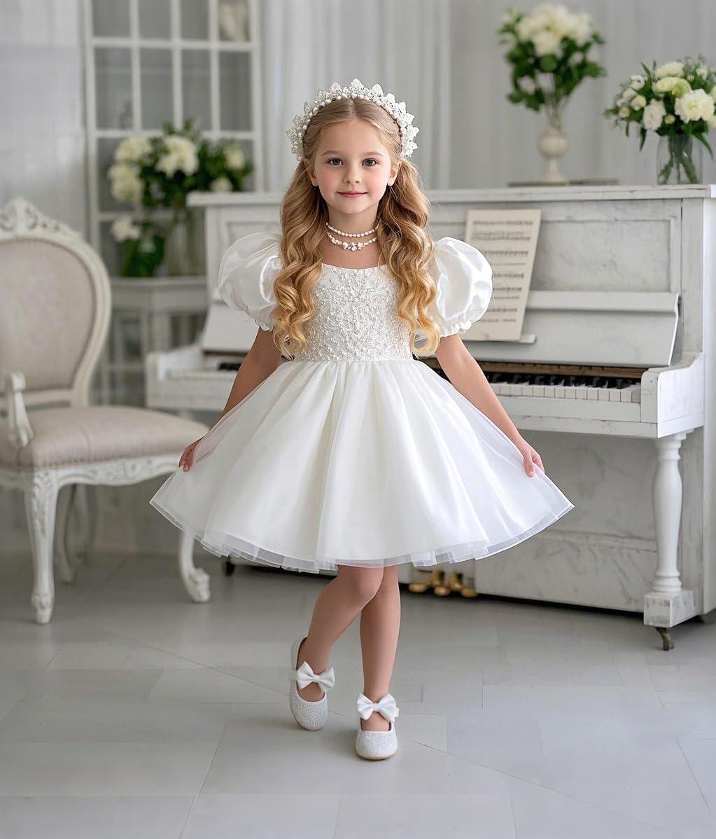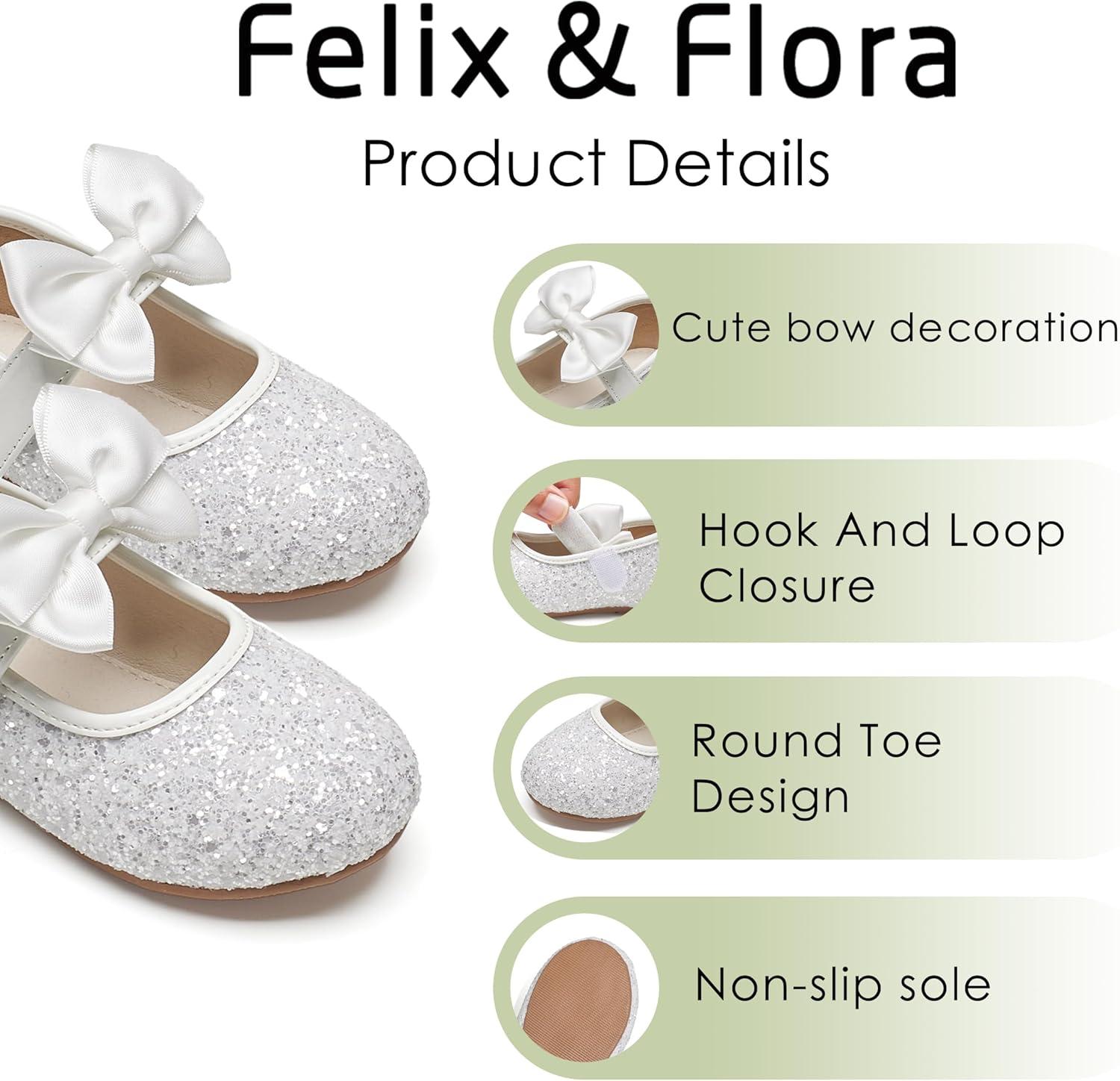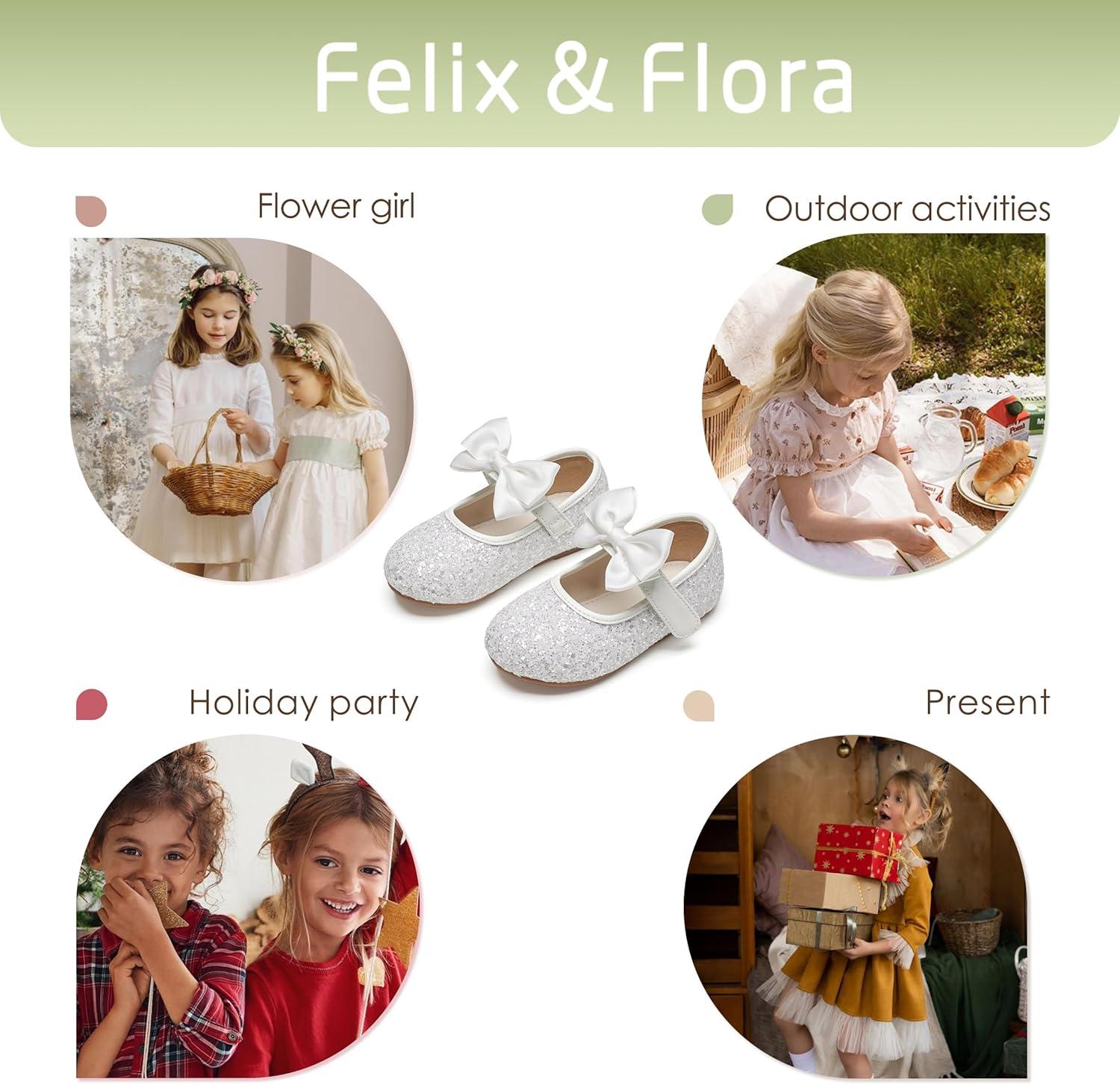 Felix & Flora Toddler Girl Dress Shoes – Flower Girl Ballet Flats School Wedding Party(B903-glitter White)