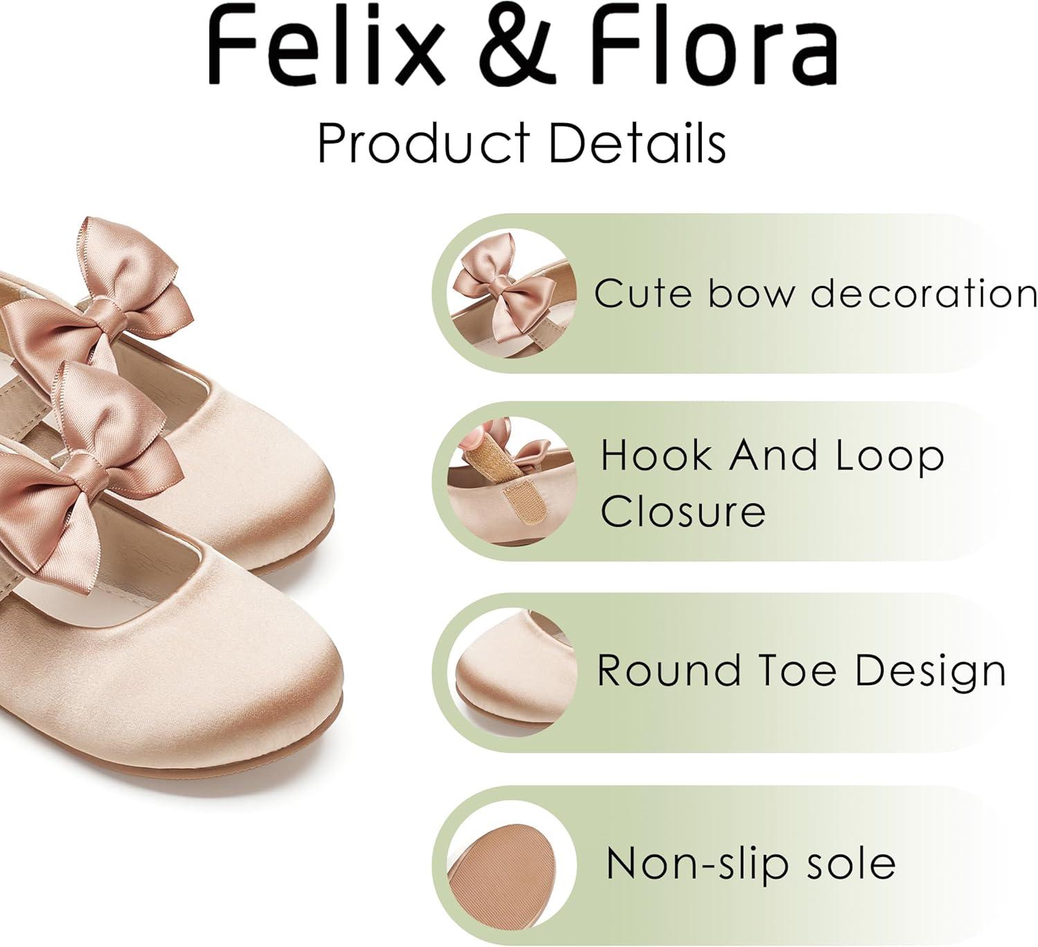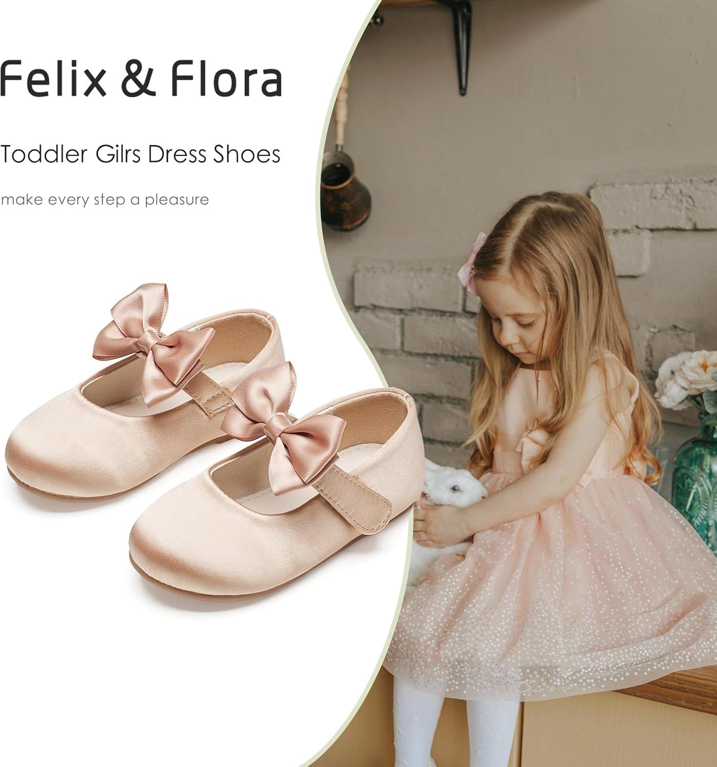 Felix & Flora Toddler Girl Dress Shoes – Flower Girl Ballet Flats School Wedding Party(B903-s Dark Nude)