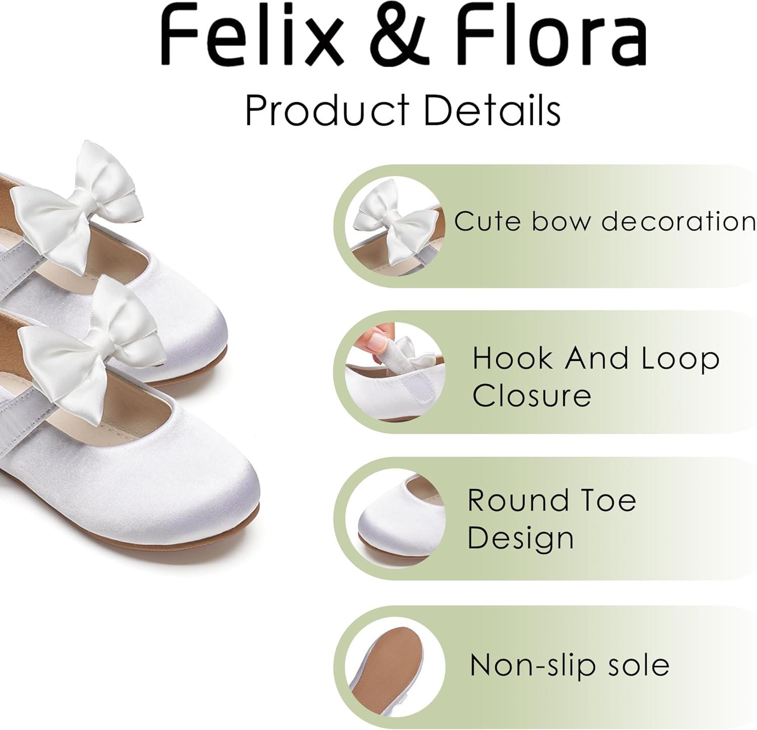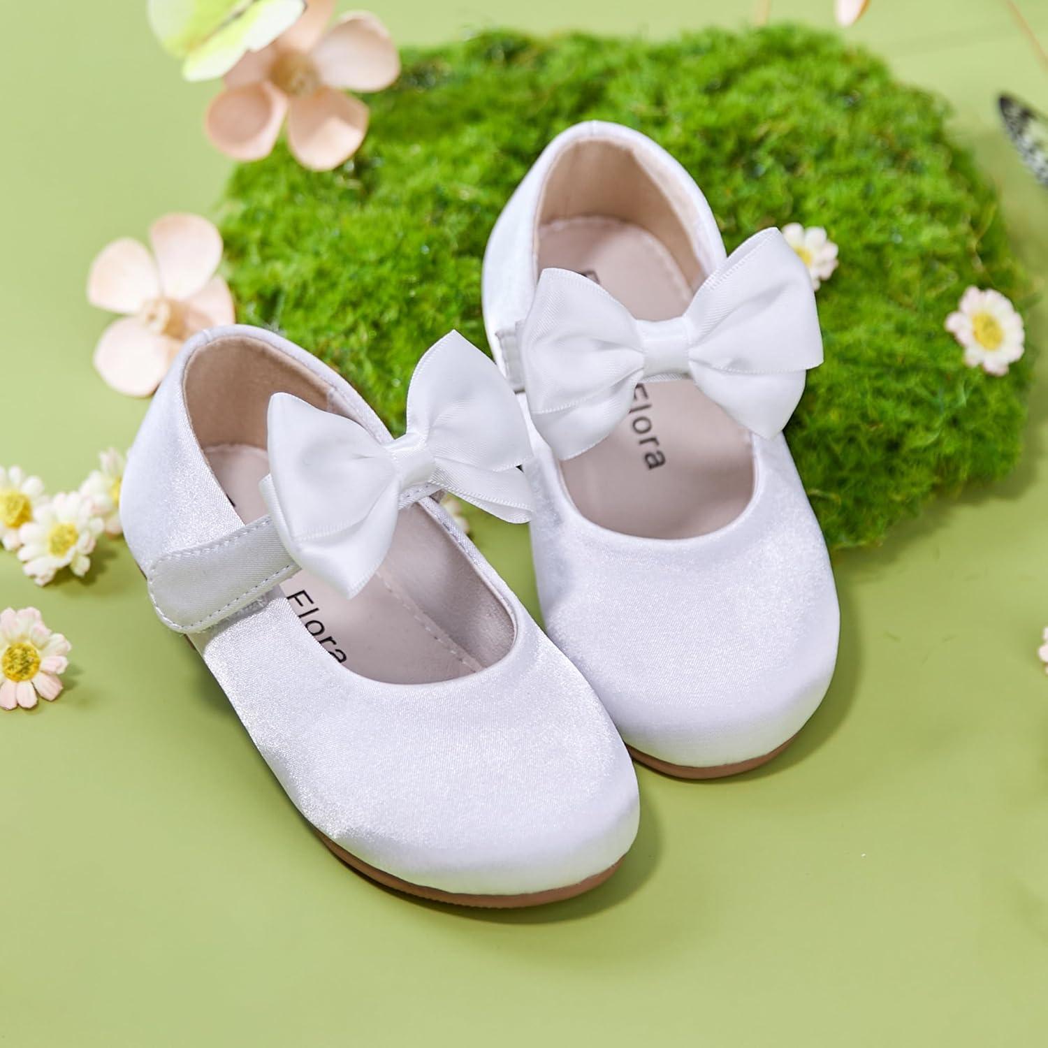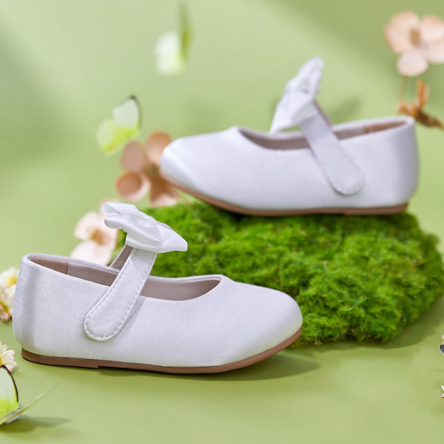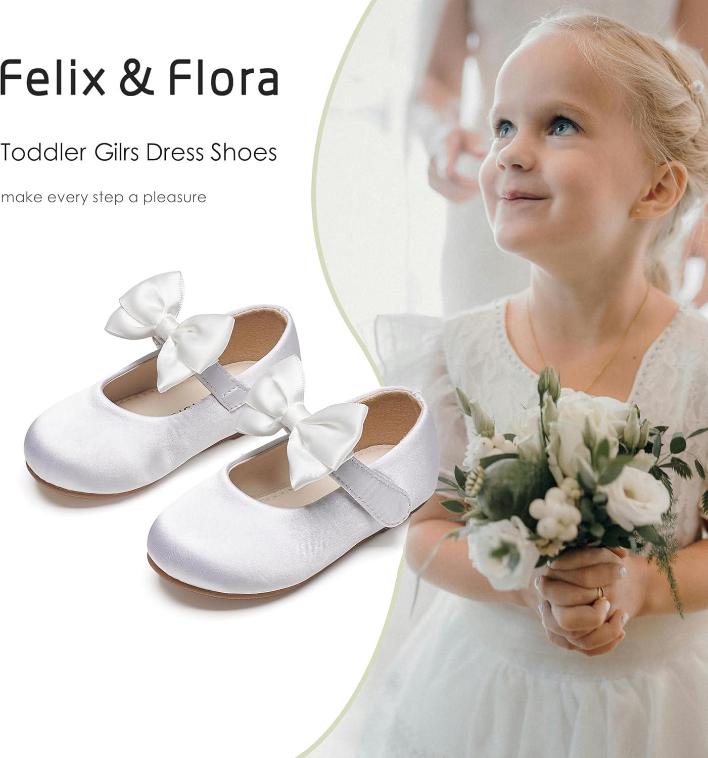 Felix & Flora Toddler Girl Dress Shoes – Flower Girl Ballet Flats School Wedding Party(B903-s White)
