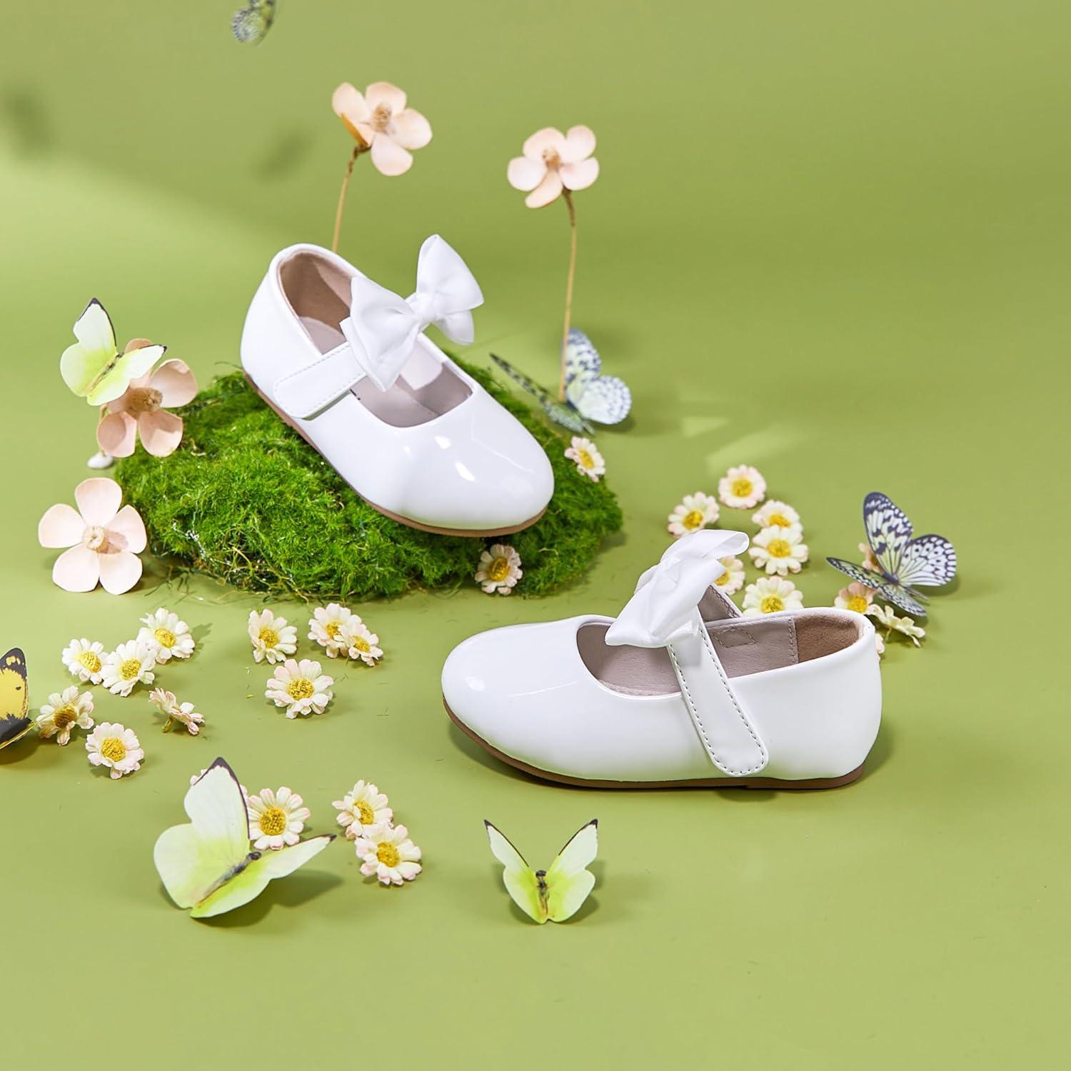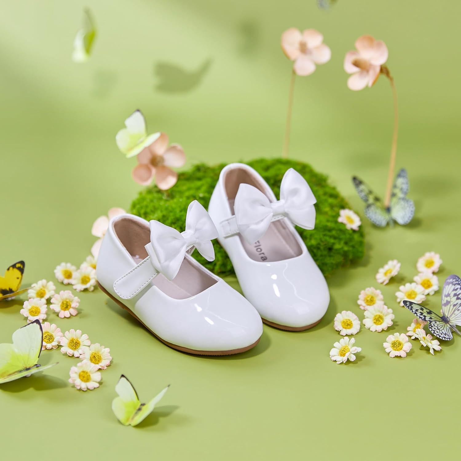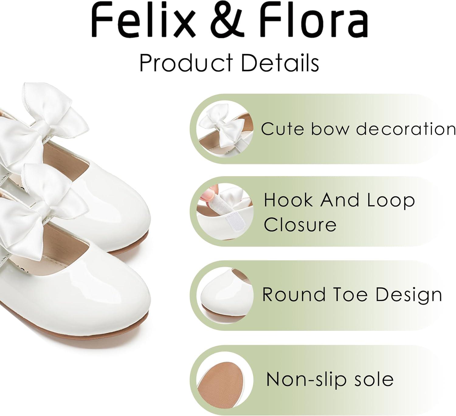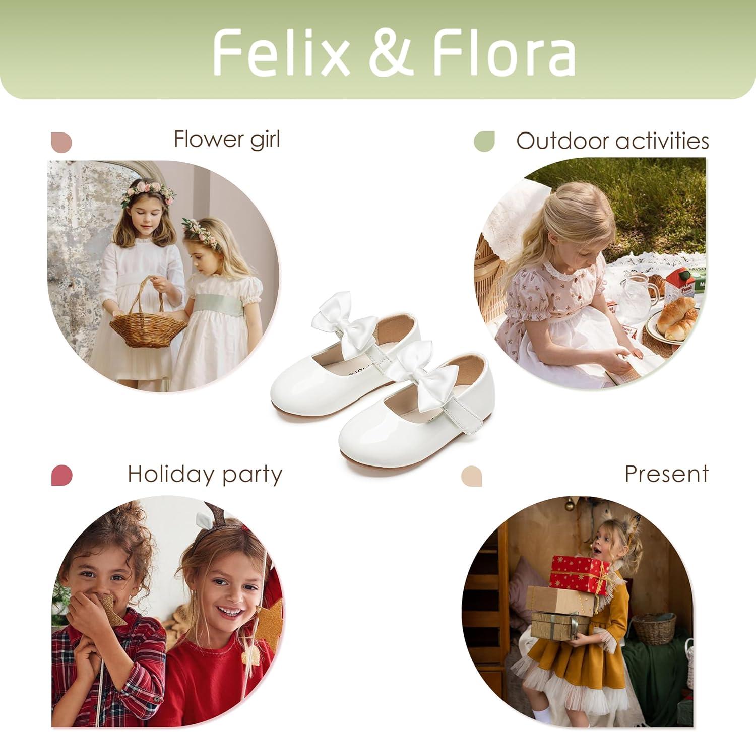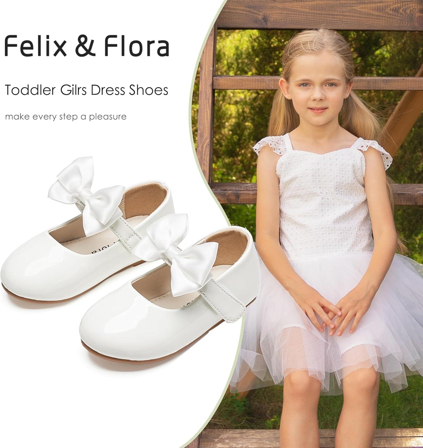 Felix & Flora Toddler Girl Dress Shoes – Flower Girl Ballet Flats School Wedding Party(B903-white)