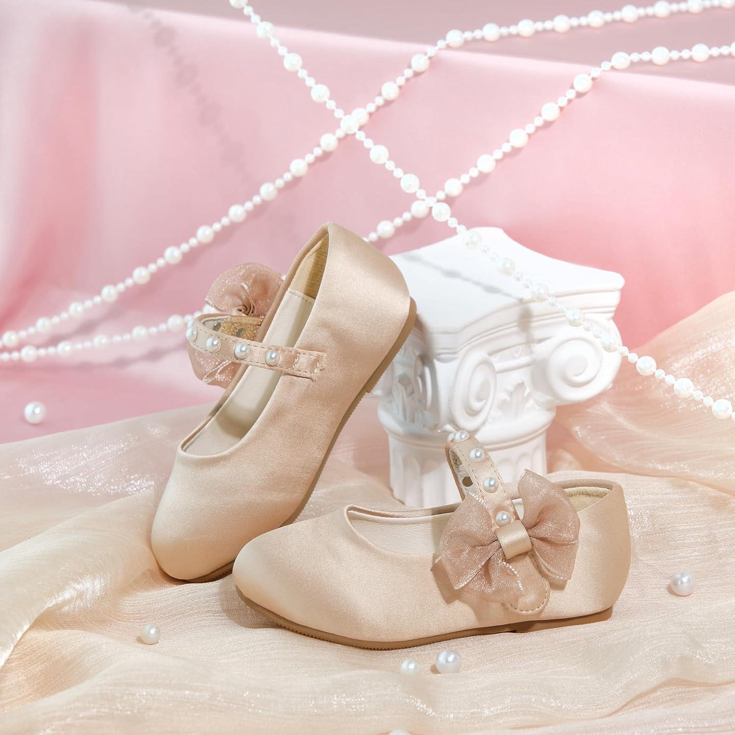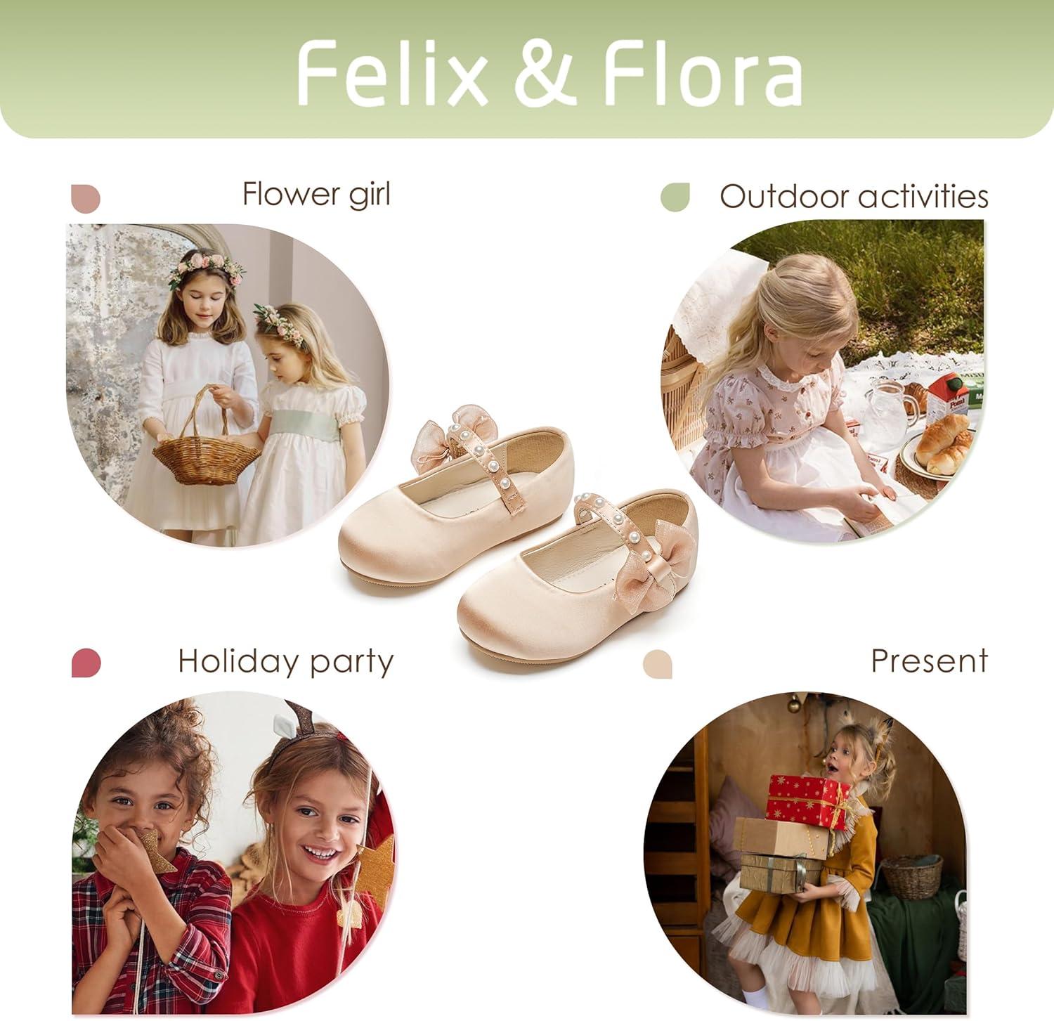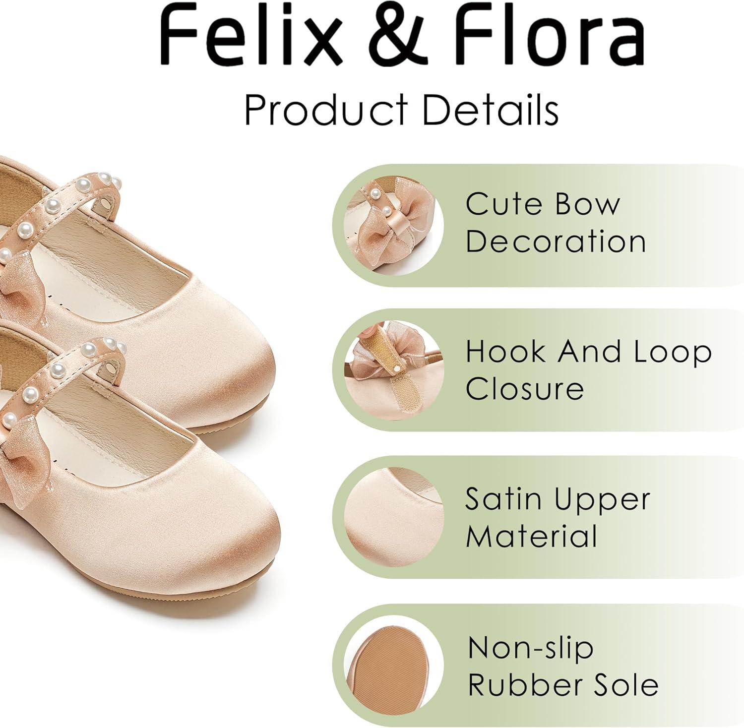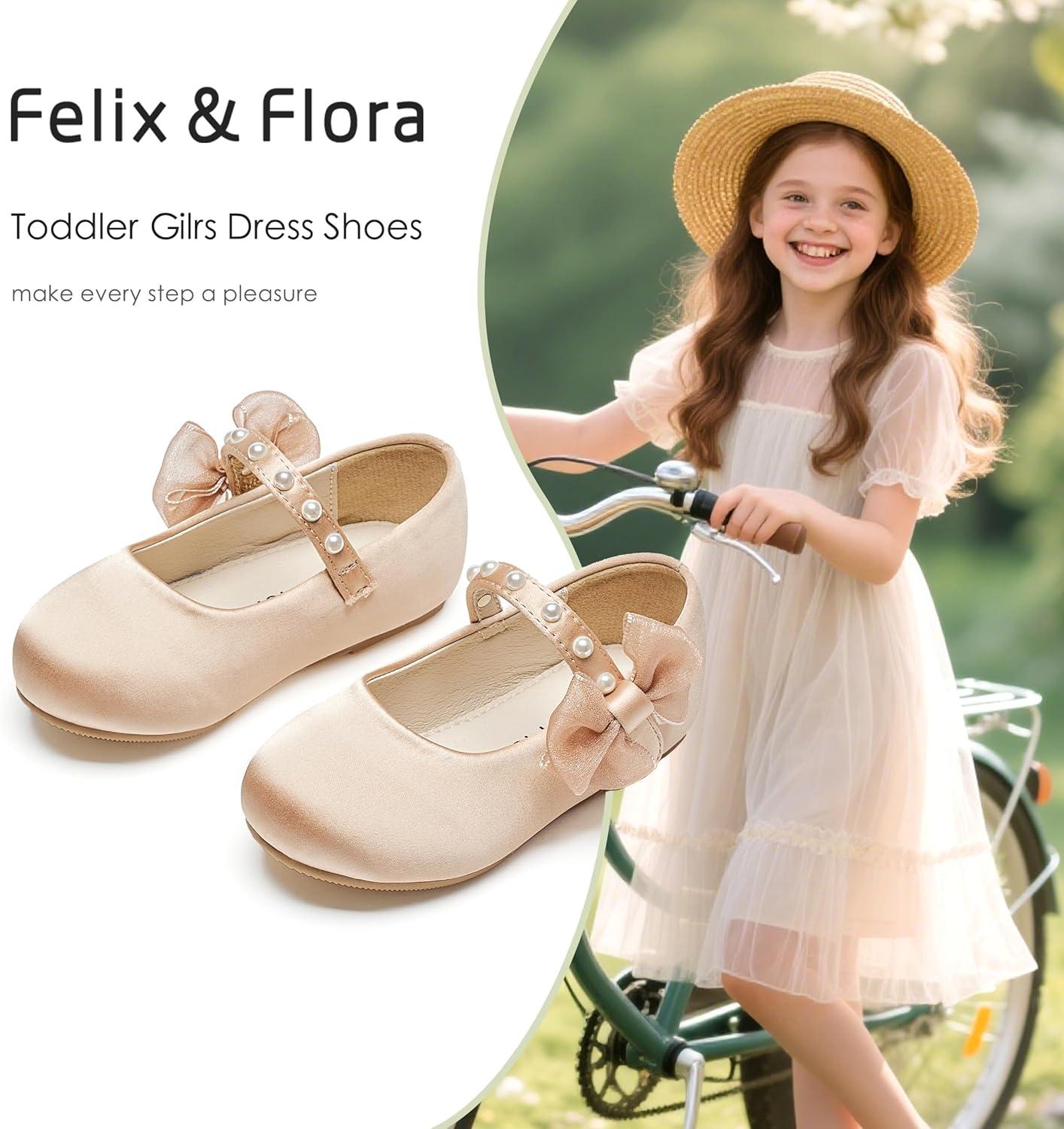 Felix & Flora Toddler Girl Dress Shoes – Flower Girl Ballet Flats School Wedding Party(Bf14-dark Nude)