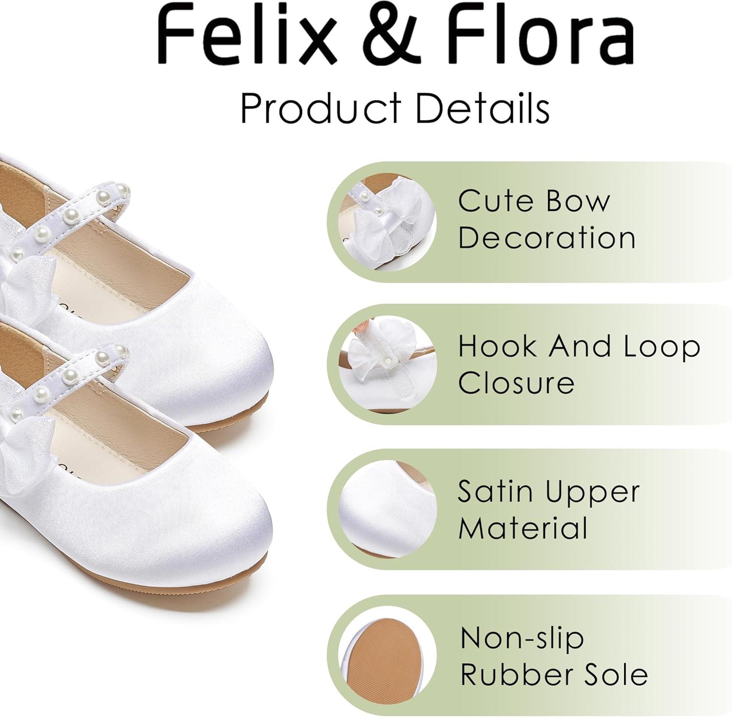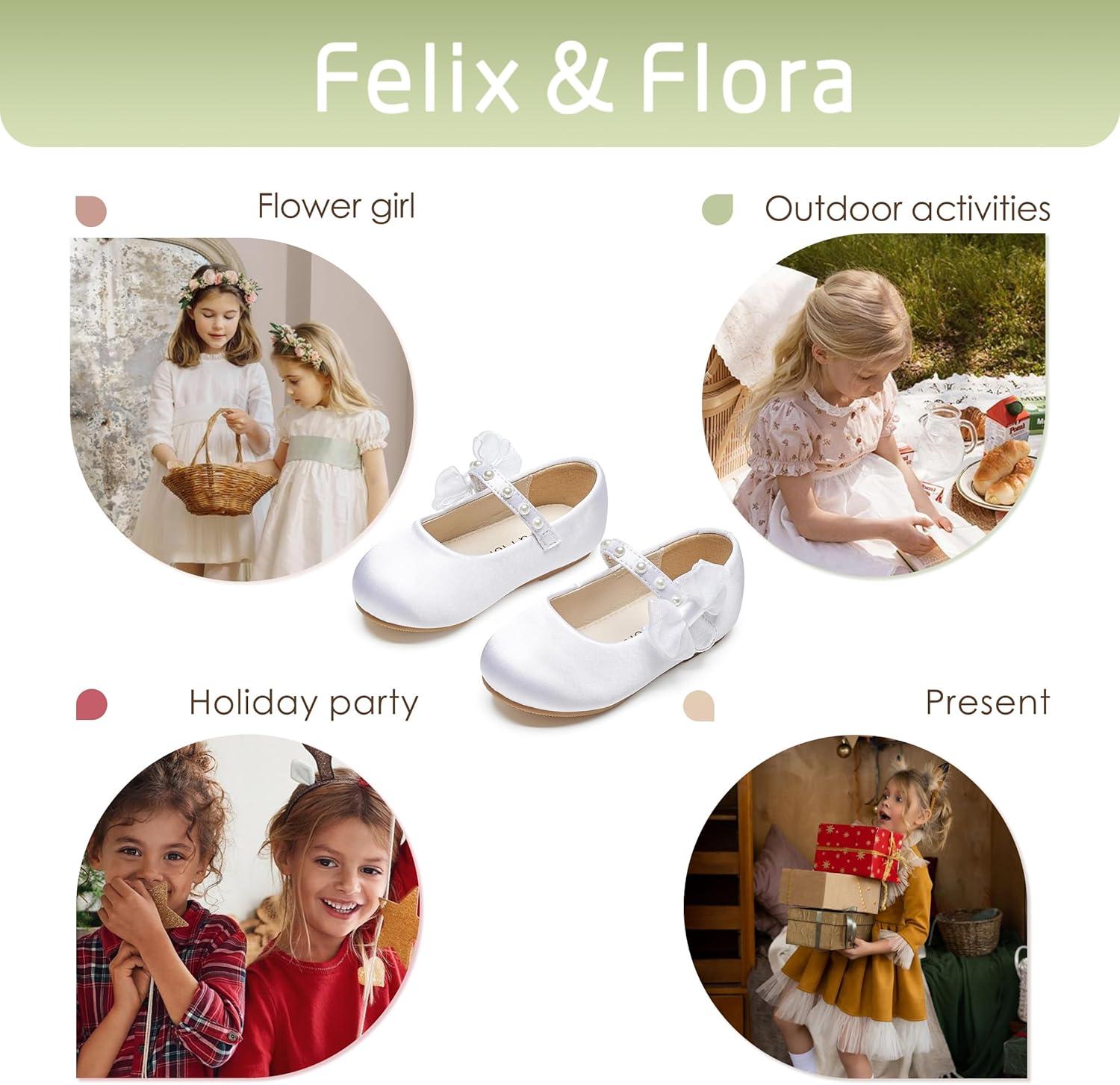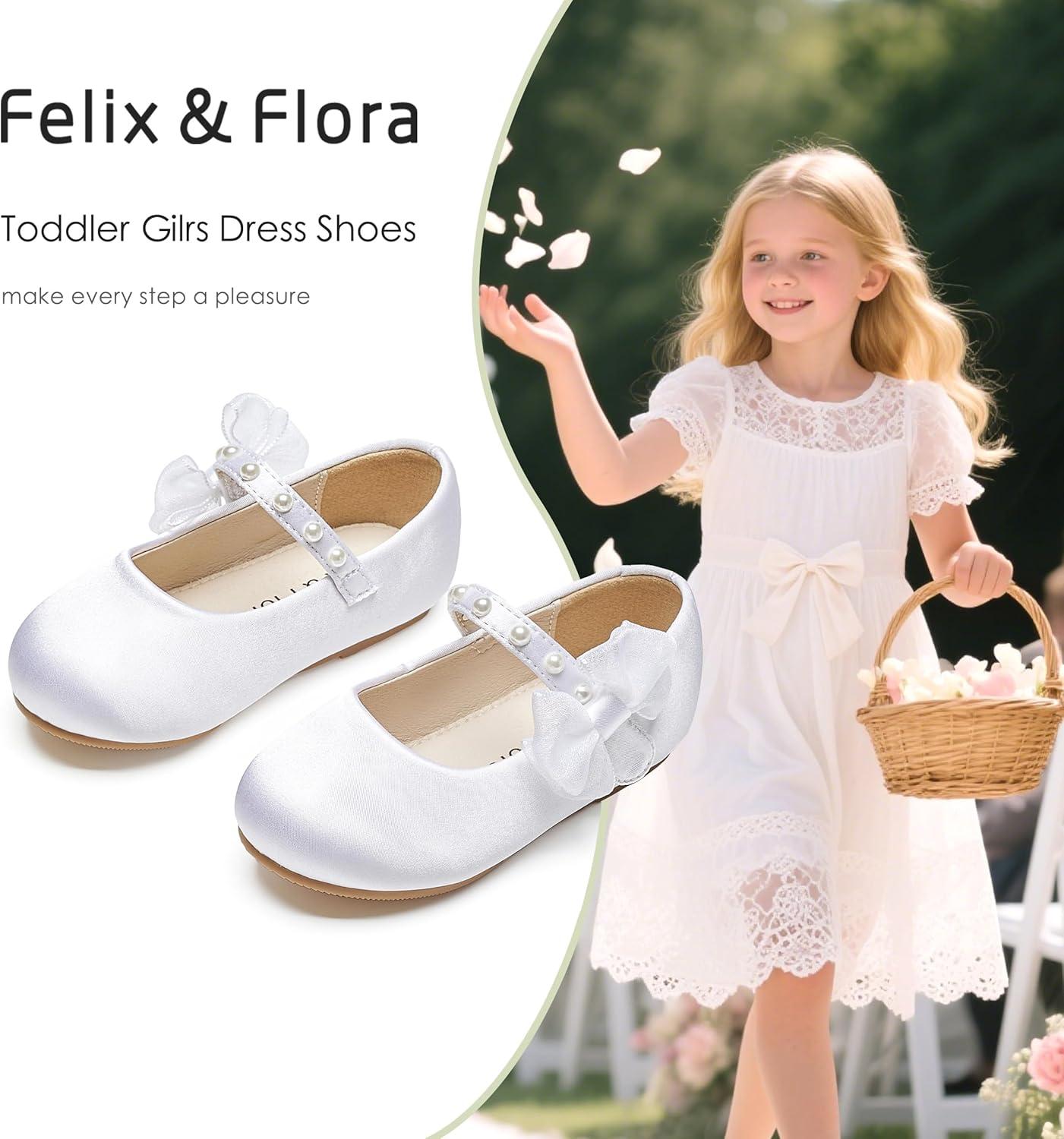 Felix & Flora Toddler Girl Dress Shoes – Flower Girl Ballet Flats School Wedding Party(Bf14-white)