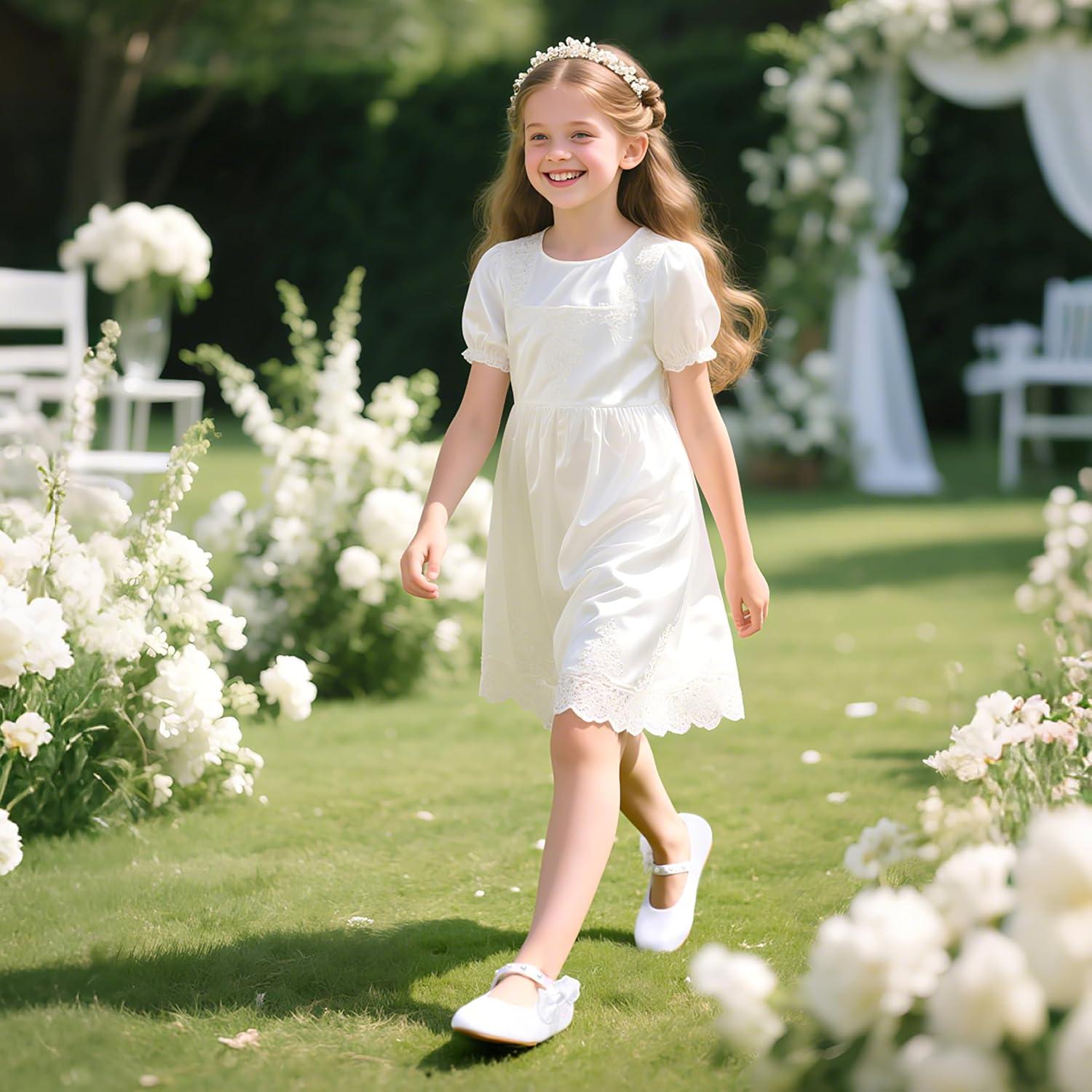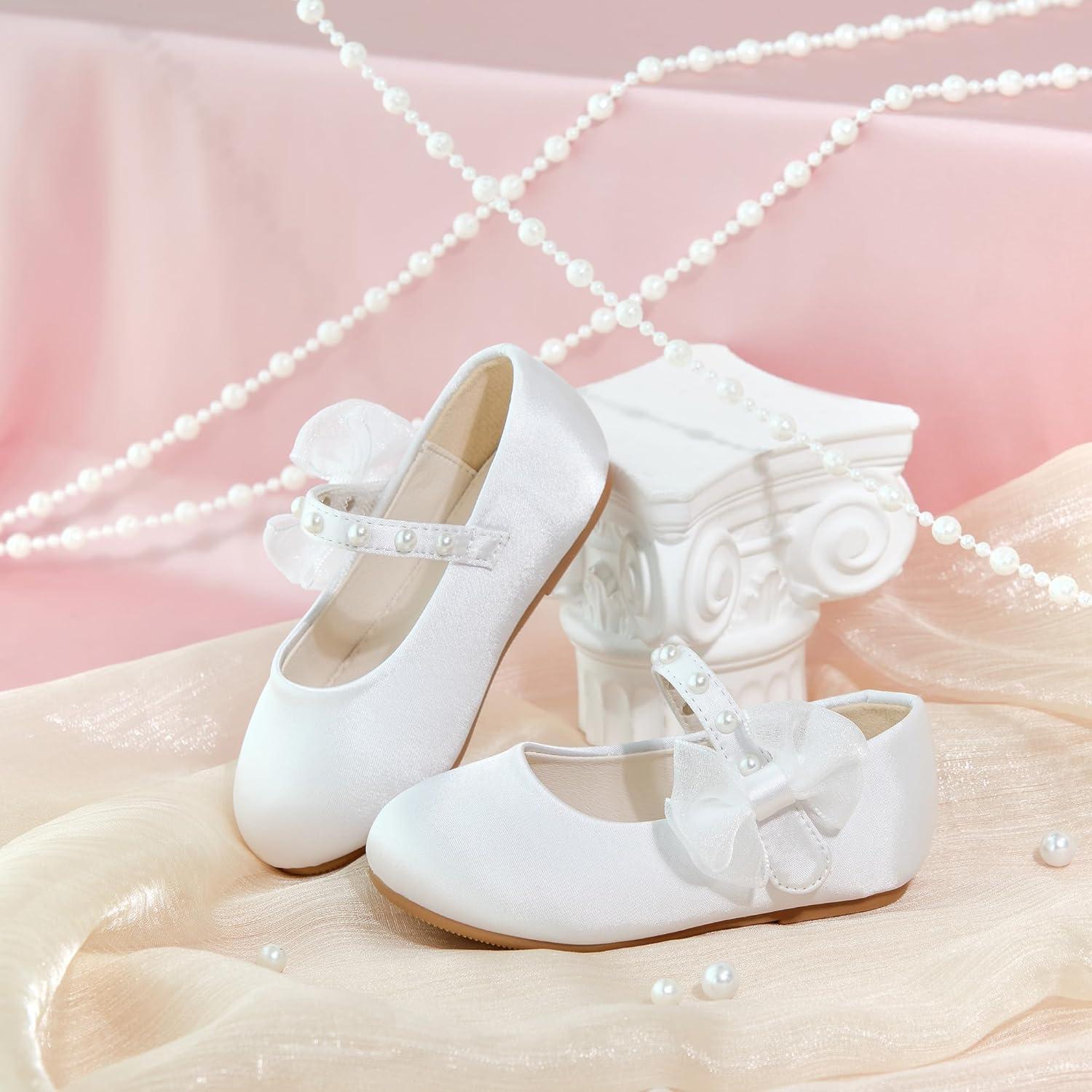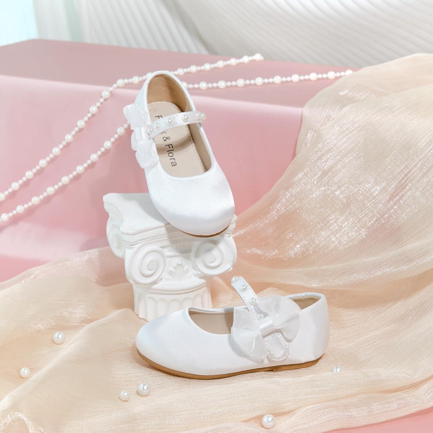 Felix & Flora Toddler Girl Dress Shoes – Flower Girl Ballet Flats School Wedding Party(Bf14-white)