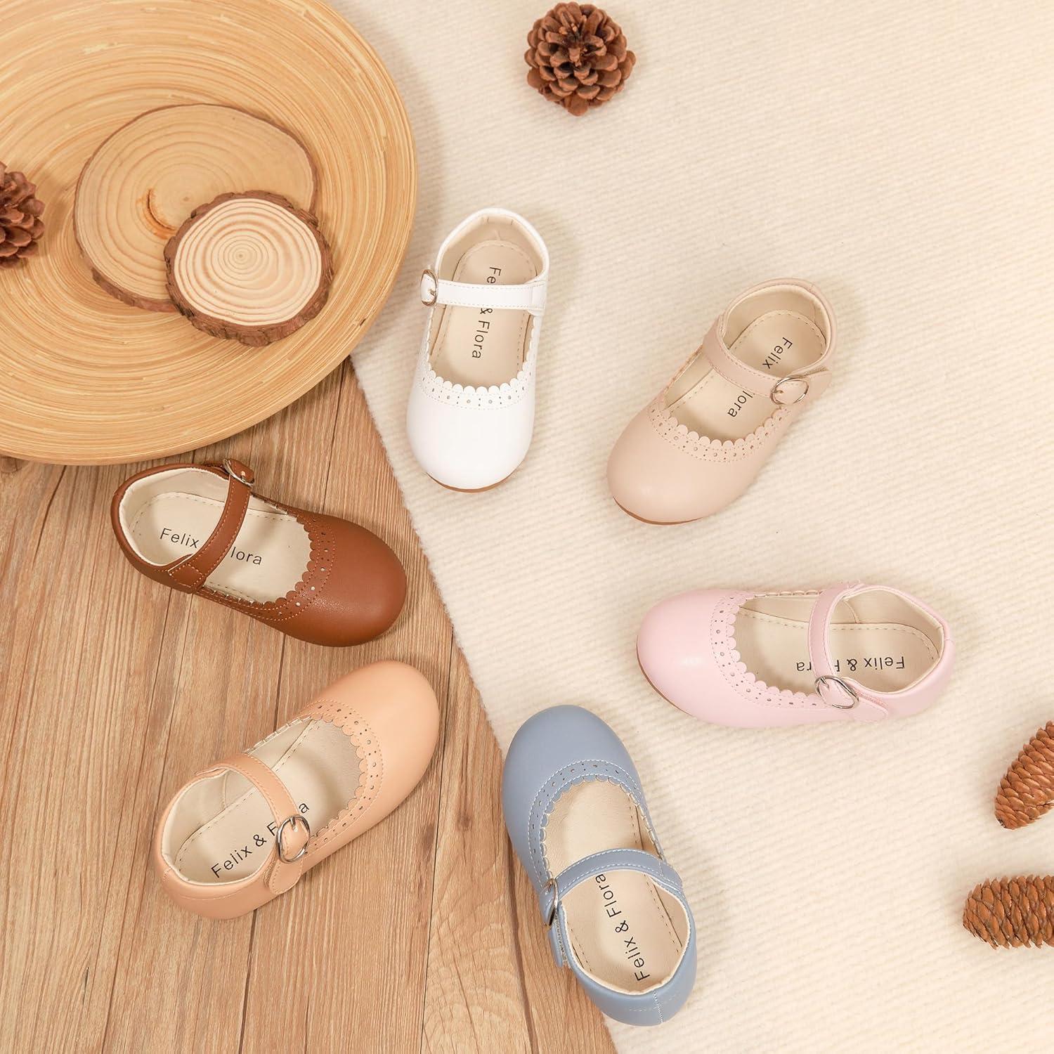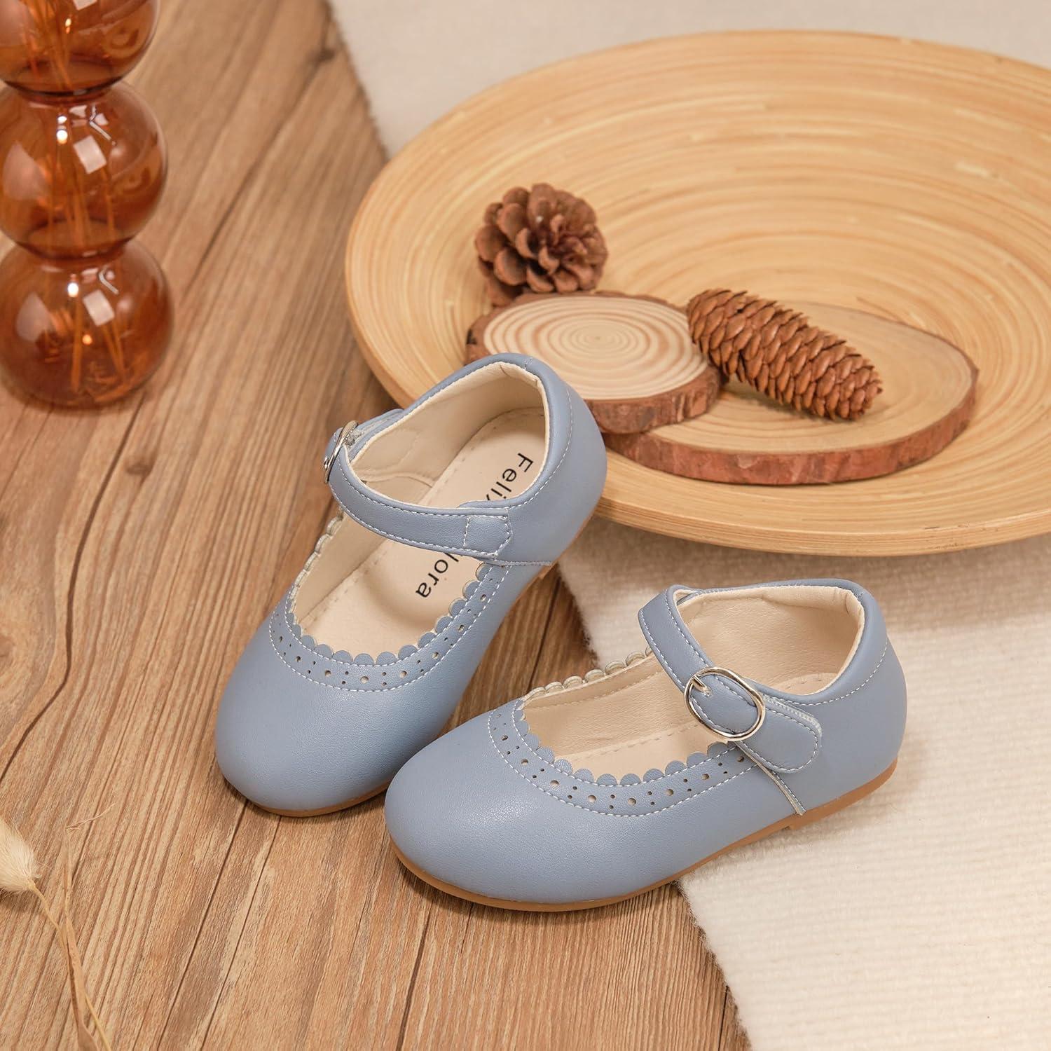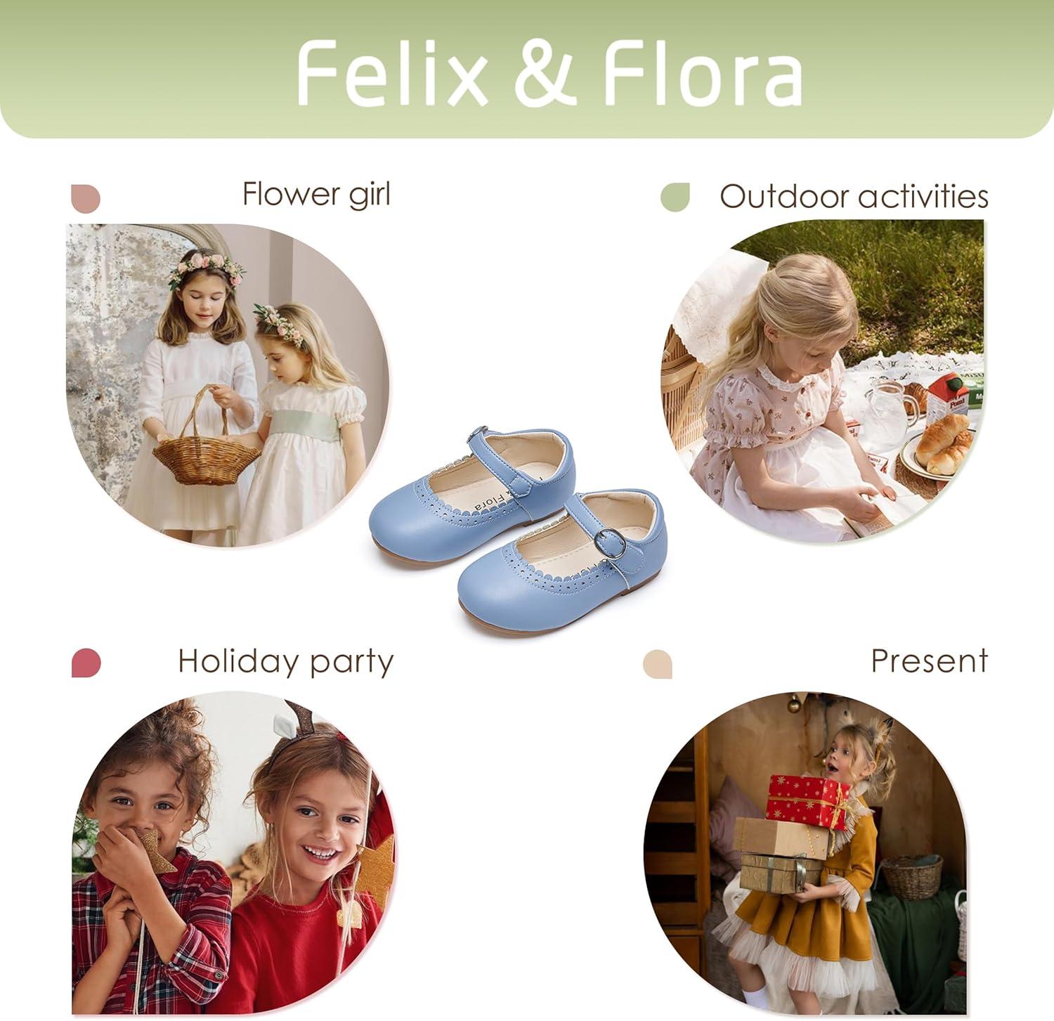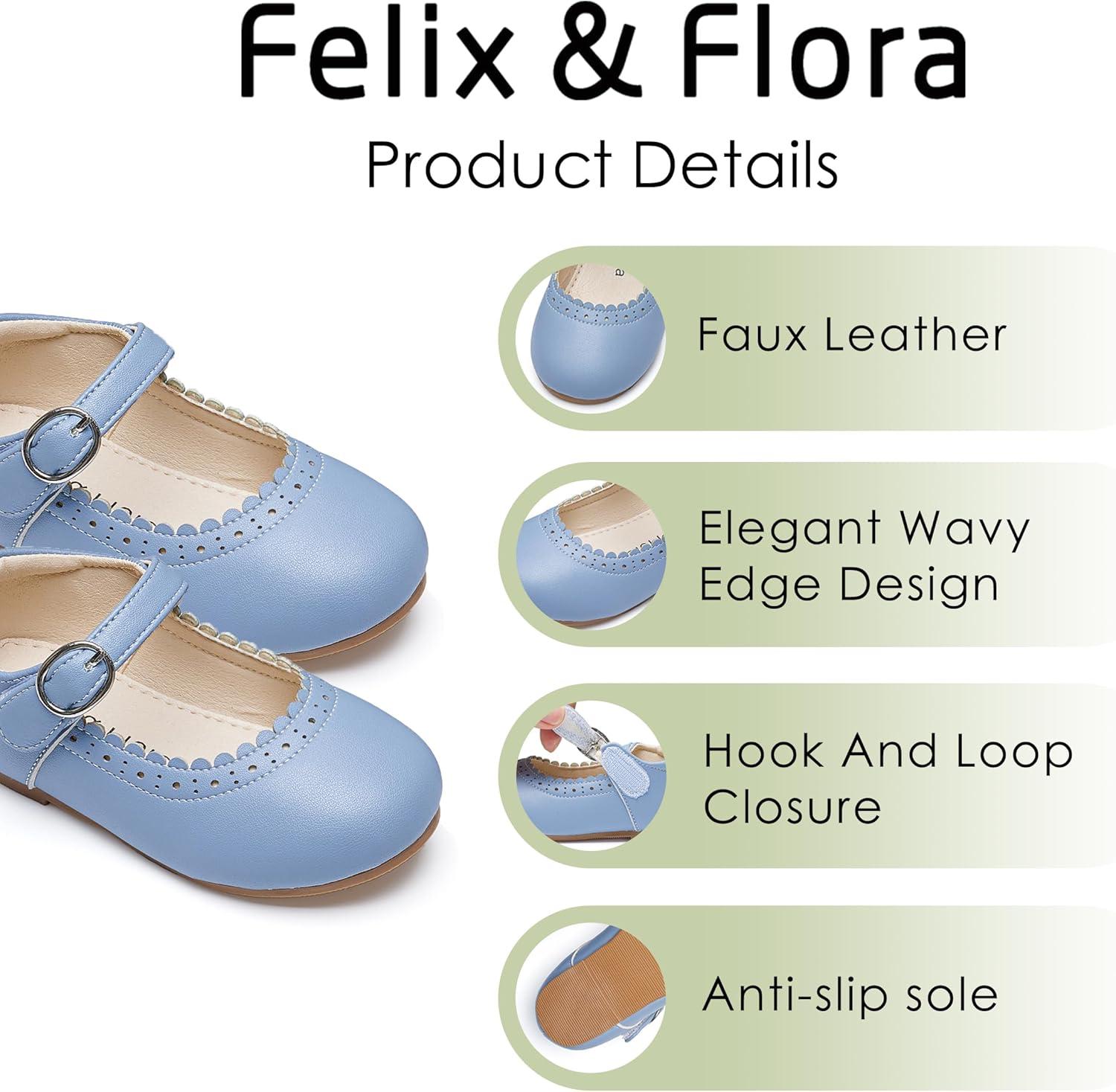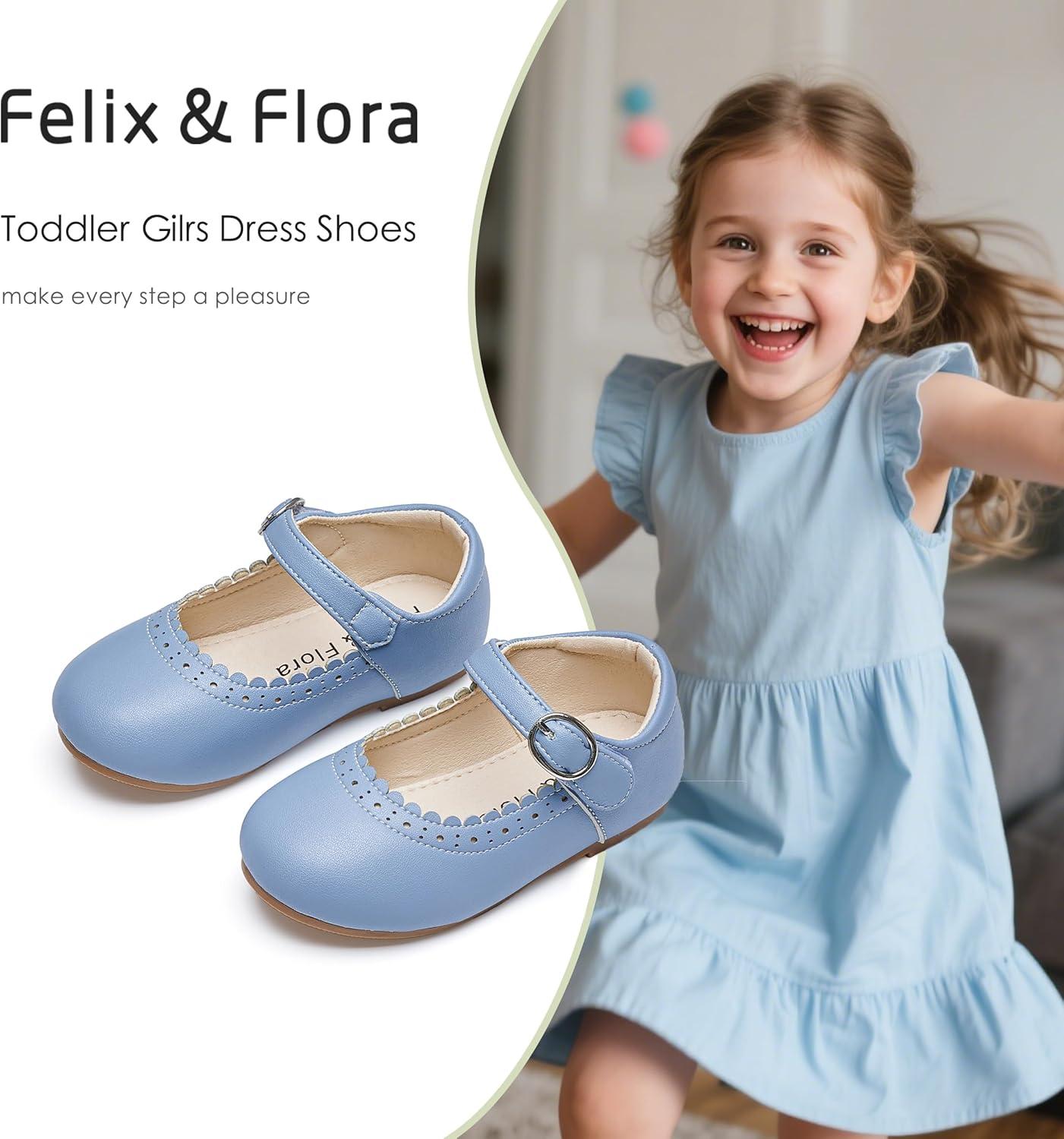 Felix & Flora Toddler Girl Dress Shoes – Flower Girl Ballet Flats School Wedding Party(Bf19-light Blue)