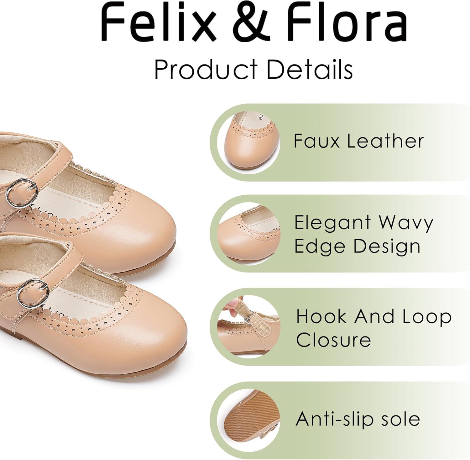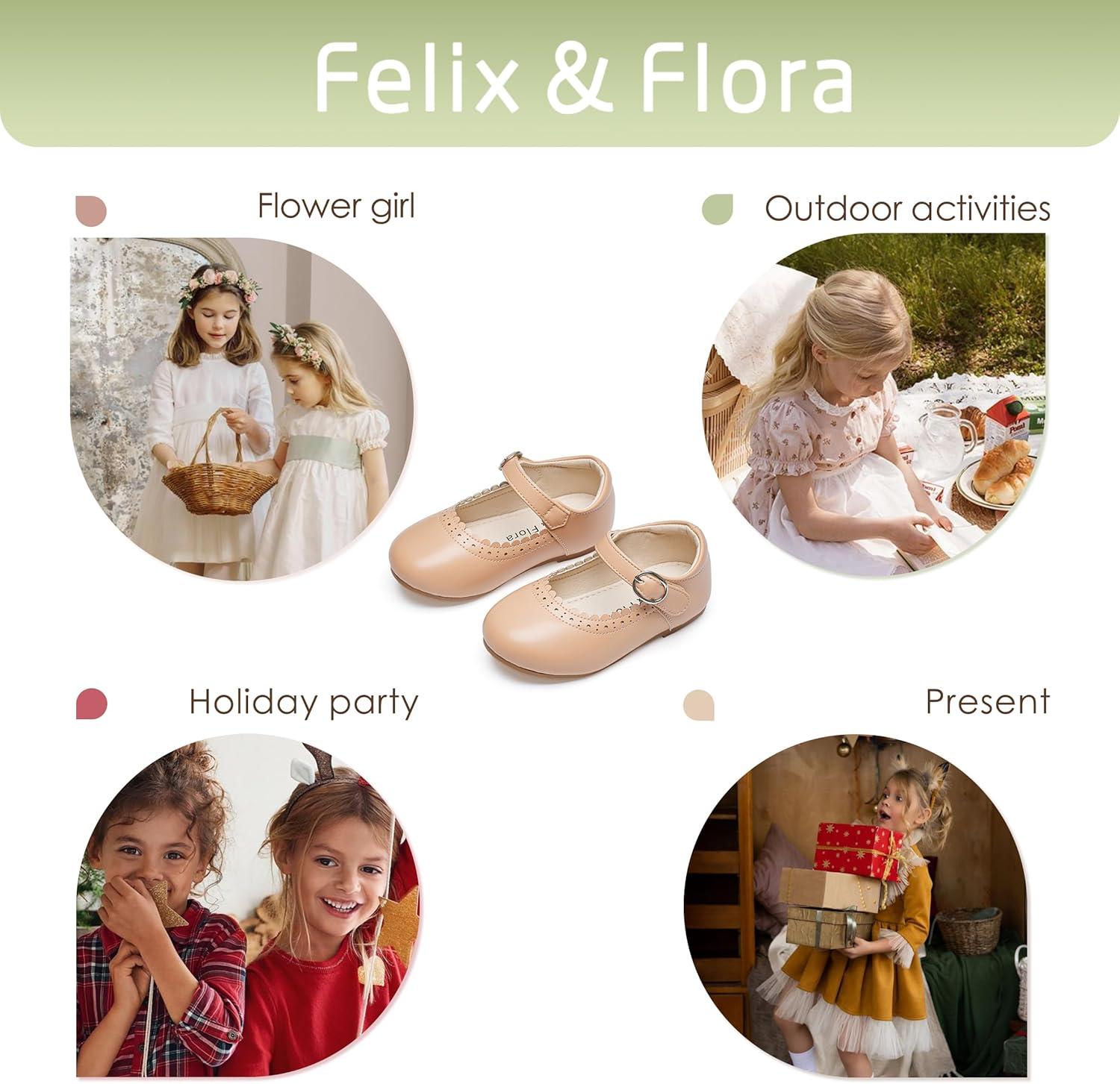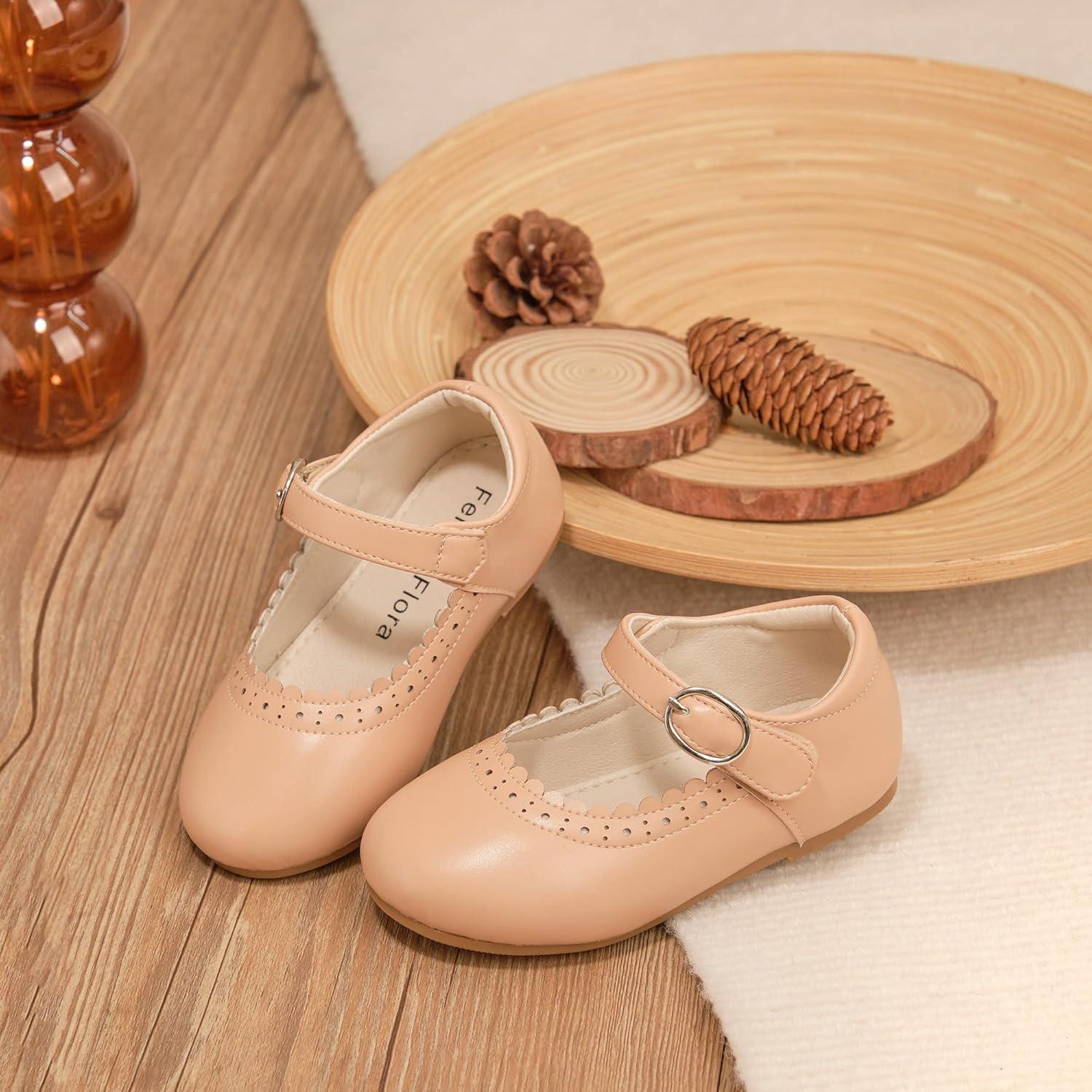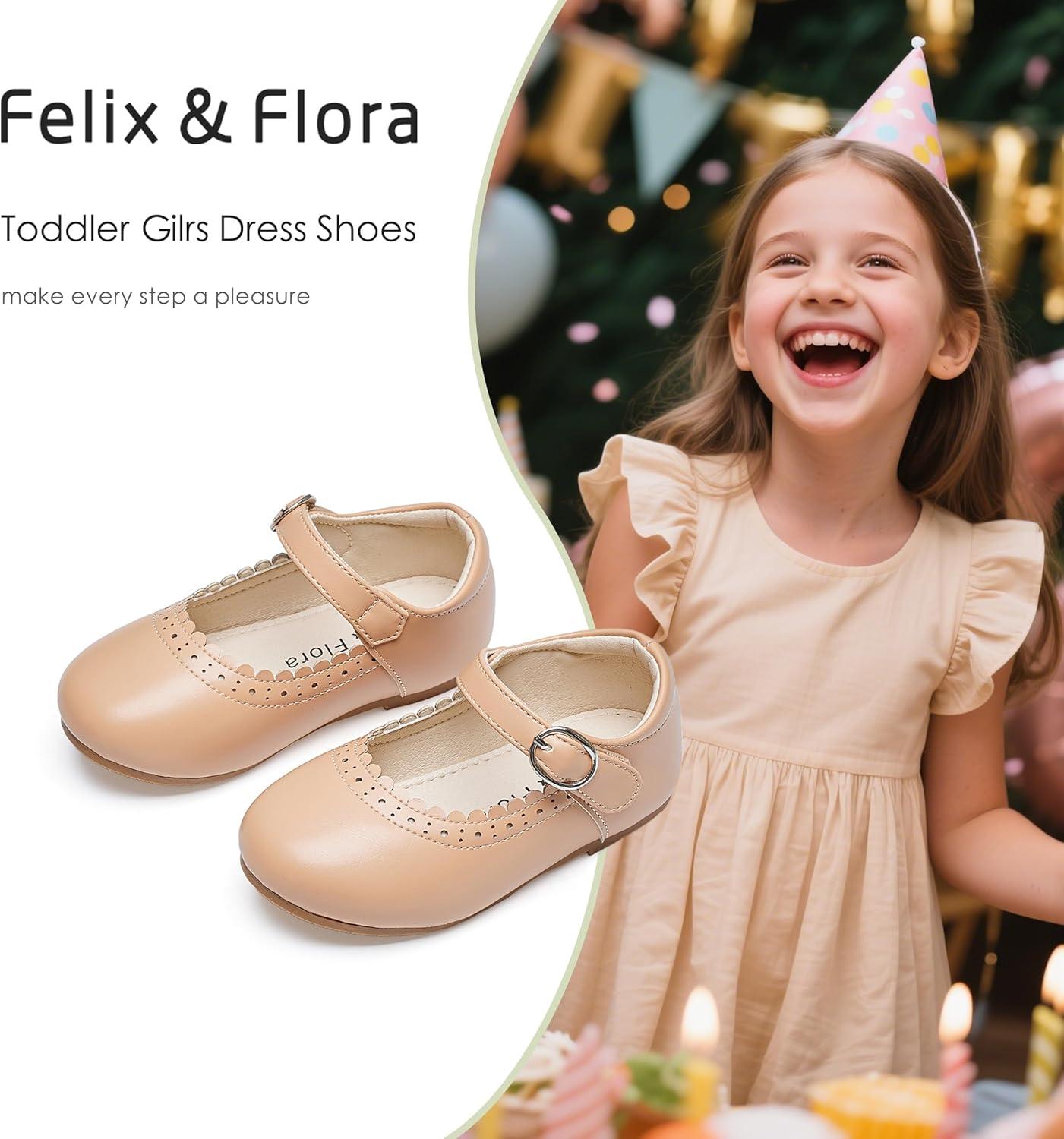 Felix & Flora Toddler Girl Dress Shoes – Flower Girl Ballet Flats School Wedding Party(Bf19-nude)