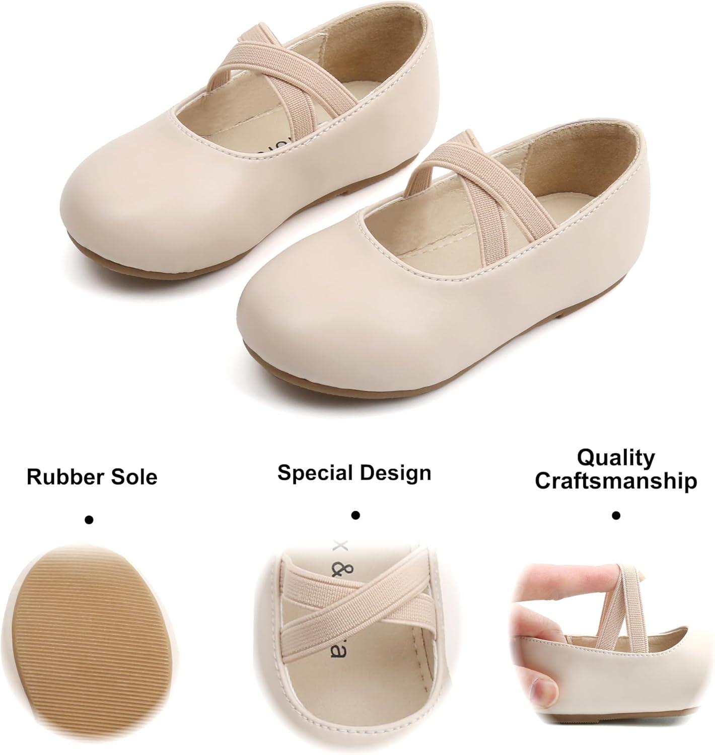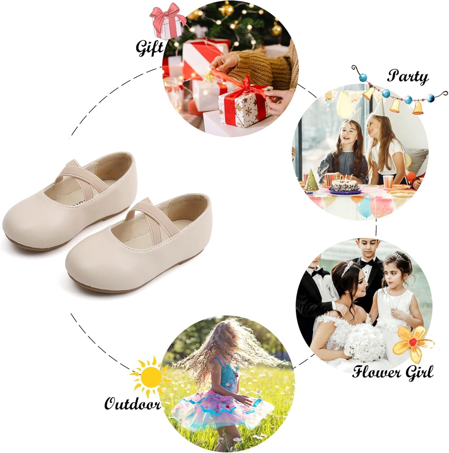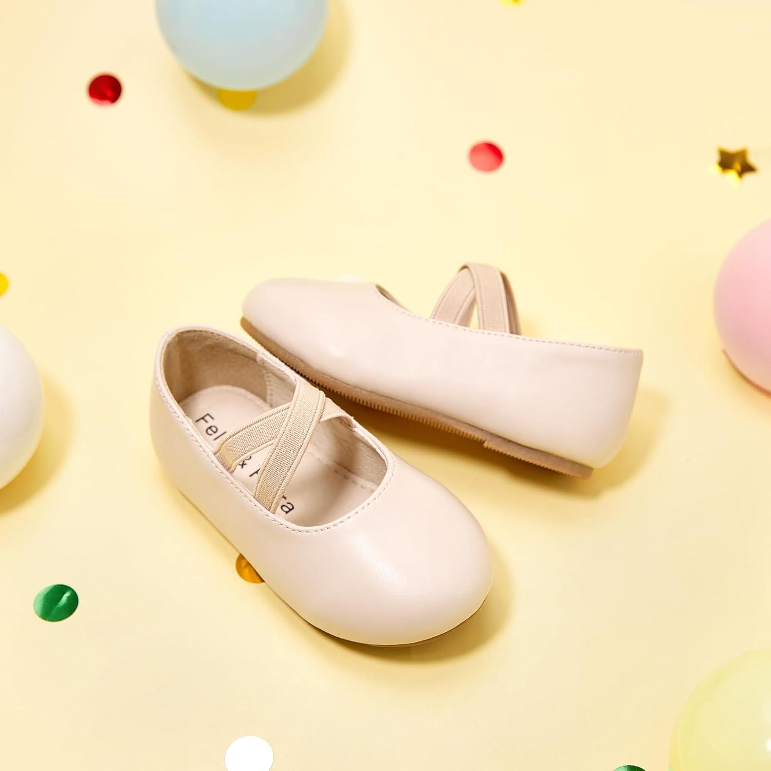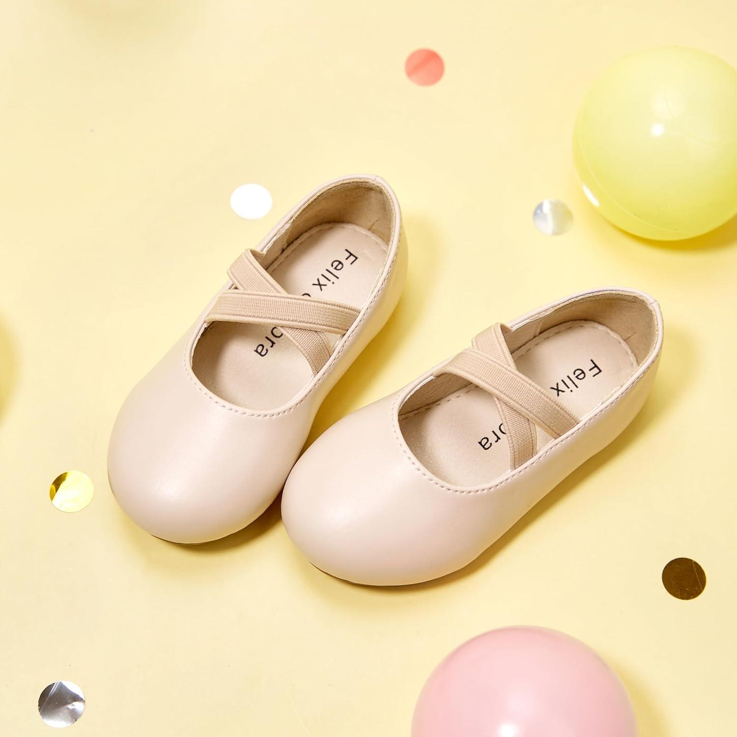 Felix & Flora Toddler Girl Dress Shoes – Flower Girl Ballet Mary Jane Flats Party School Wedding(B869-fl Beige)