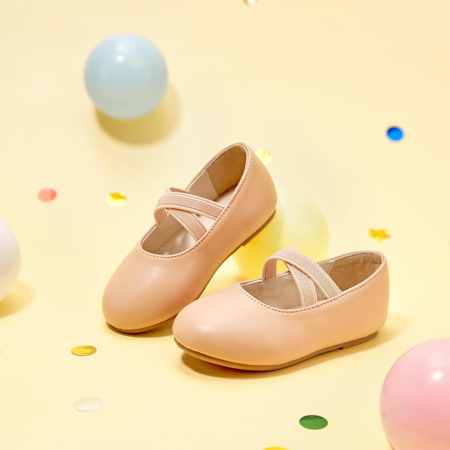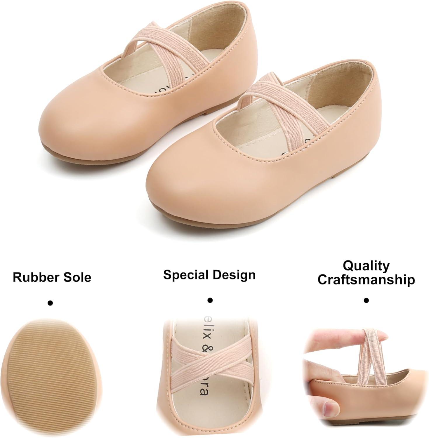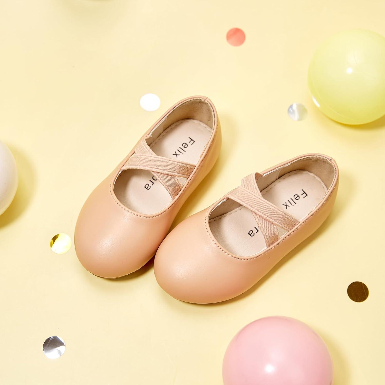 Felix & Flora Toddler Girl Dress Shoes – Flower Girl Ballet Mary Jane Flats Party School Wedding(B869-fl Nude)