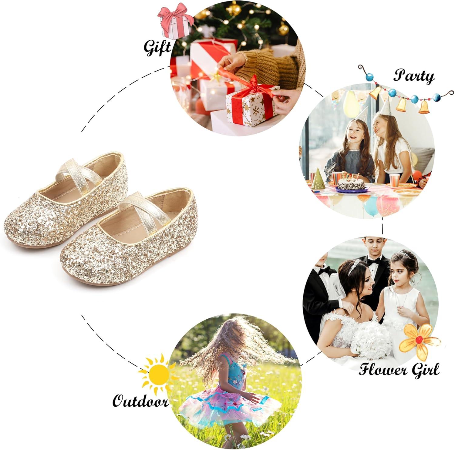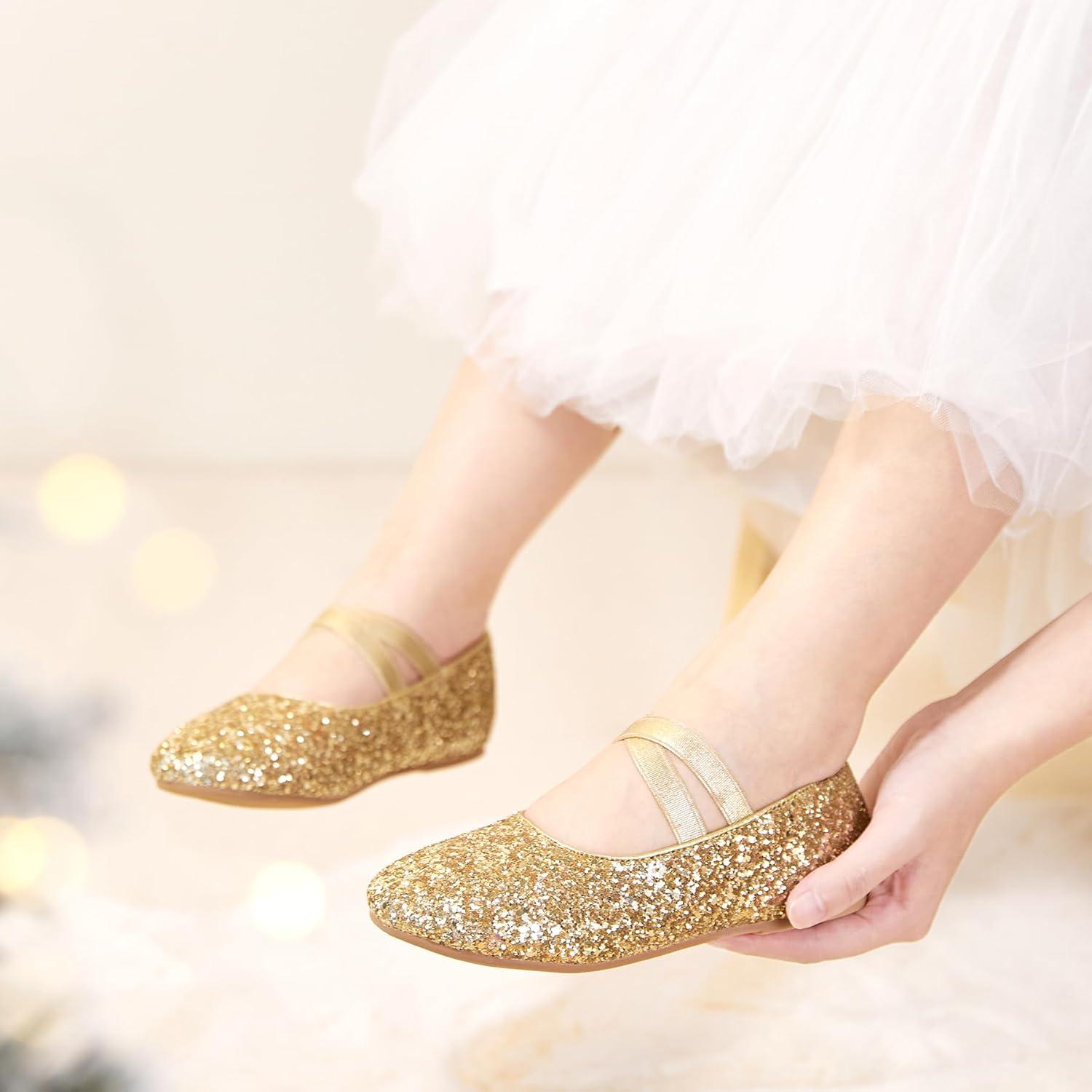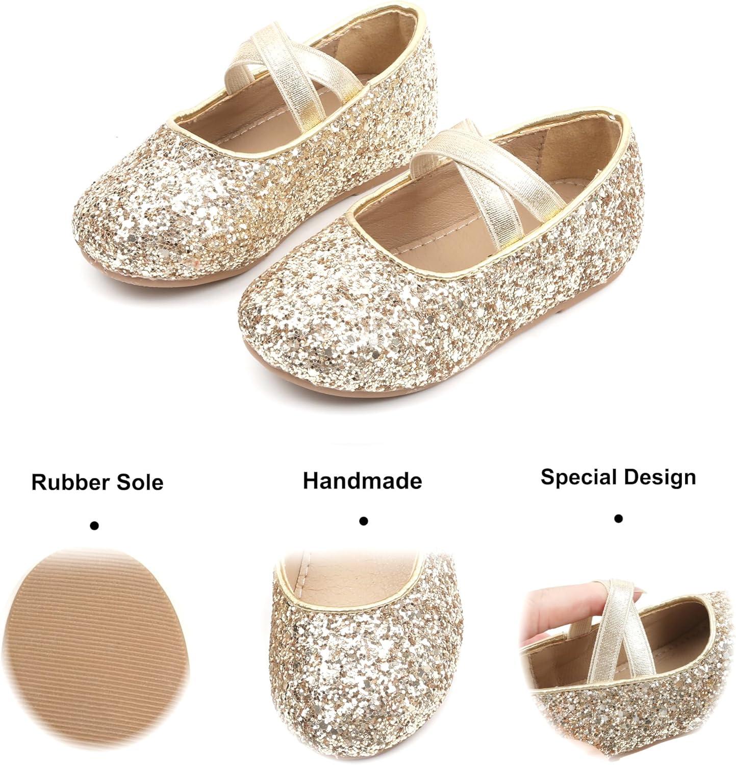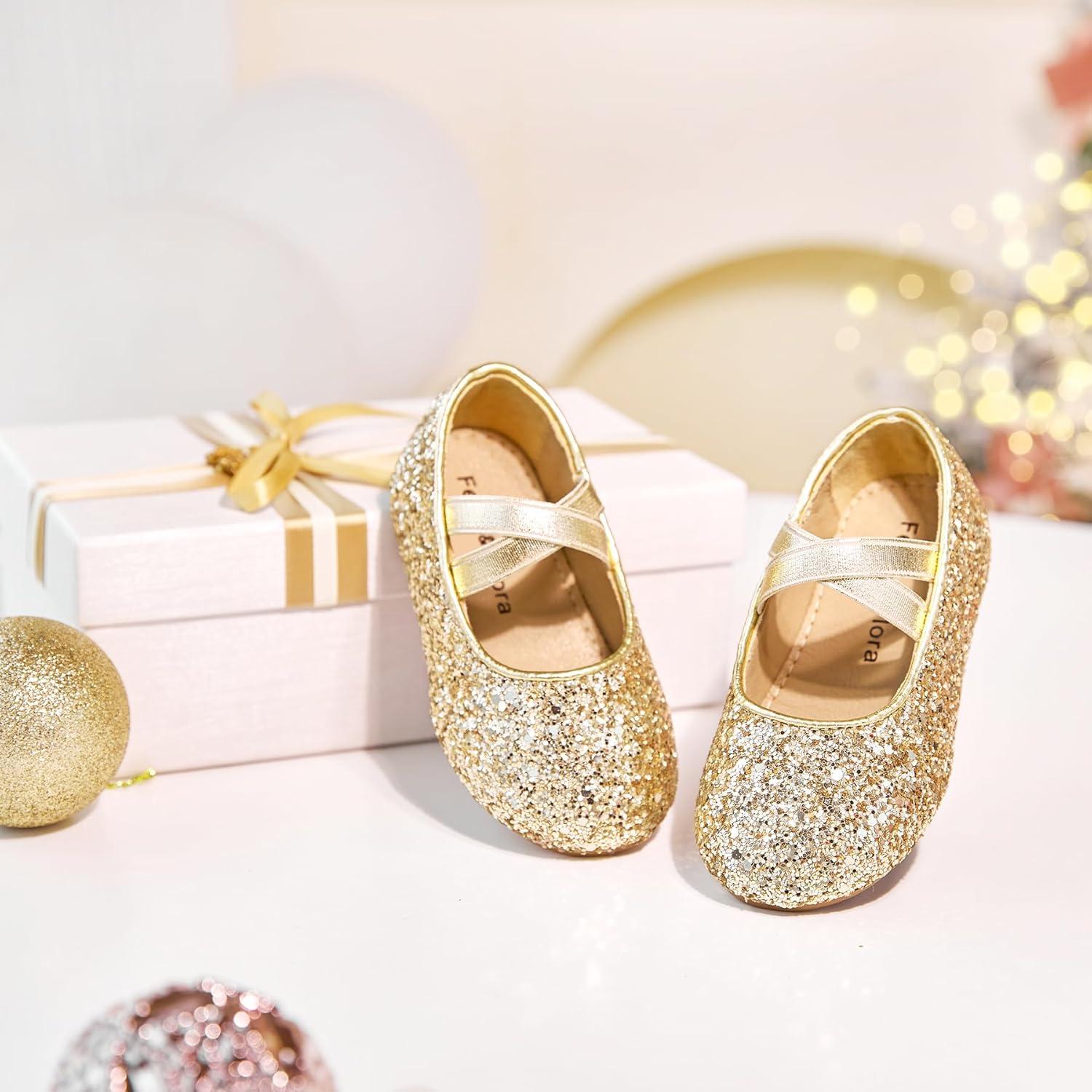 Felix & Flora Toddler Girl Dress Shoes – Flower Girl Ballet Mary Jane Flats Party School Wedding(B869-glitter Gold)