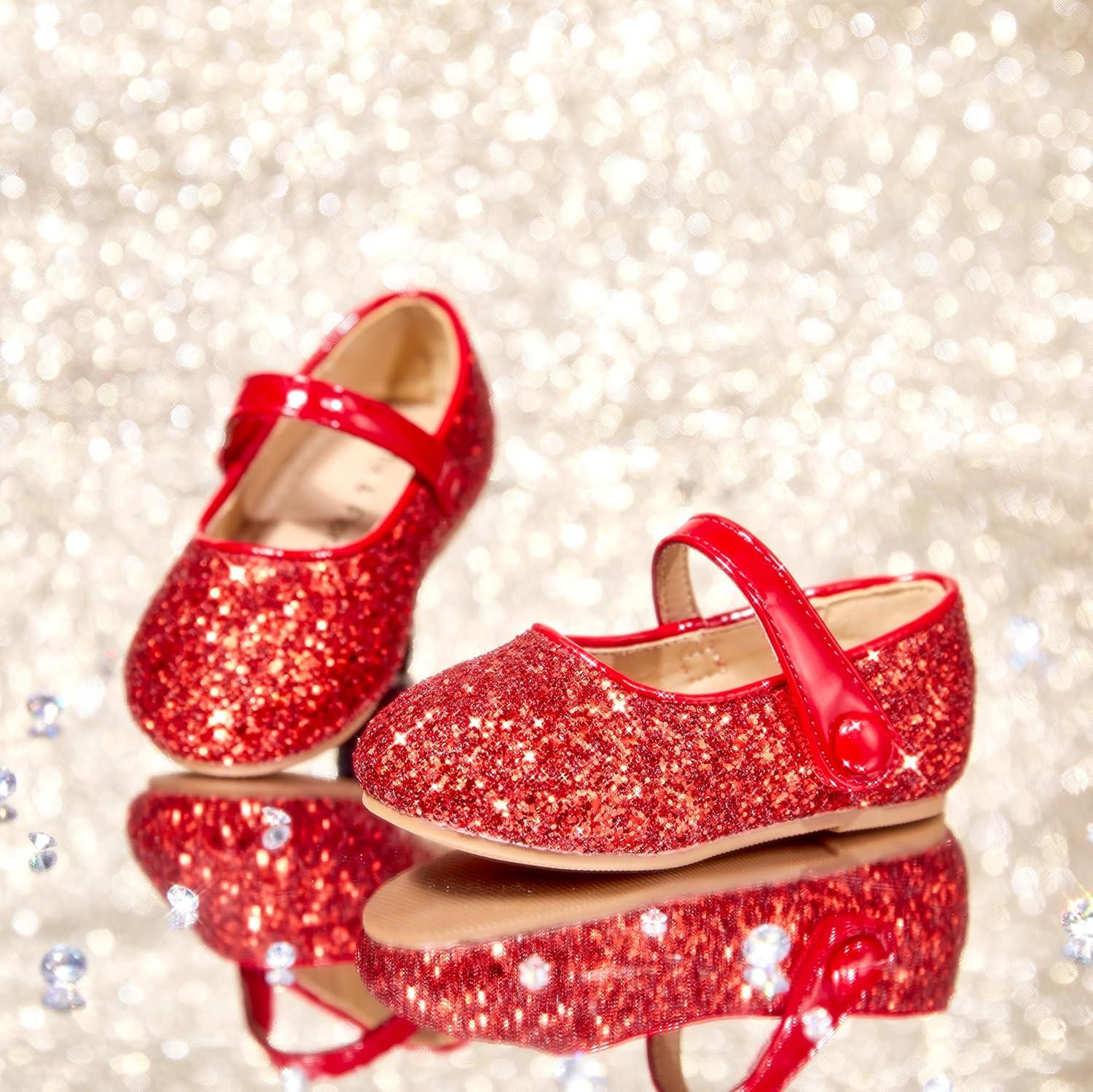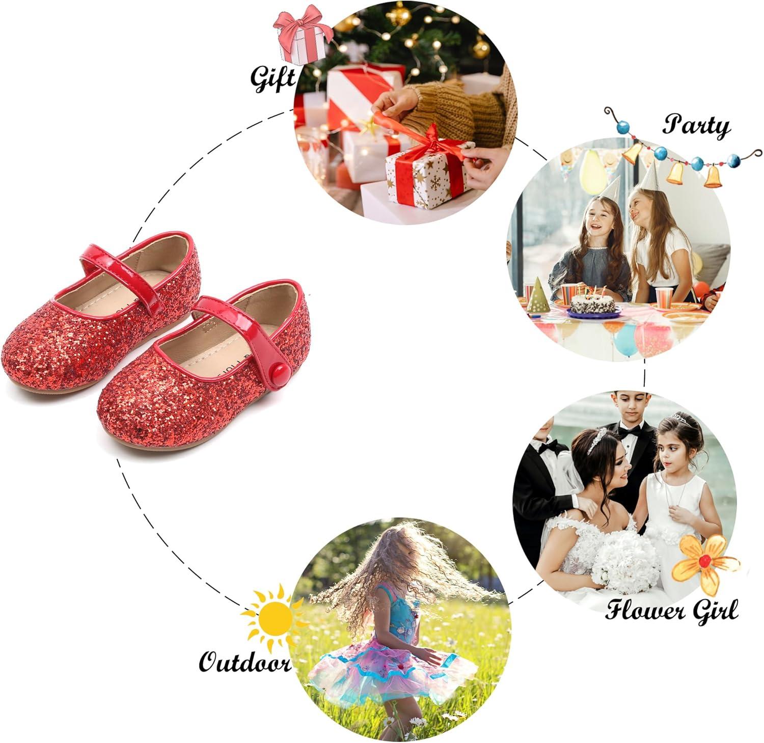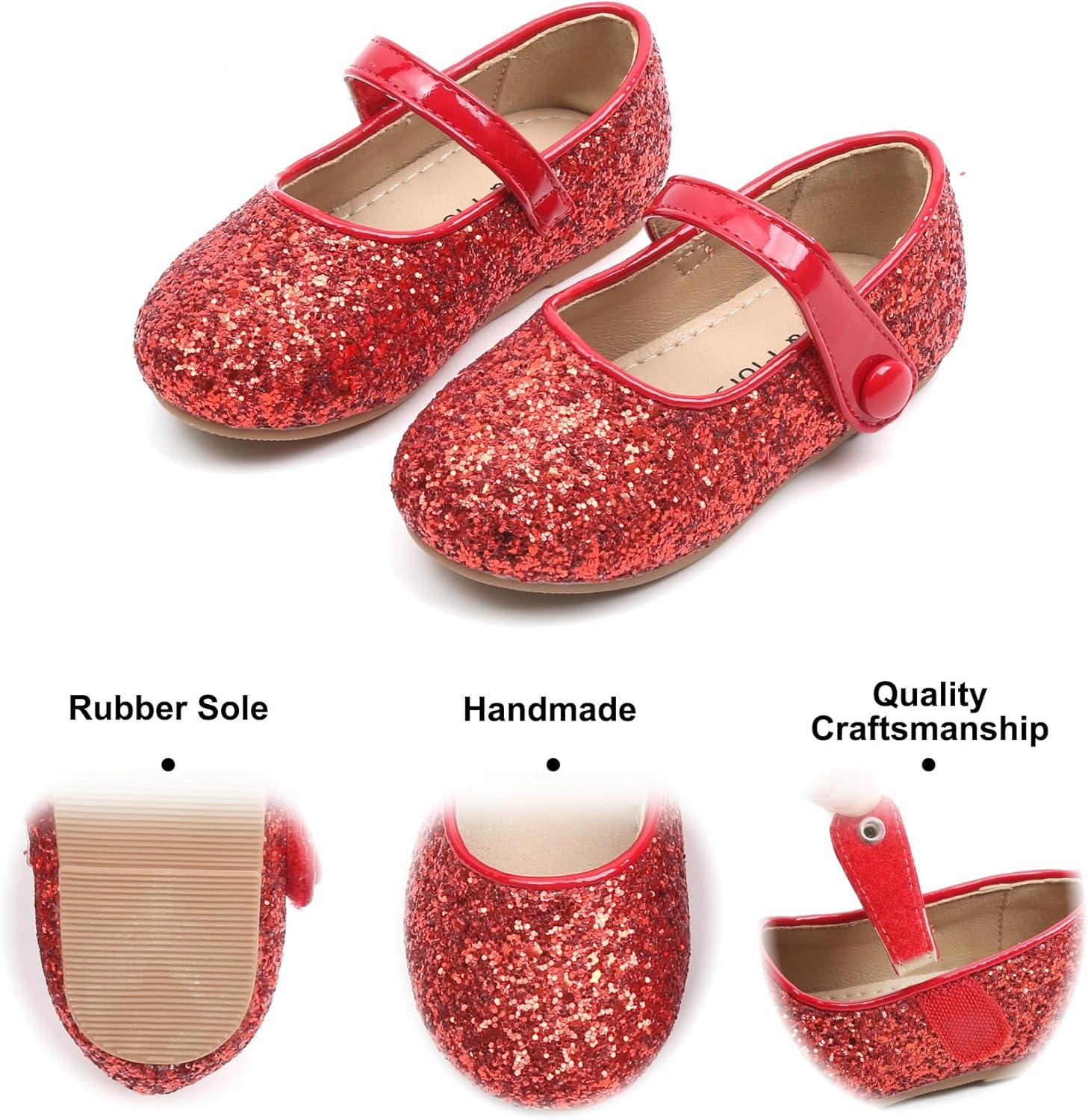 Felix & Flora Toddler Girl Dress Shoes – Flower Girl Ballet Mary Jane Flats Party School Wedding(B876-glitter Red)