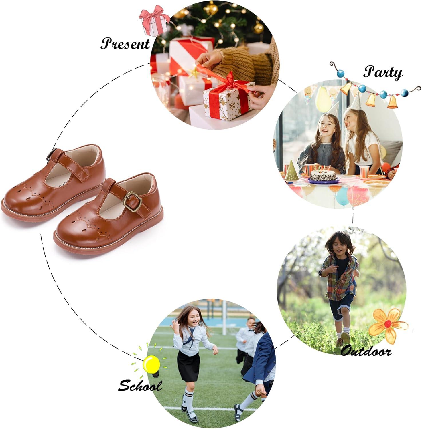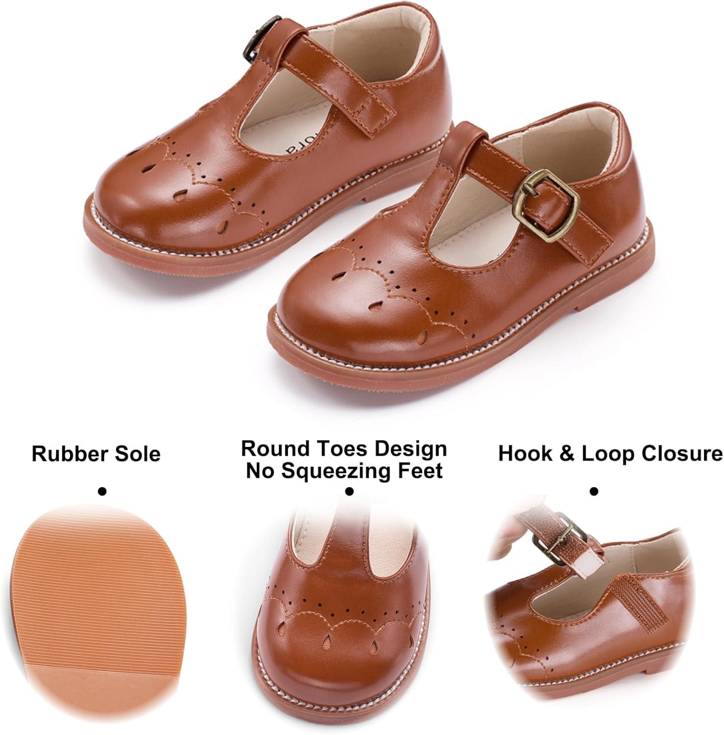 Felix & Flora Toddler Girl Mary Jane Dress Shoes – School Oxford Flats for Girl Party Shoes.(B423-brown)