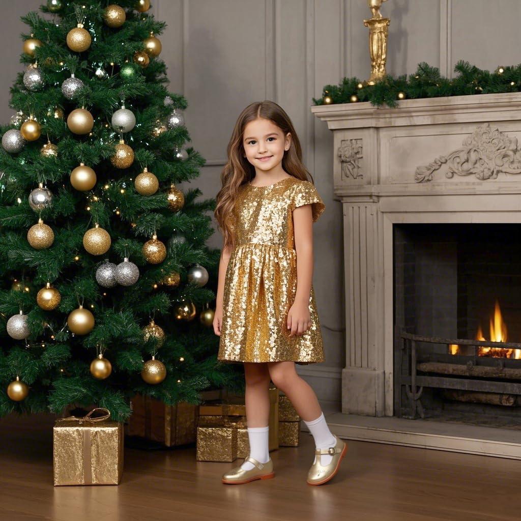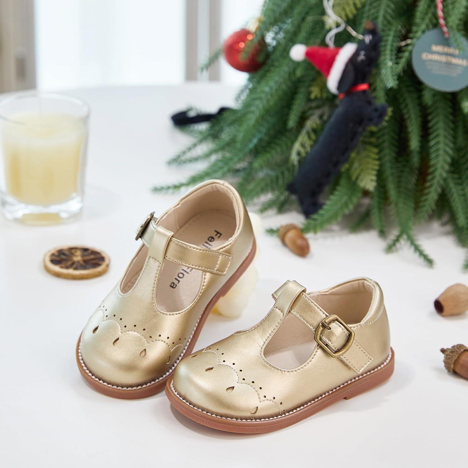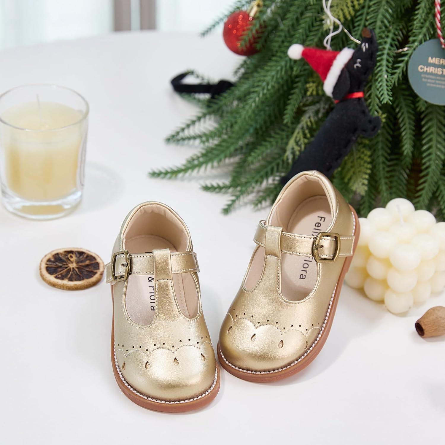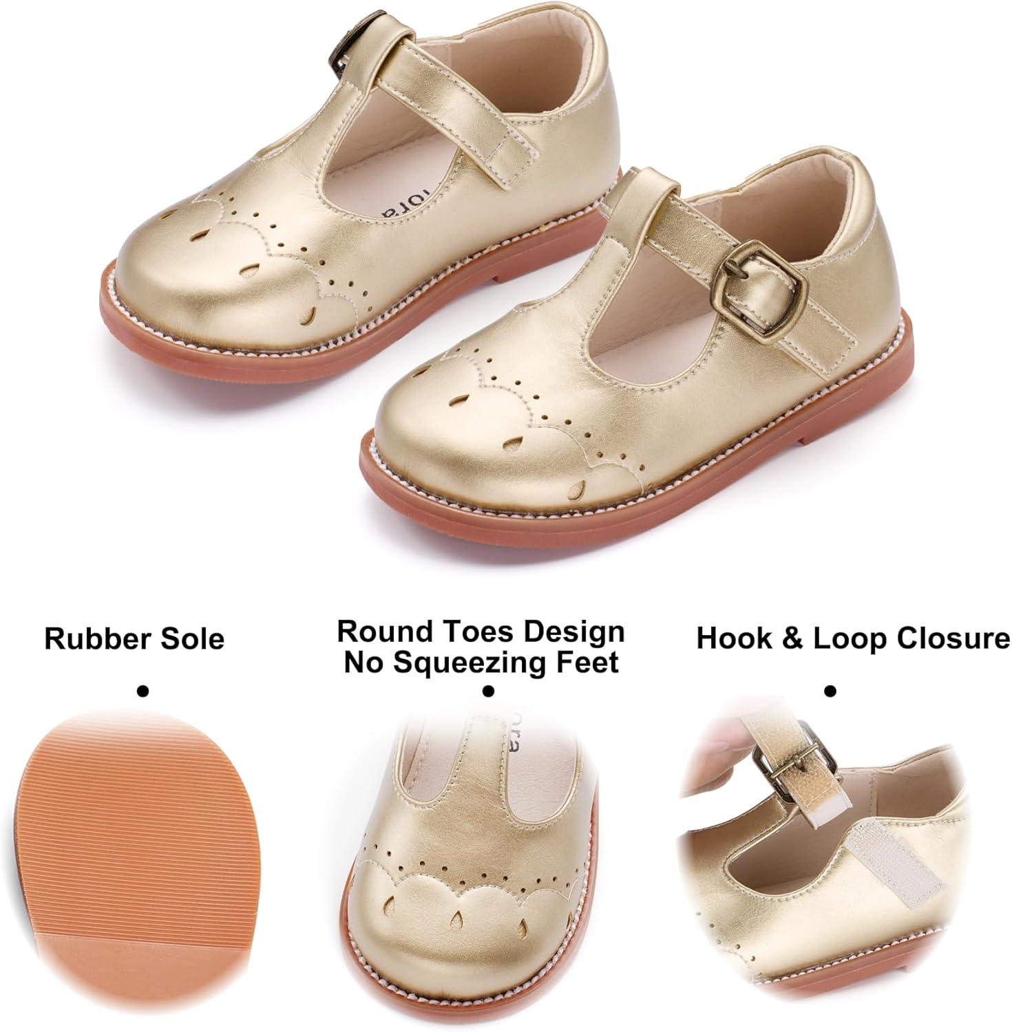 Felix & Flora Toddler Girl Mary Jane Dress Shoes – School Oxford Flats for Girl Party Shoes.(B423-gold)