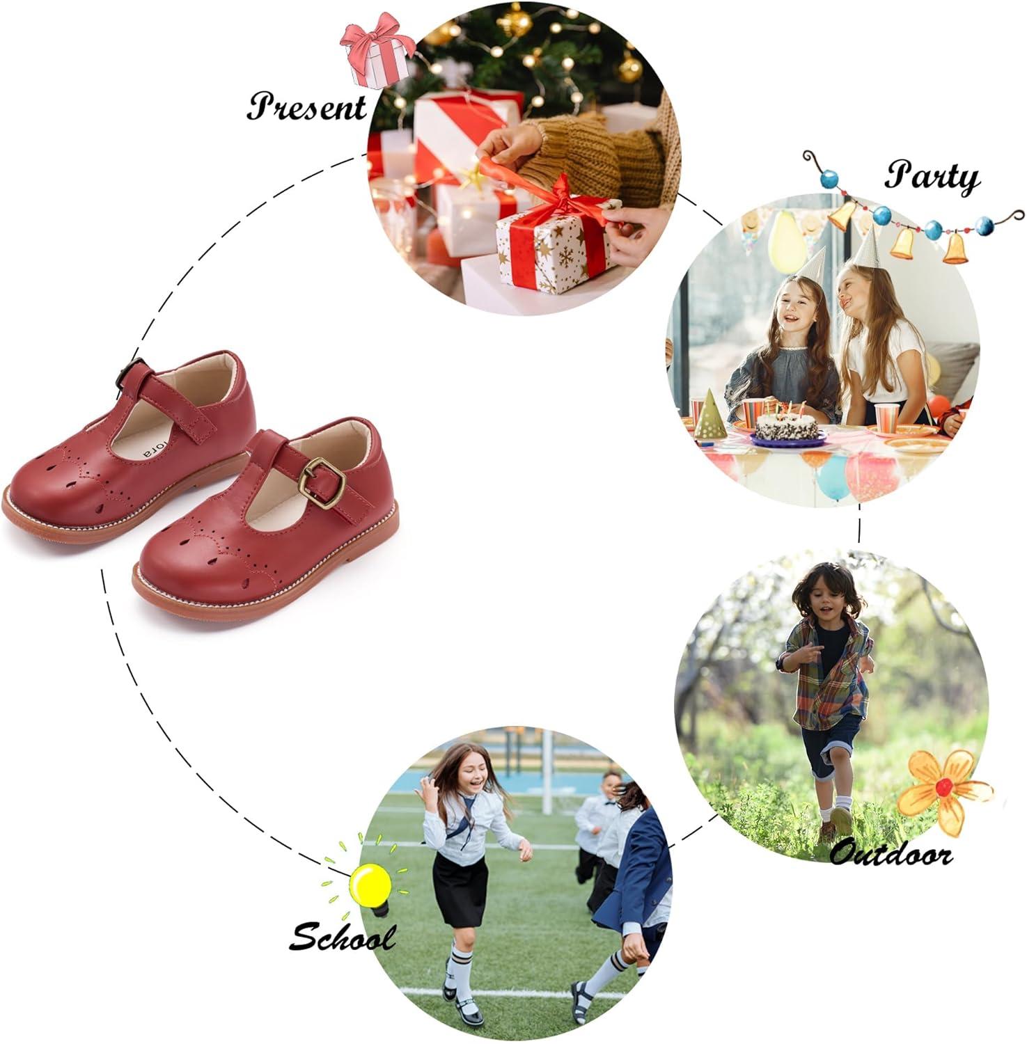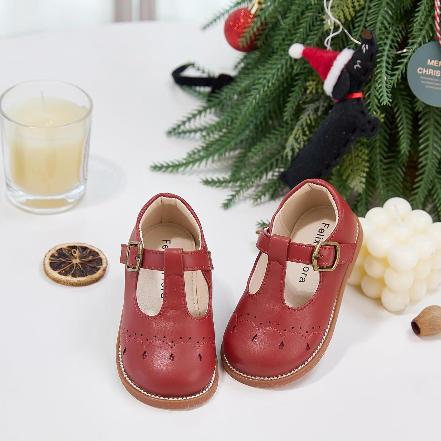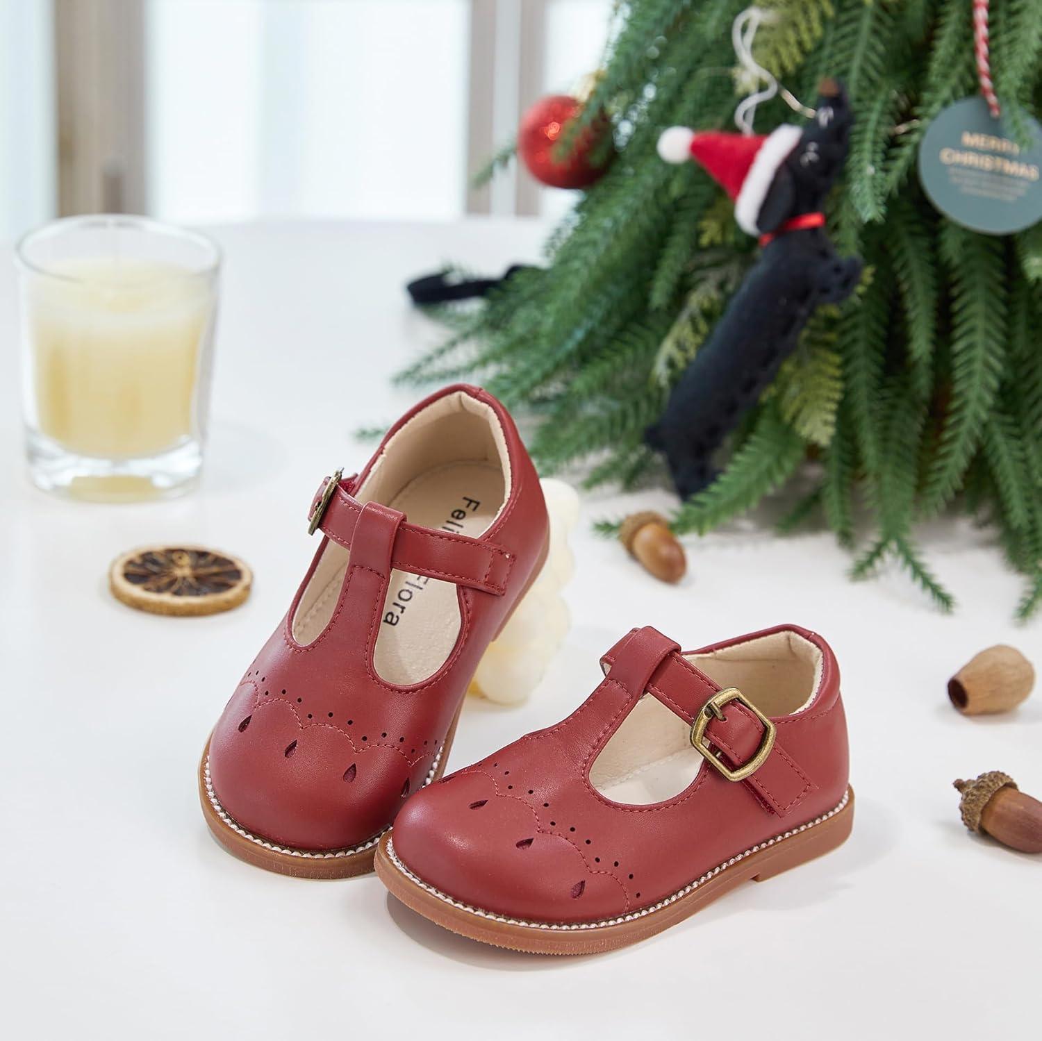 Felix & Flora Toddler Girl Mary Jane Dress Shoes – School Oxford Flats for Girl Party Shoes.(B423-red)