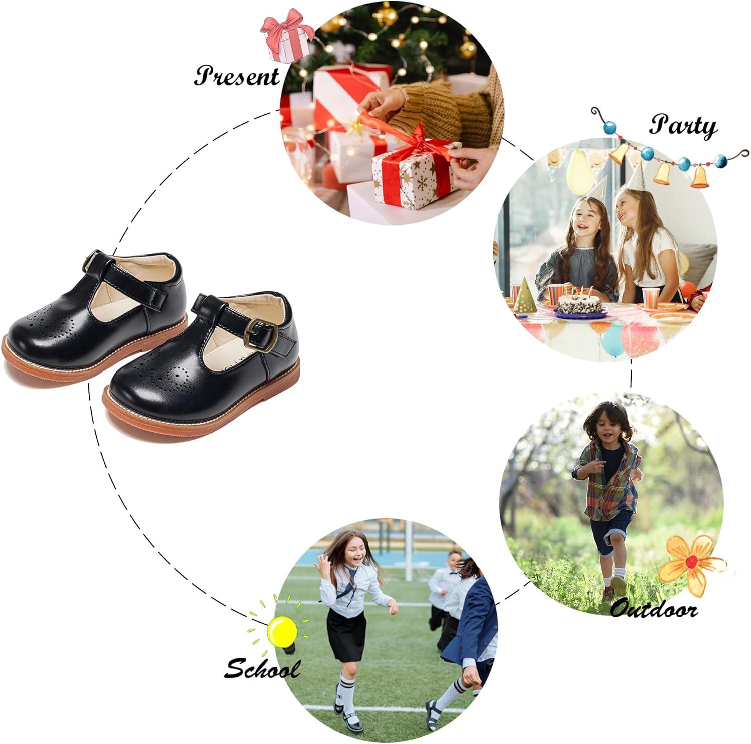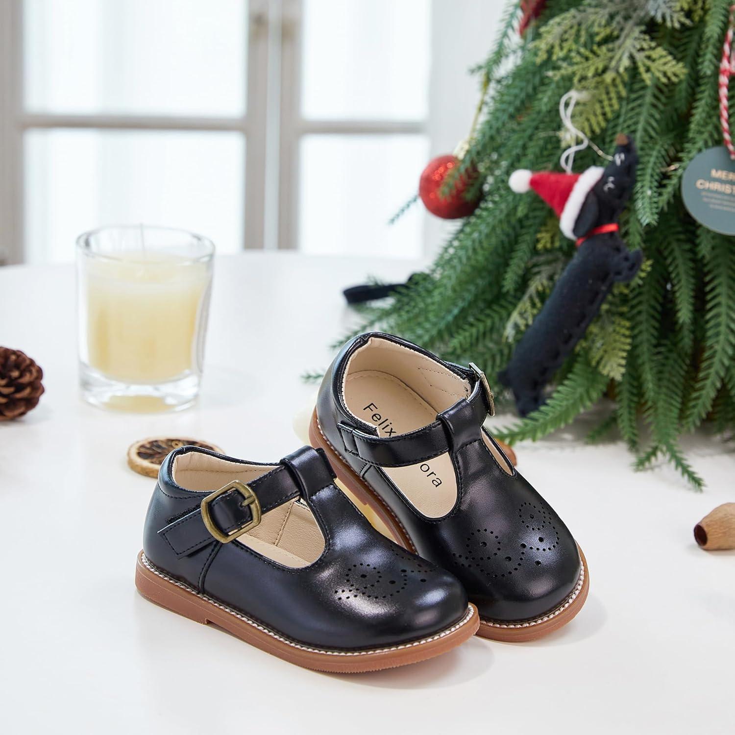 Felix & Flora Toddler Girl Mary Jane Dress Shoes – School Oxford Flats for Girl Party Shoes.(B425-black)