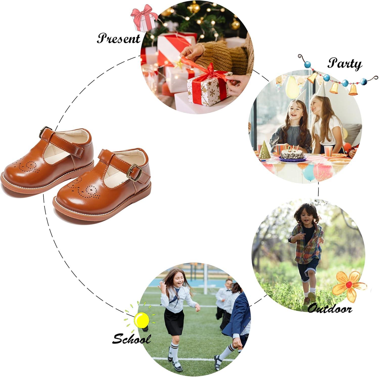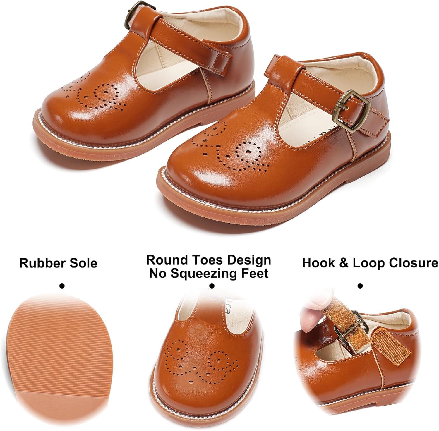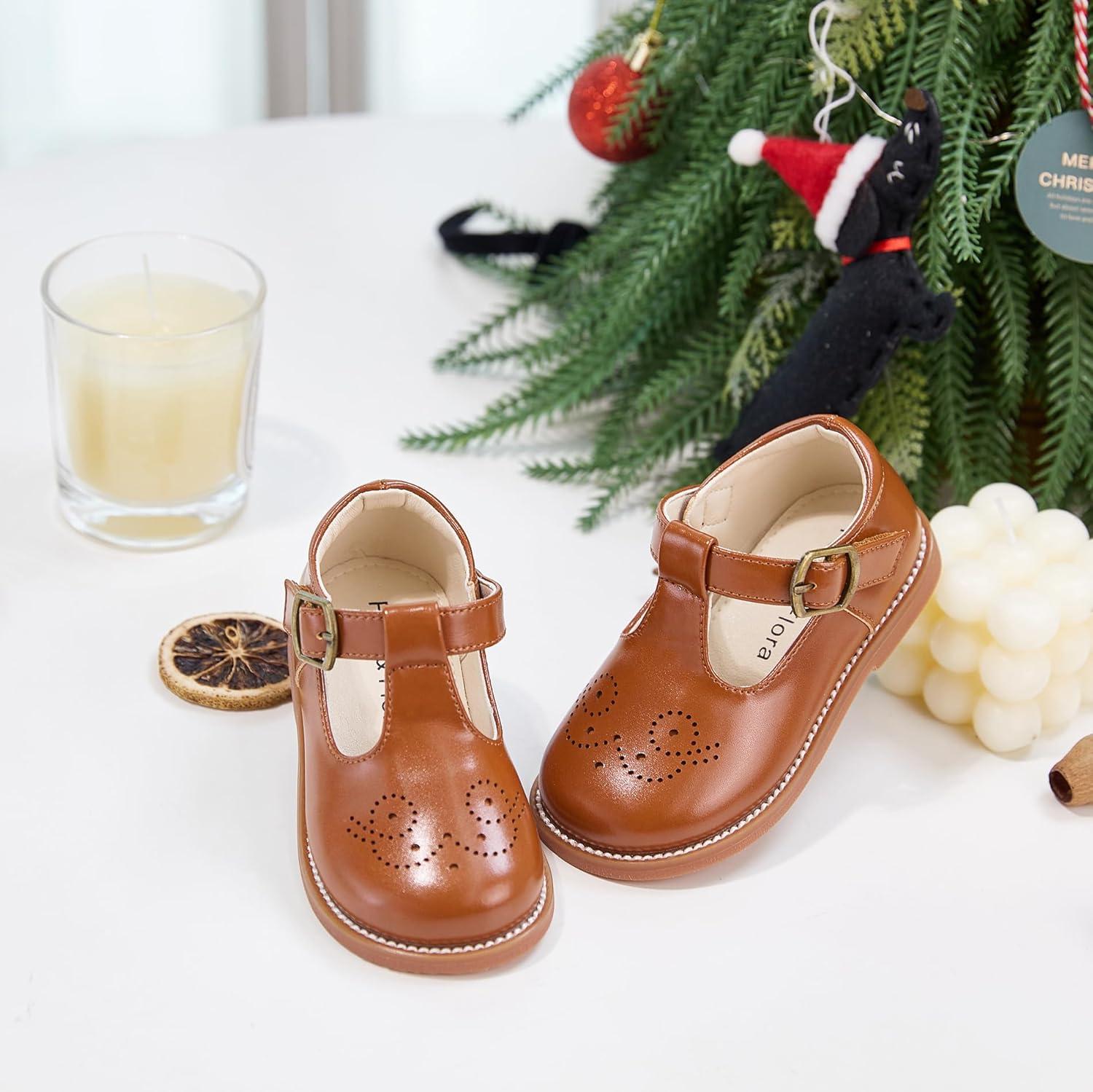 Felix & Flora Toddler Girl Mary Jane Dress Shoes – School Oxford Flats for Girl Party Shoes.(B425-brown)