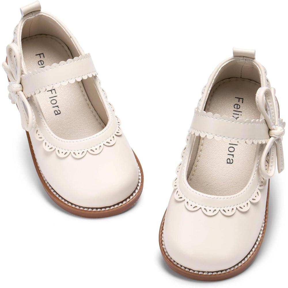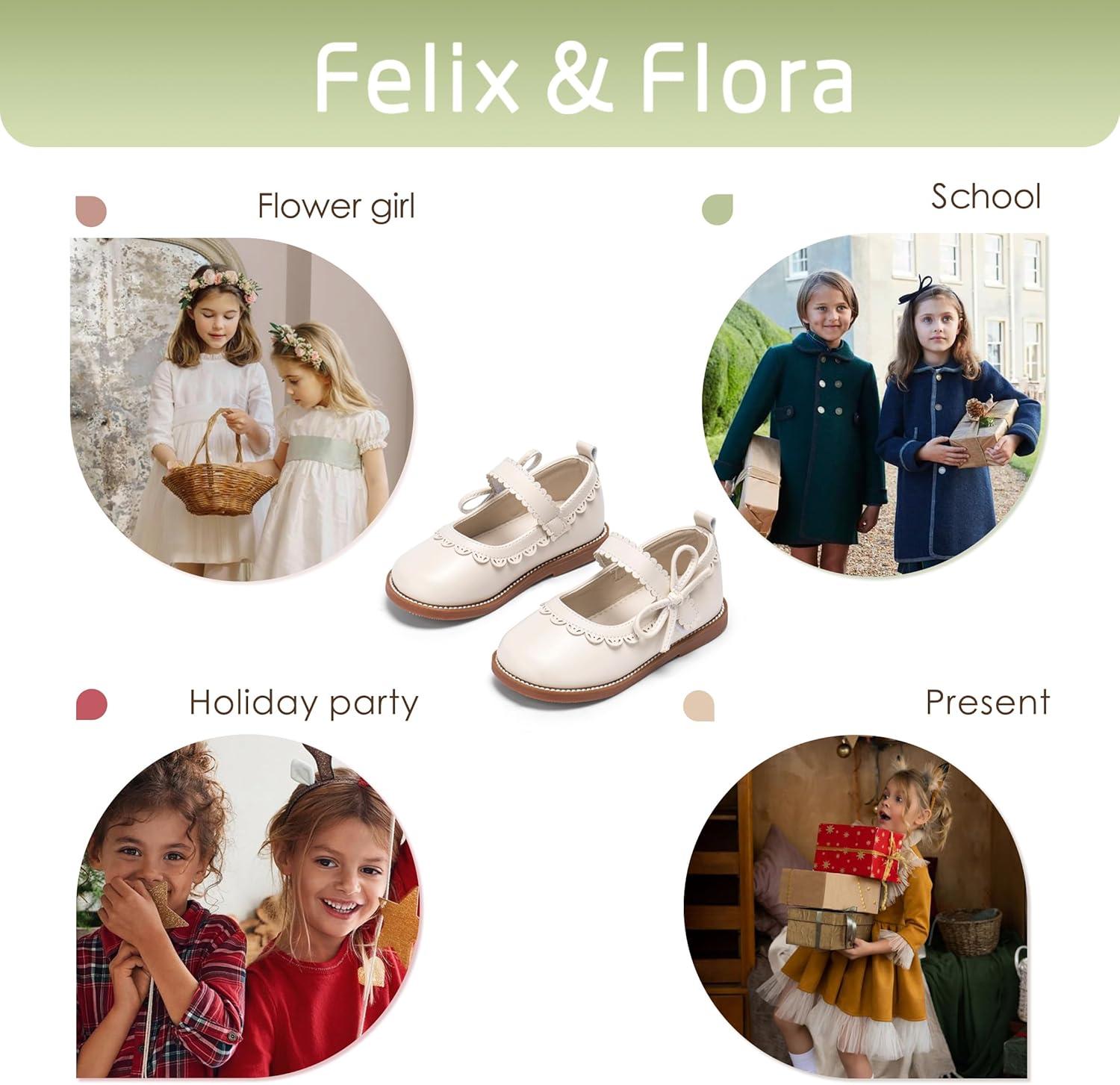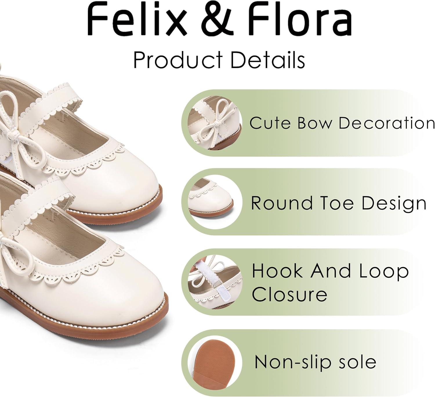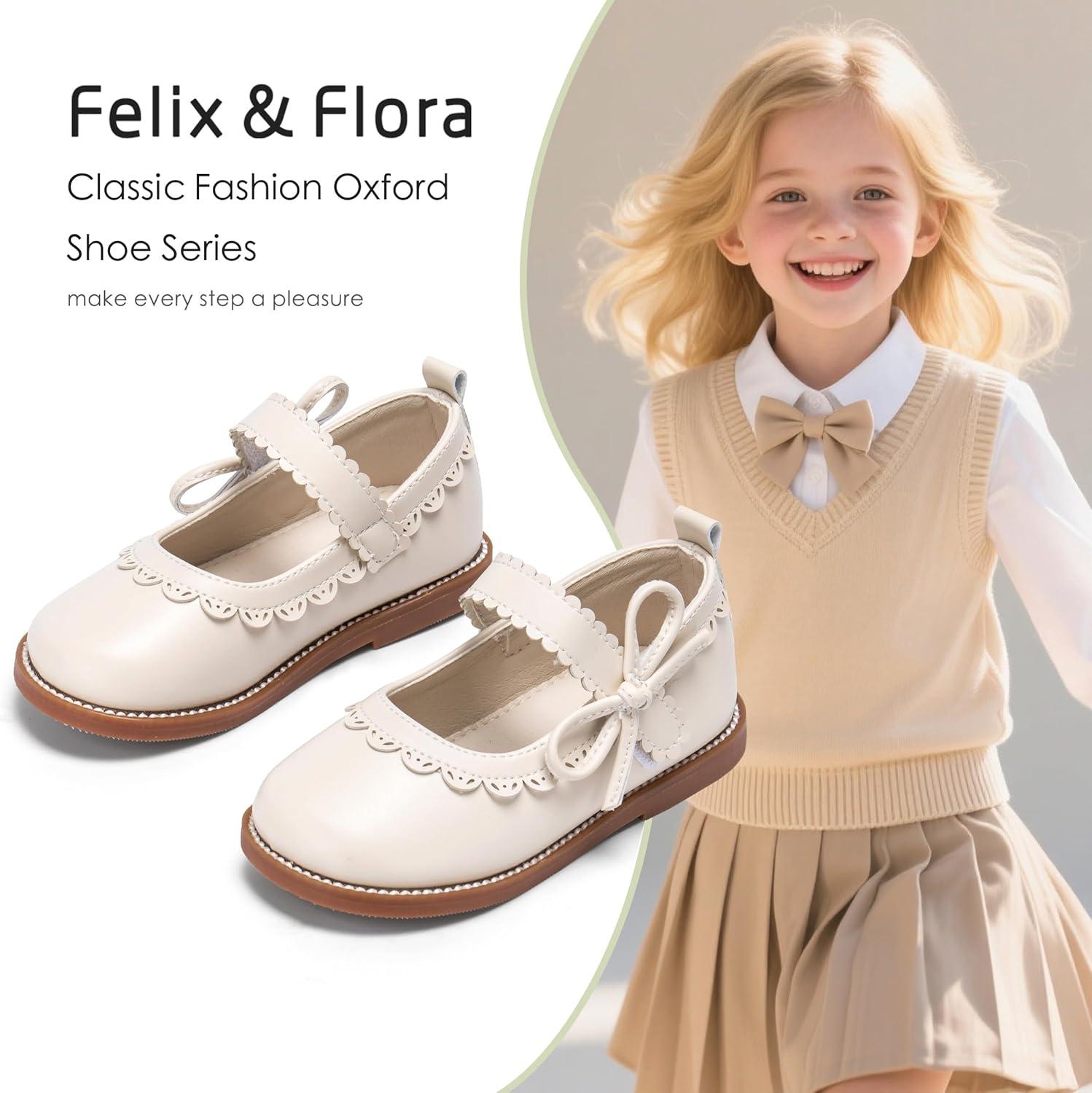 Felix & Flora Toddler Girl Mary Jane Dress Shoes – School Oxford Flats for Girl Party Shoes.(B429-beige)