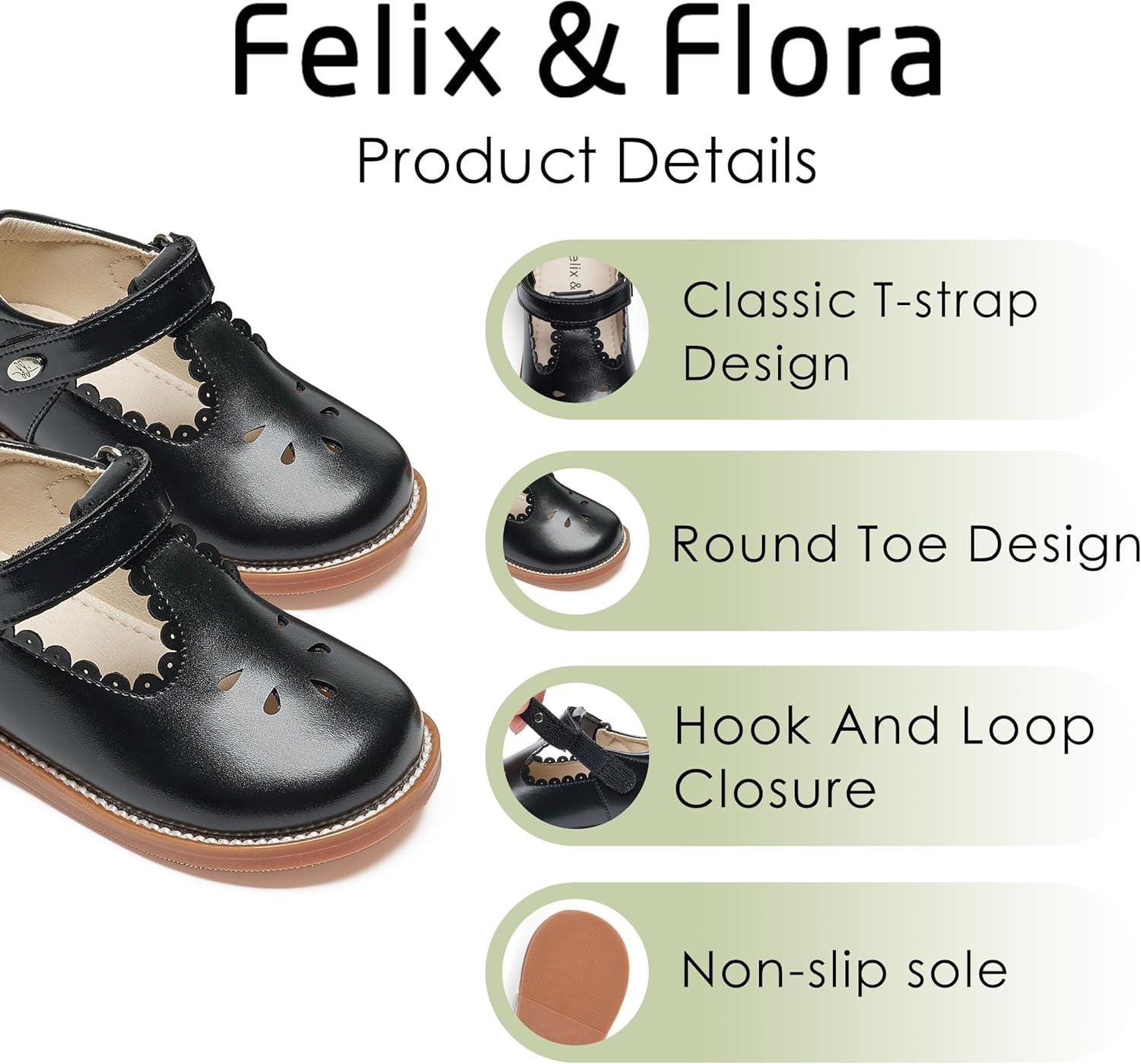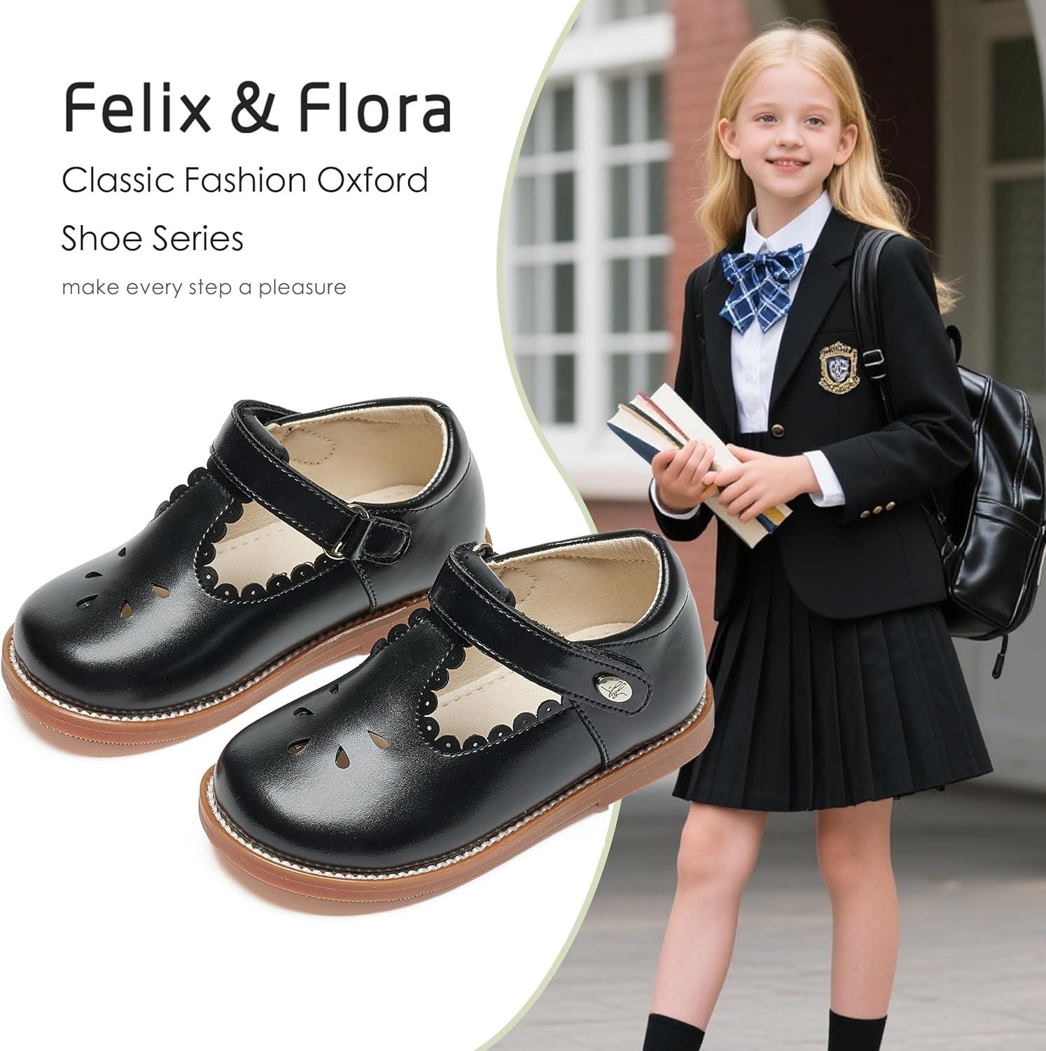 Felix & Flora Toddler Girl Oxford Dress Shoes – Mary Jane Flats for Little Girl Party School Shoes.(B426-black)