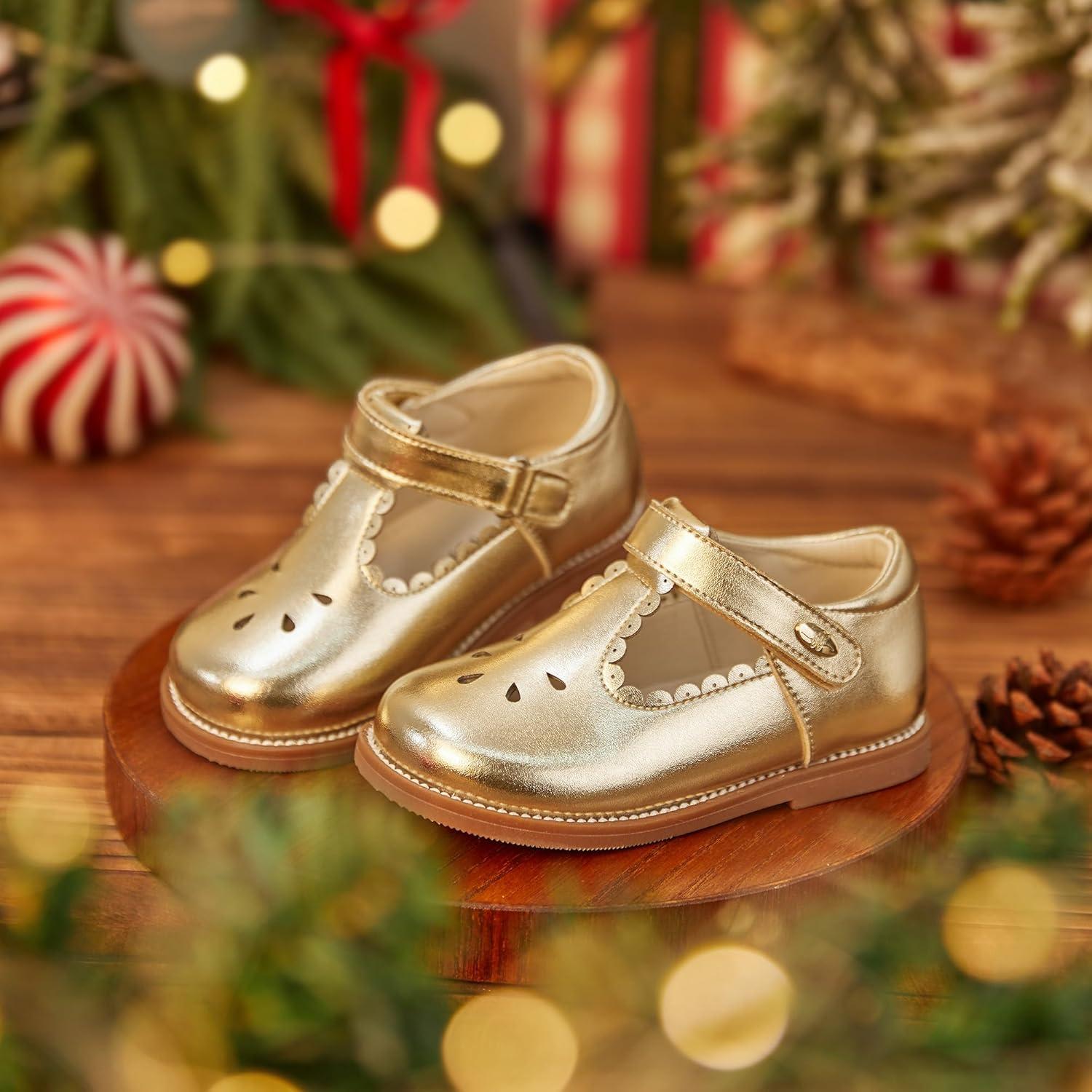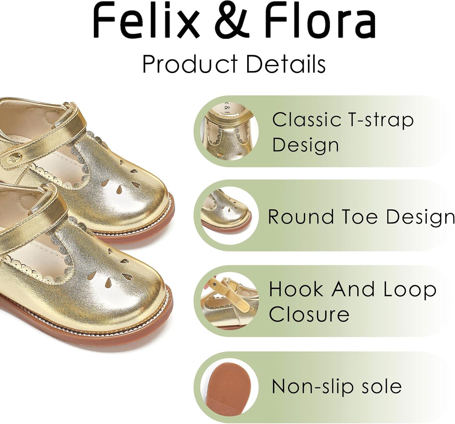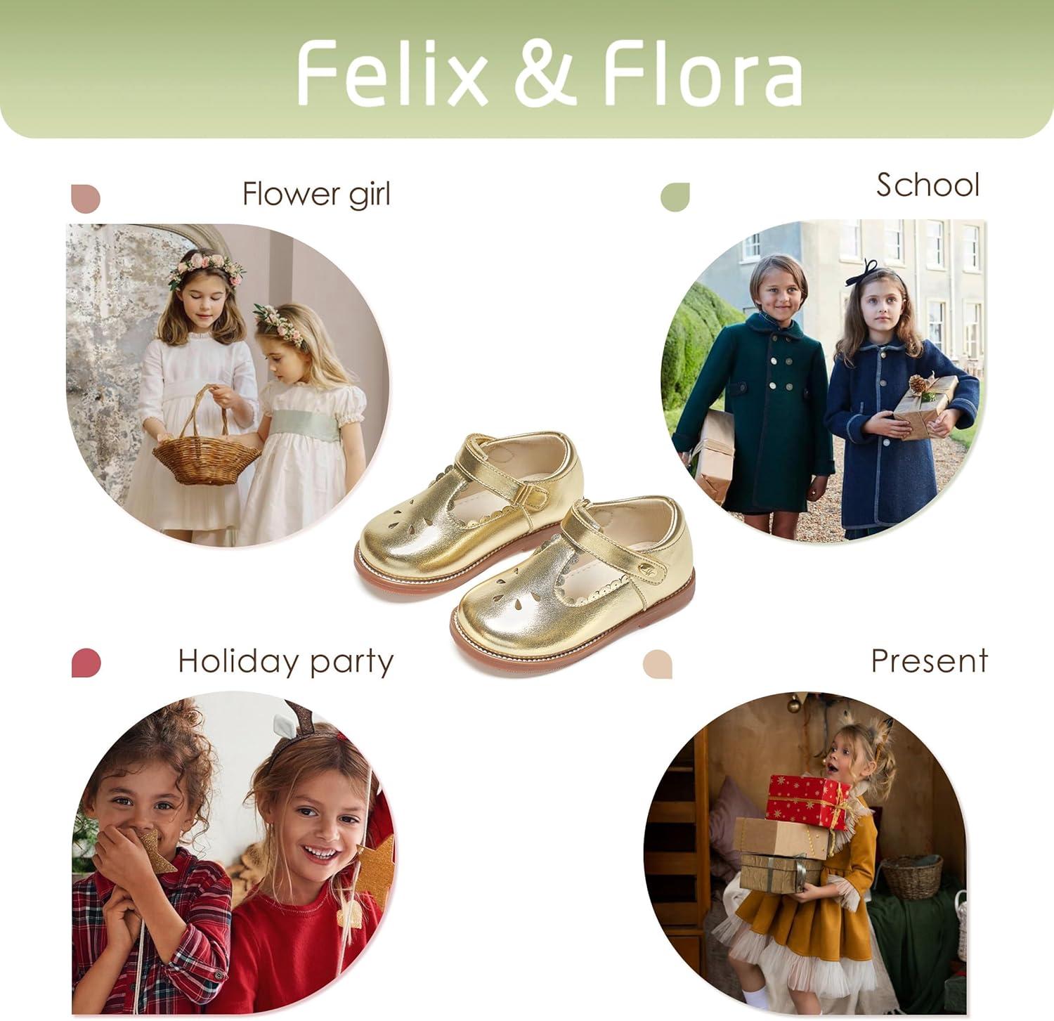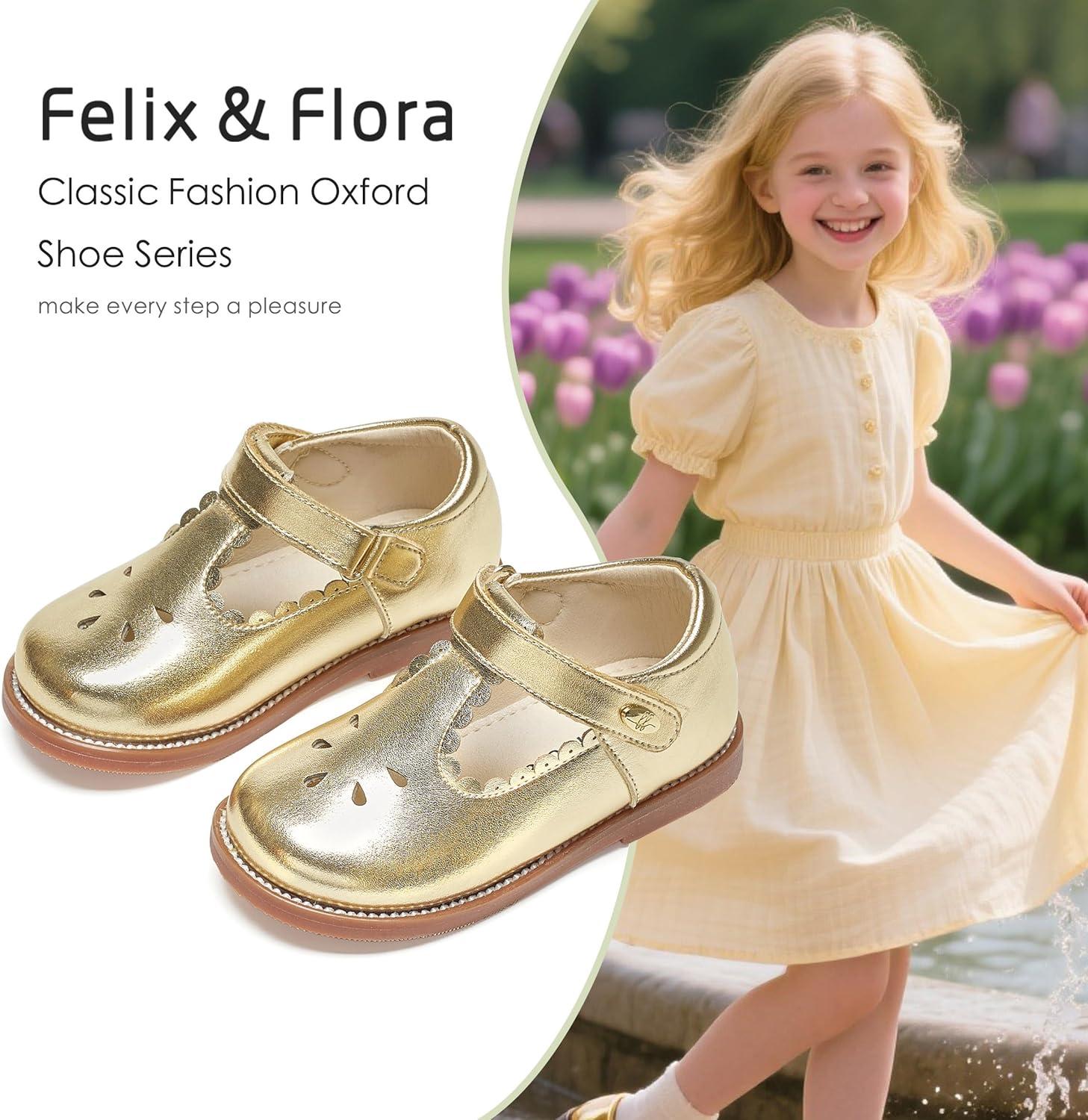 Felix & Flora Toddler Girl Oxford Dress Shoes – Mary Jane Flats for Little Girl Party School Shoes.(B426-gold)