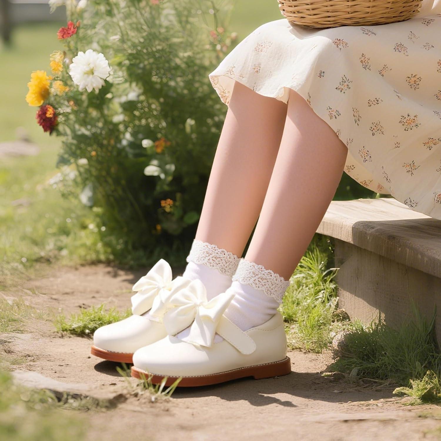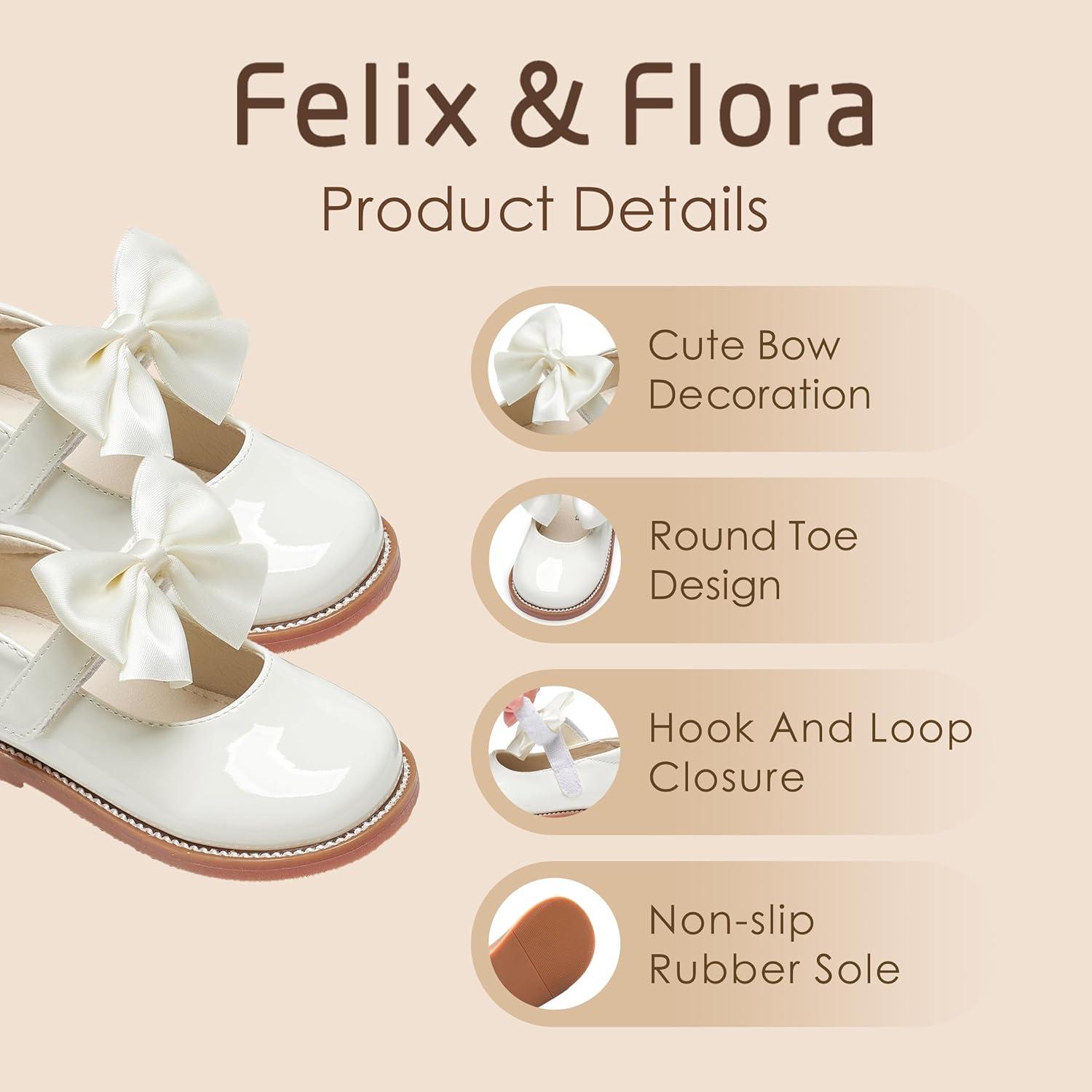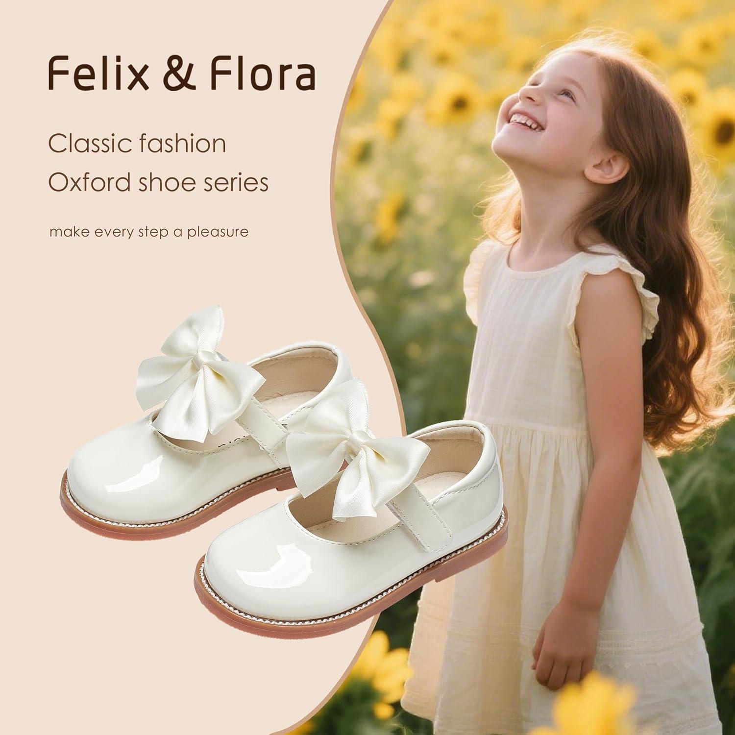 Felix & Flora Toddler Girl Oxford Dress Shoes – Mary Jane Flats for Little Girl Party School Shoes.(B427-ivory White)
