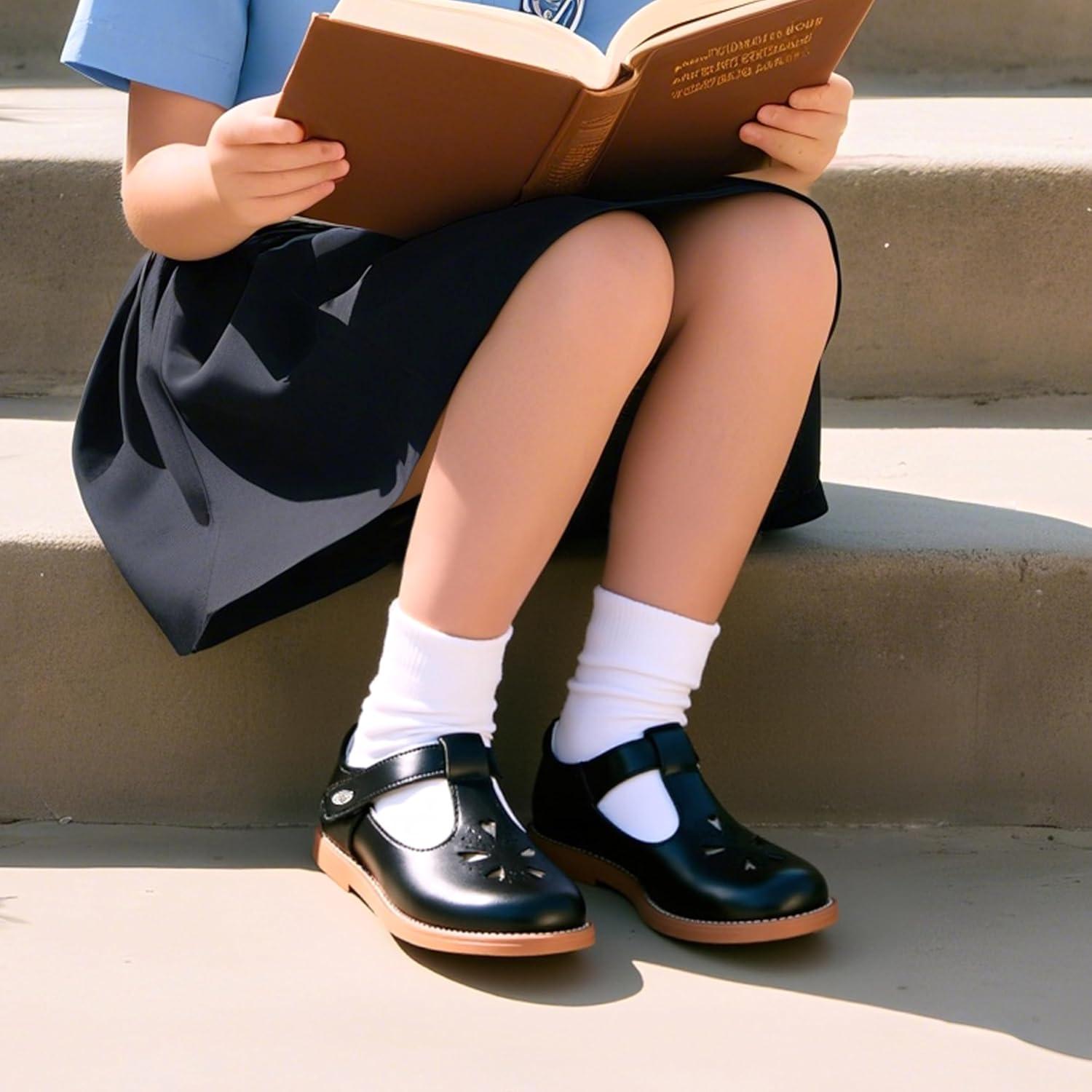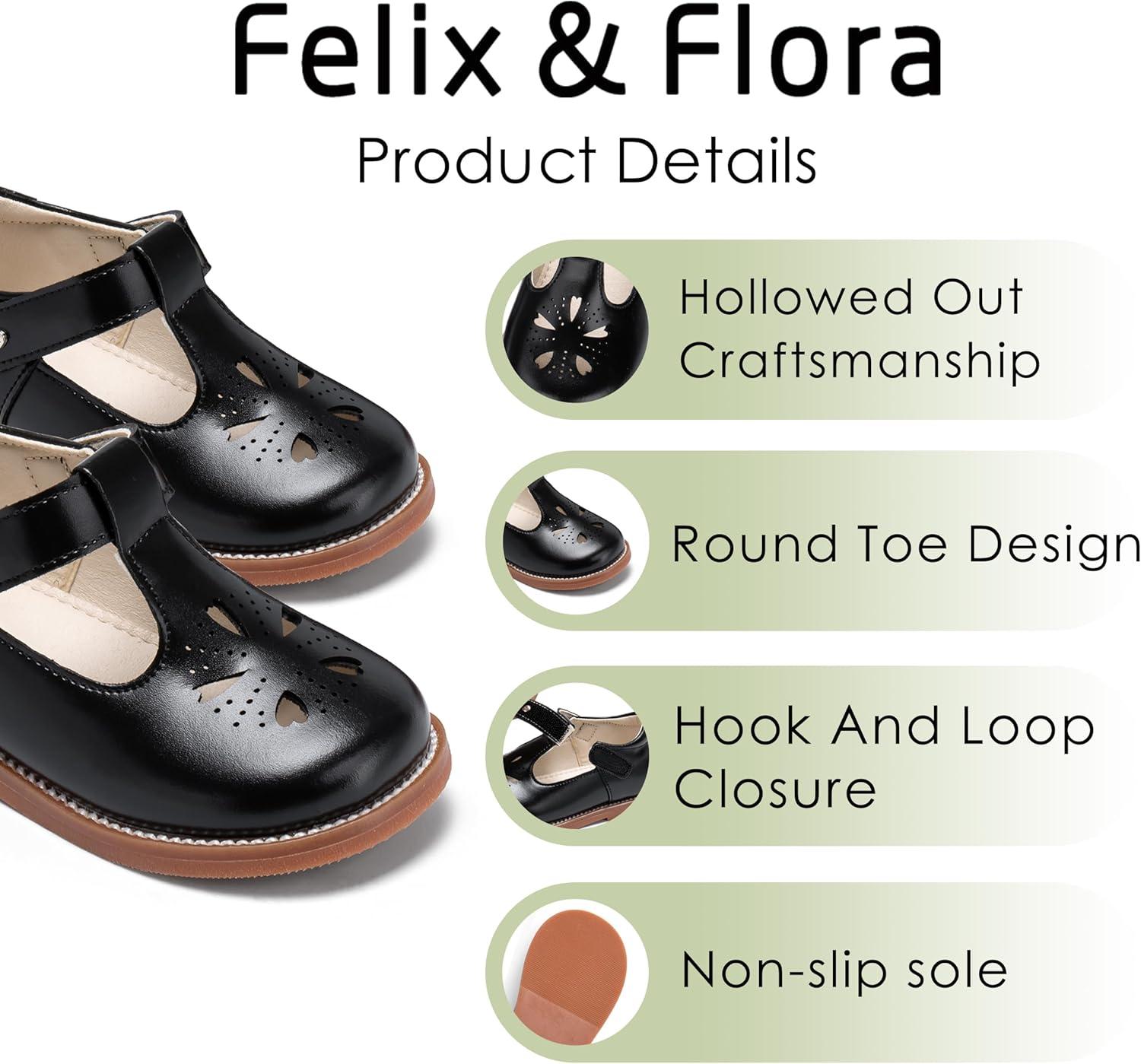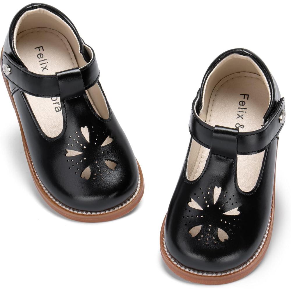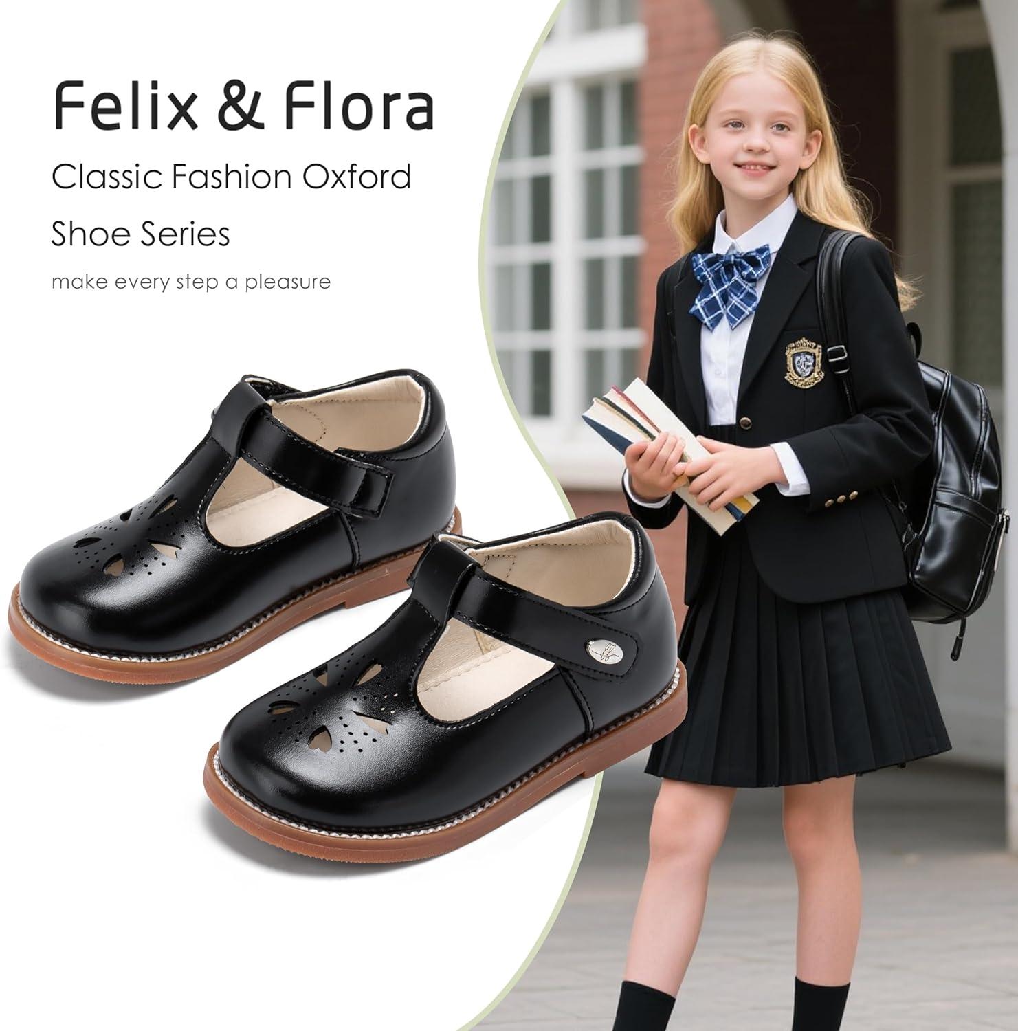 Felix & Flora Toddler Girl Oxford Dress Shoes – Mary Jane Flats for Little Girl Party School Shoes.(B428-black)