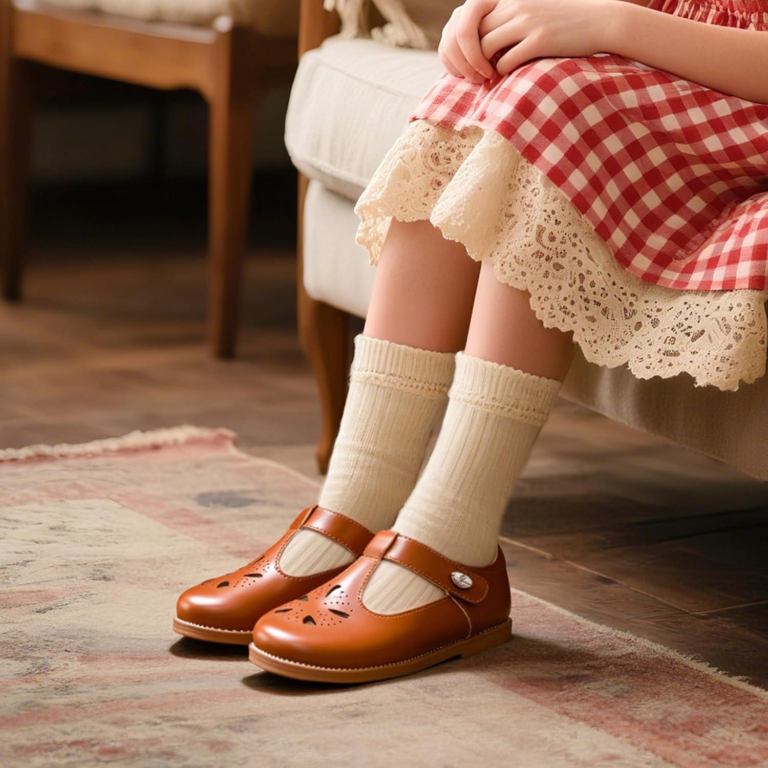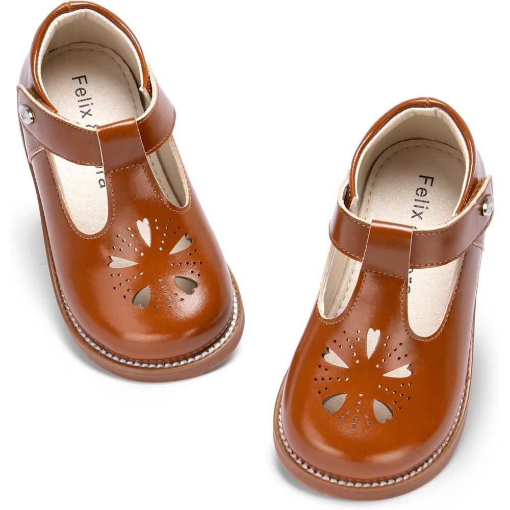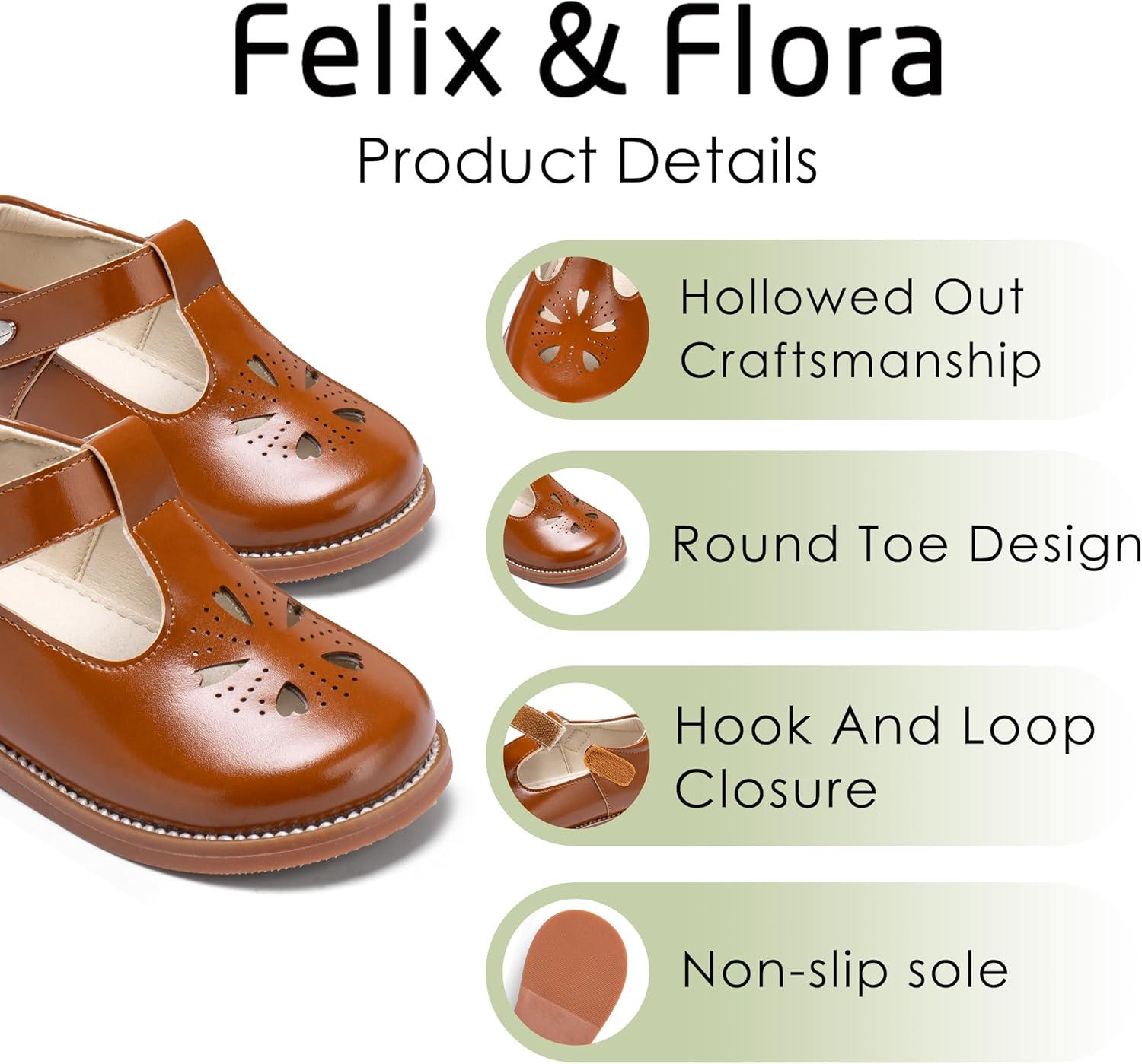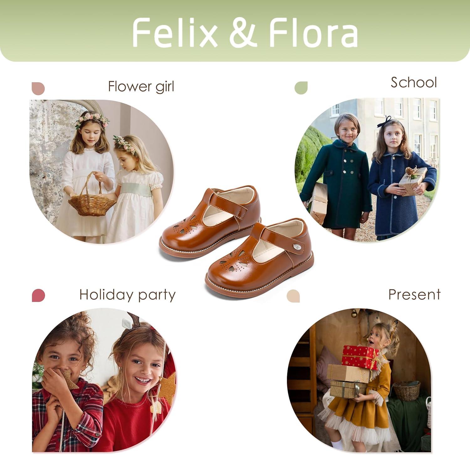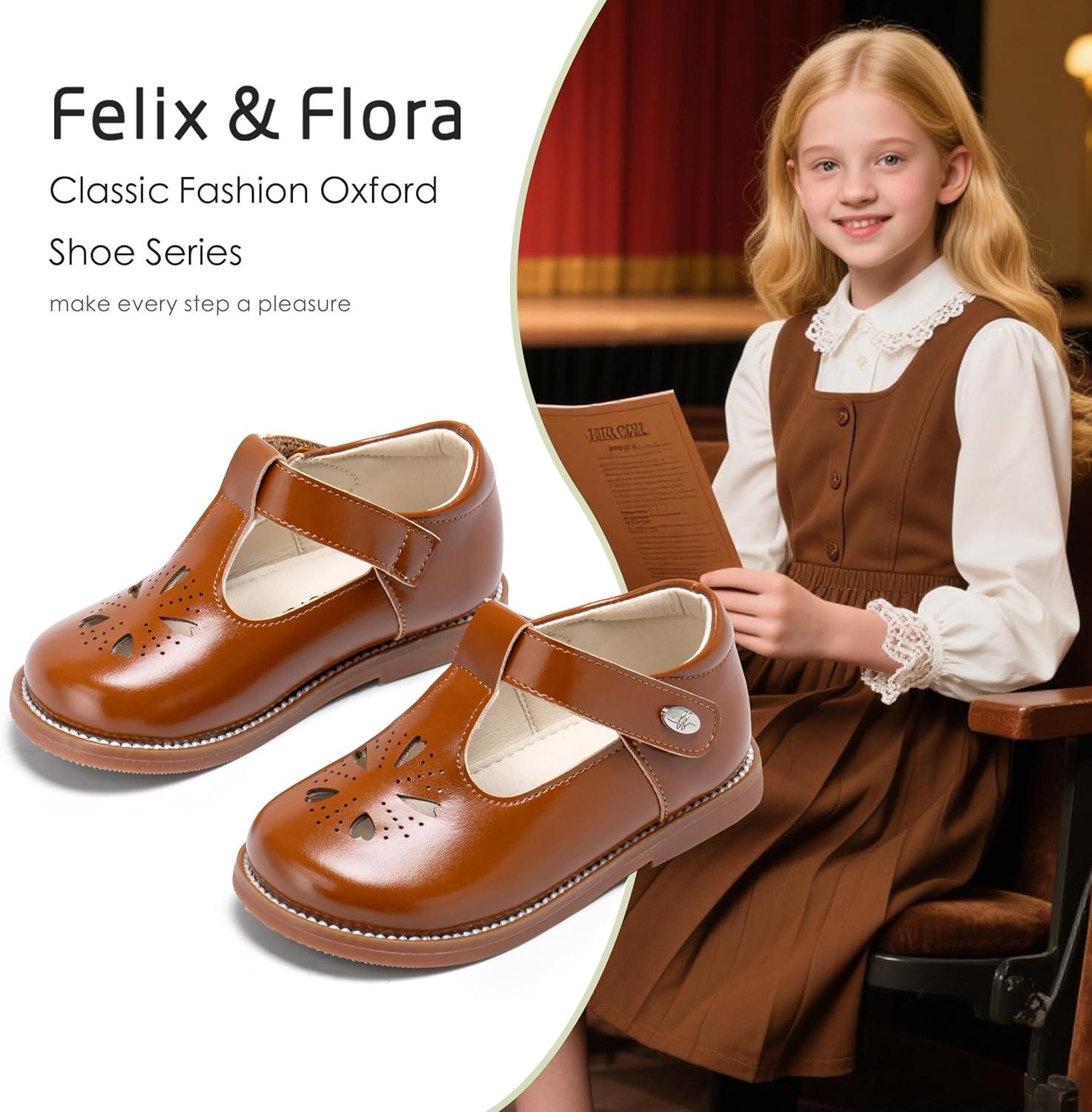 Felix & Flora Toddler Girl Oxford Dress Shoes – Mary Jane Flats for Little Girl Party School Shoes.(B428-brown)