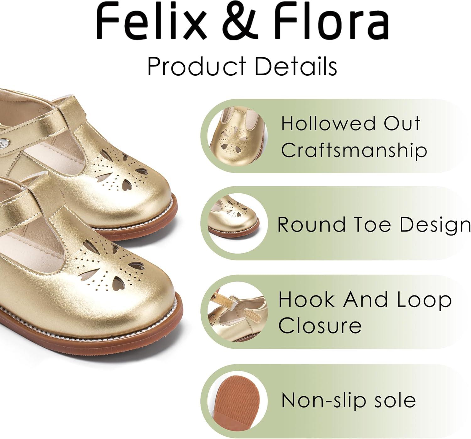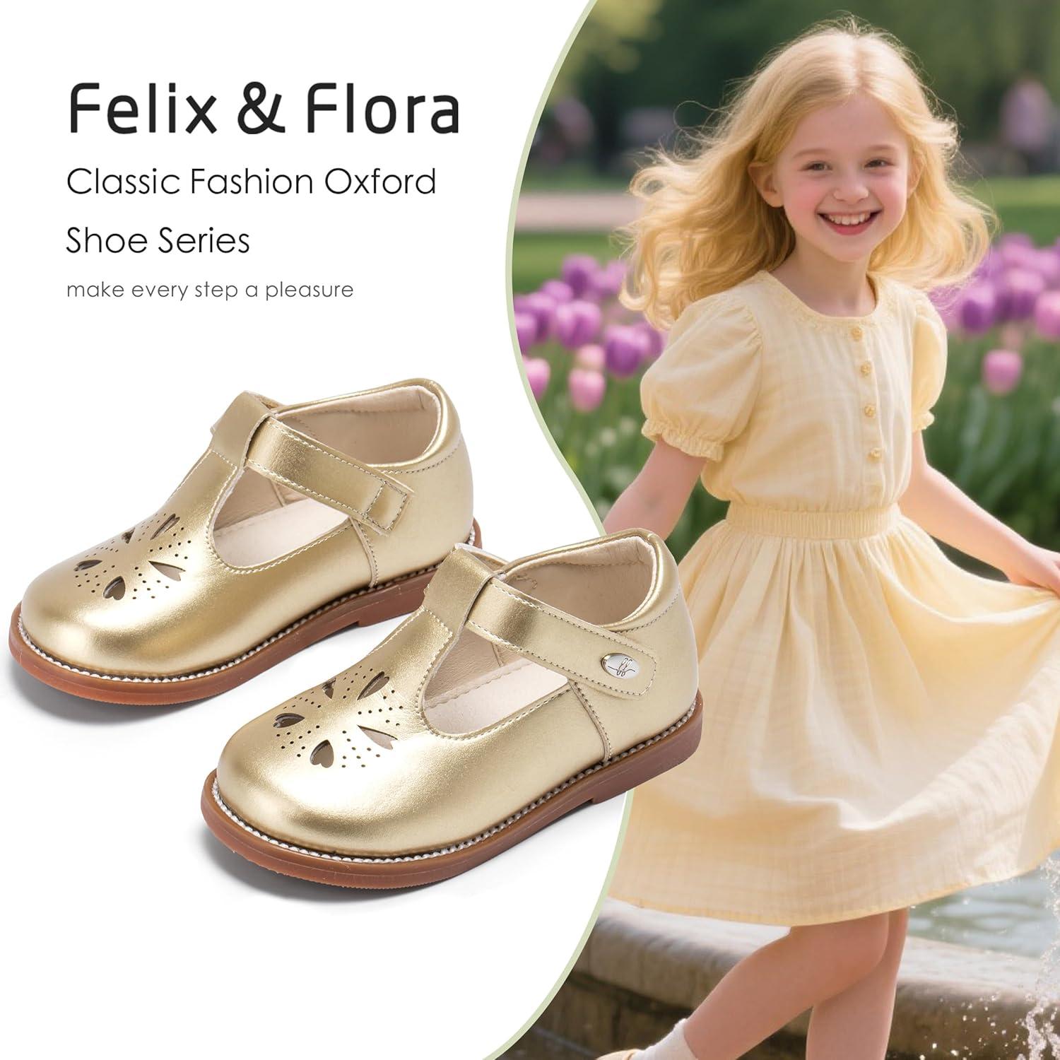 Felix & Flora Toddler Girl Oxford Dress Shoes – Mary Jane Flats for Little Girl Party School Shoes.(B428-gold)