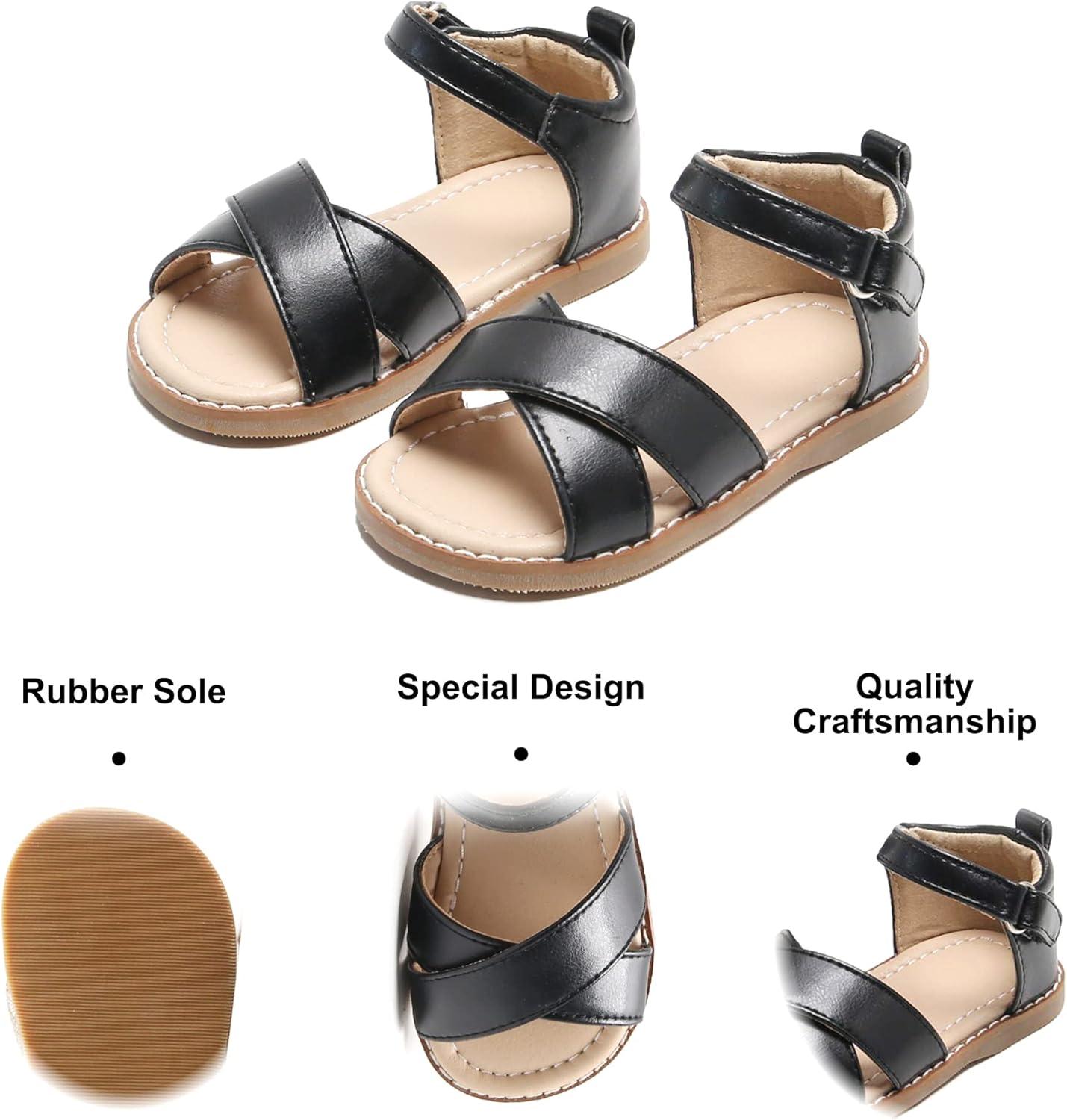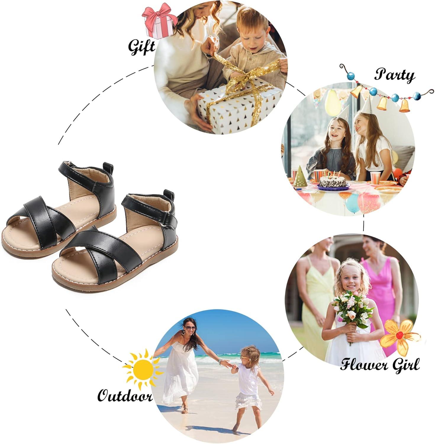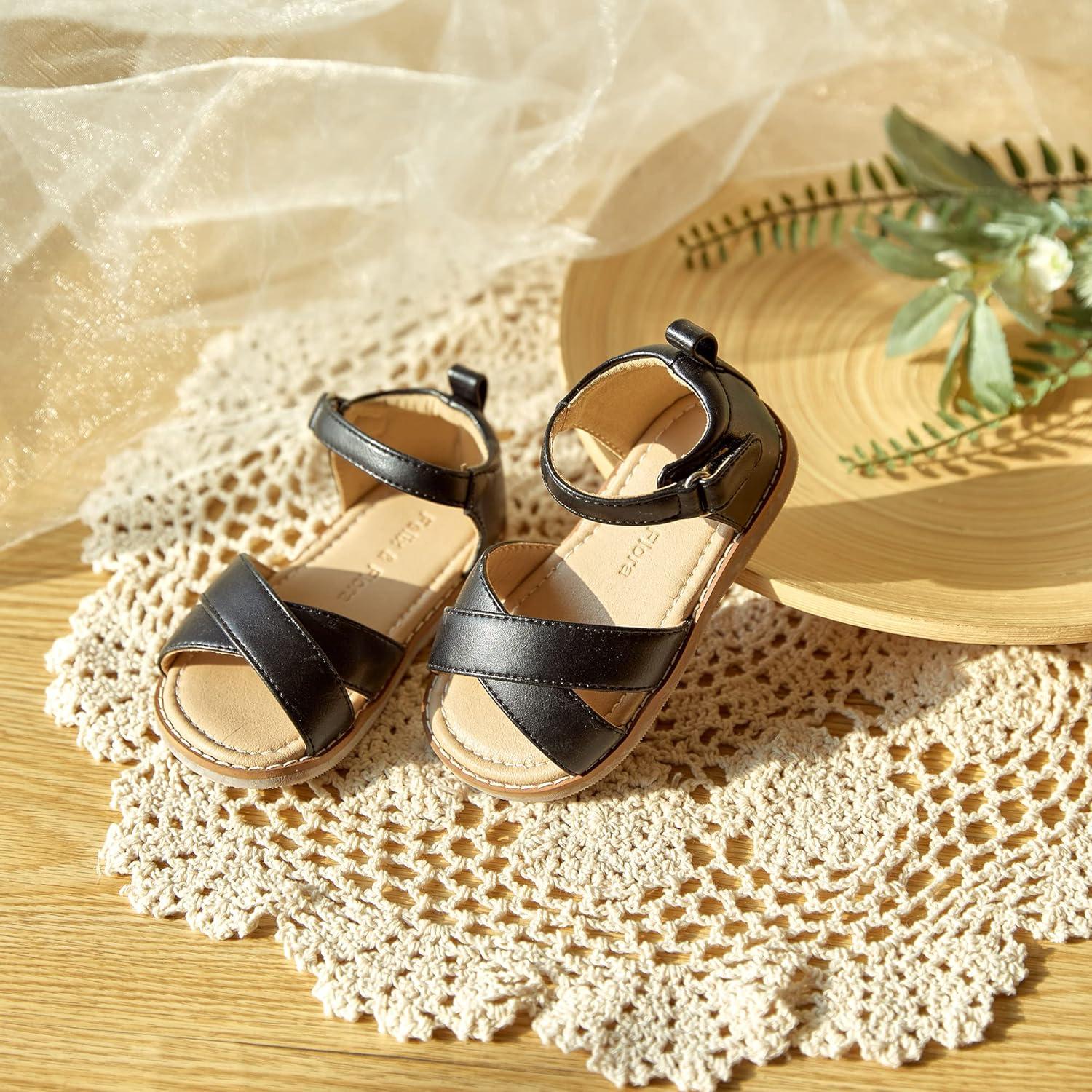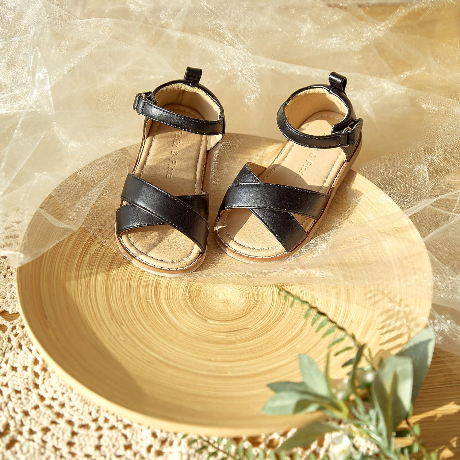 Felix & Flora Toddler Girl Sandals – Flower Girl Dress Shoes Open Toe Little Kid Summer Flats(Bc205 Black)