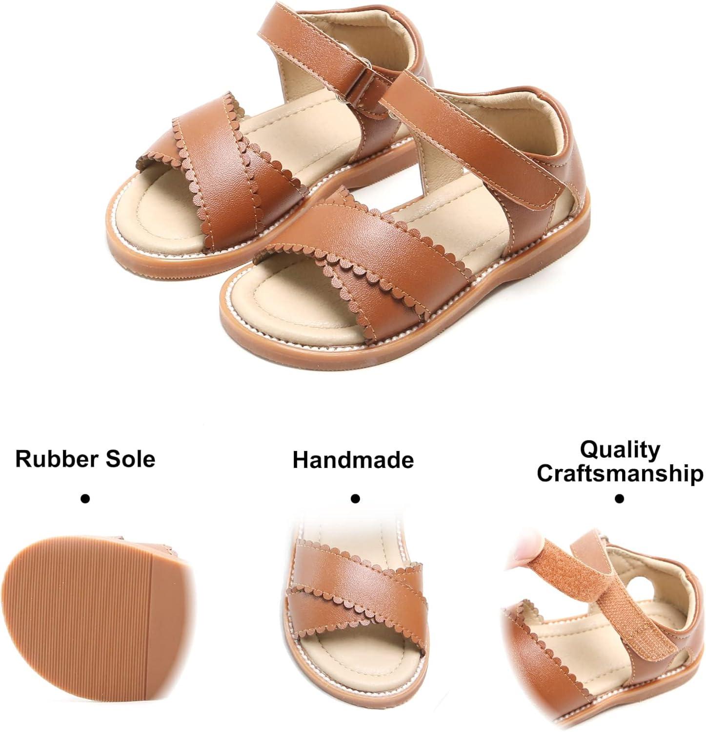 Felix & Flora Toddler Girl Sandals -Flower Girl Dress Shoes Open Toe Little Kid Summer Flats(Bc212-oxford Brown)