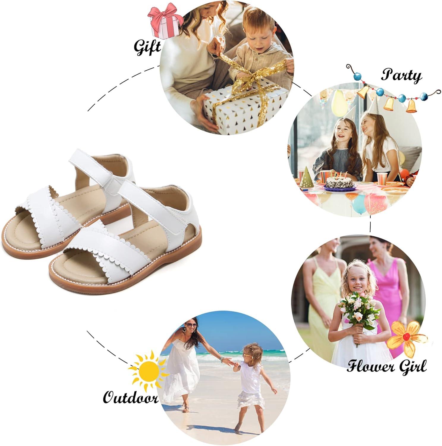 Felix & Flora Toddler Girl Sandals -Flower Girl Dress Shoes Open Toe Little Kid Summer Flats(Bc212-white)