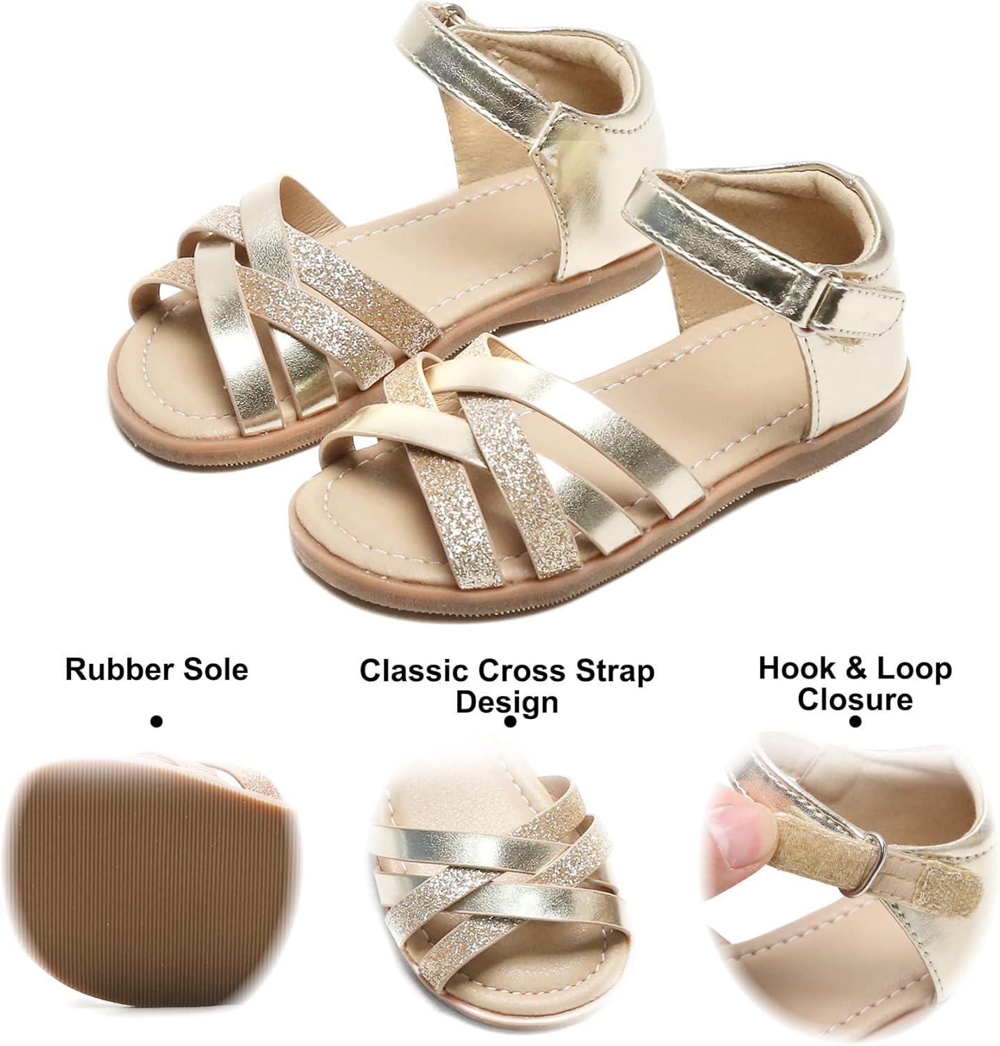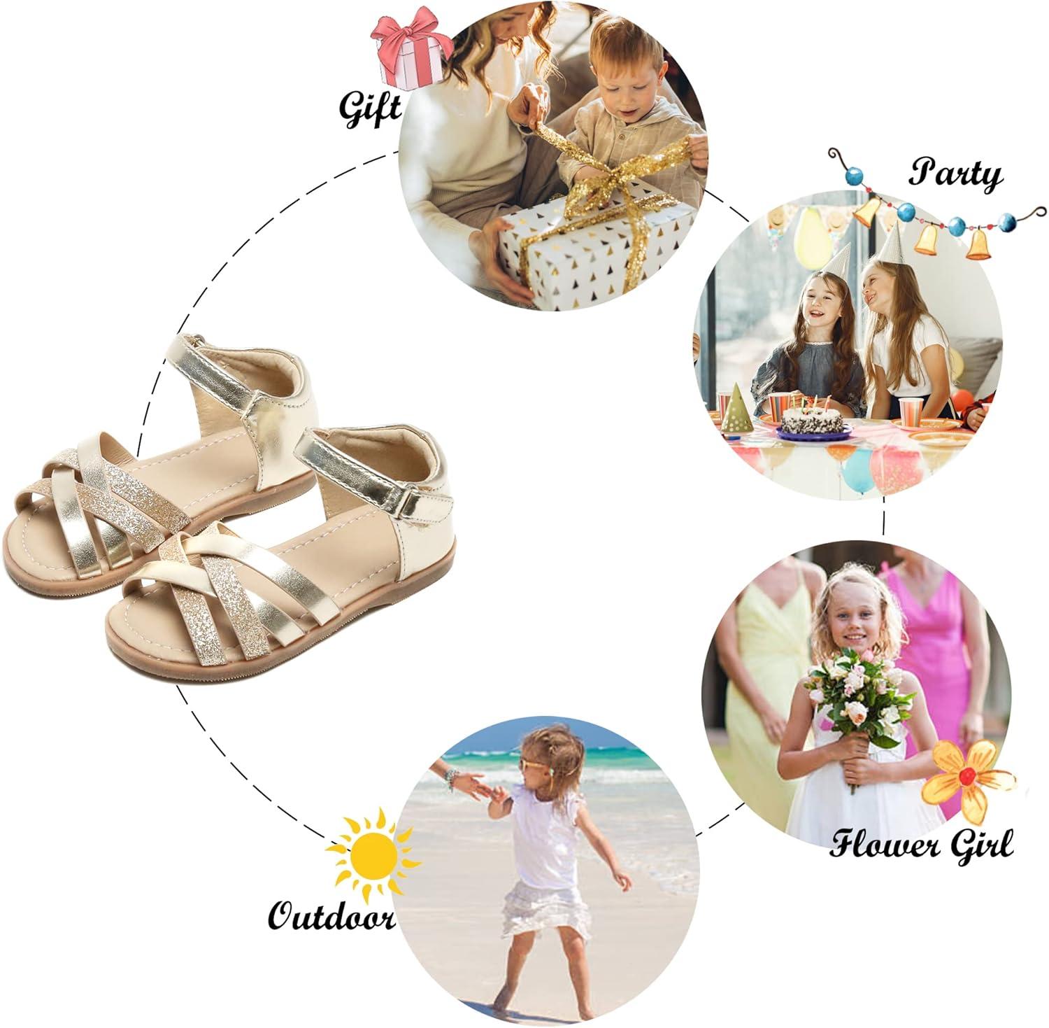 Felix & Flora Toddler Girl Sandals – Flower Girl Dress Shoes Open Toe Little Kid Summer Flats(Bc214-gold)