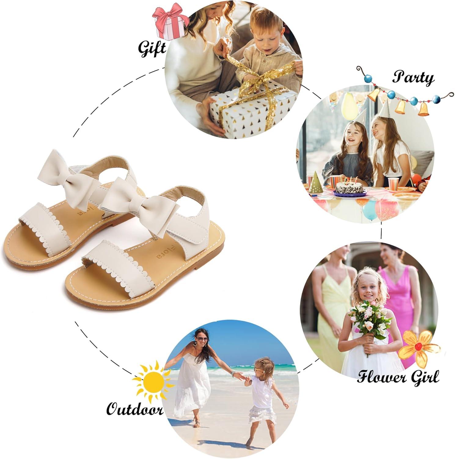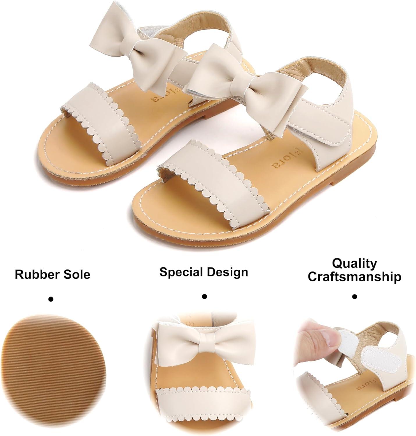 Felix & Flora Toddler Girl Sandals – Flower Girl Dress Shoes Open Toe Little Kid Summer Flats(Bc216-beige)