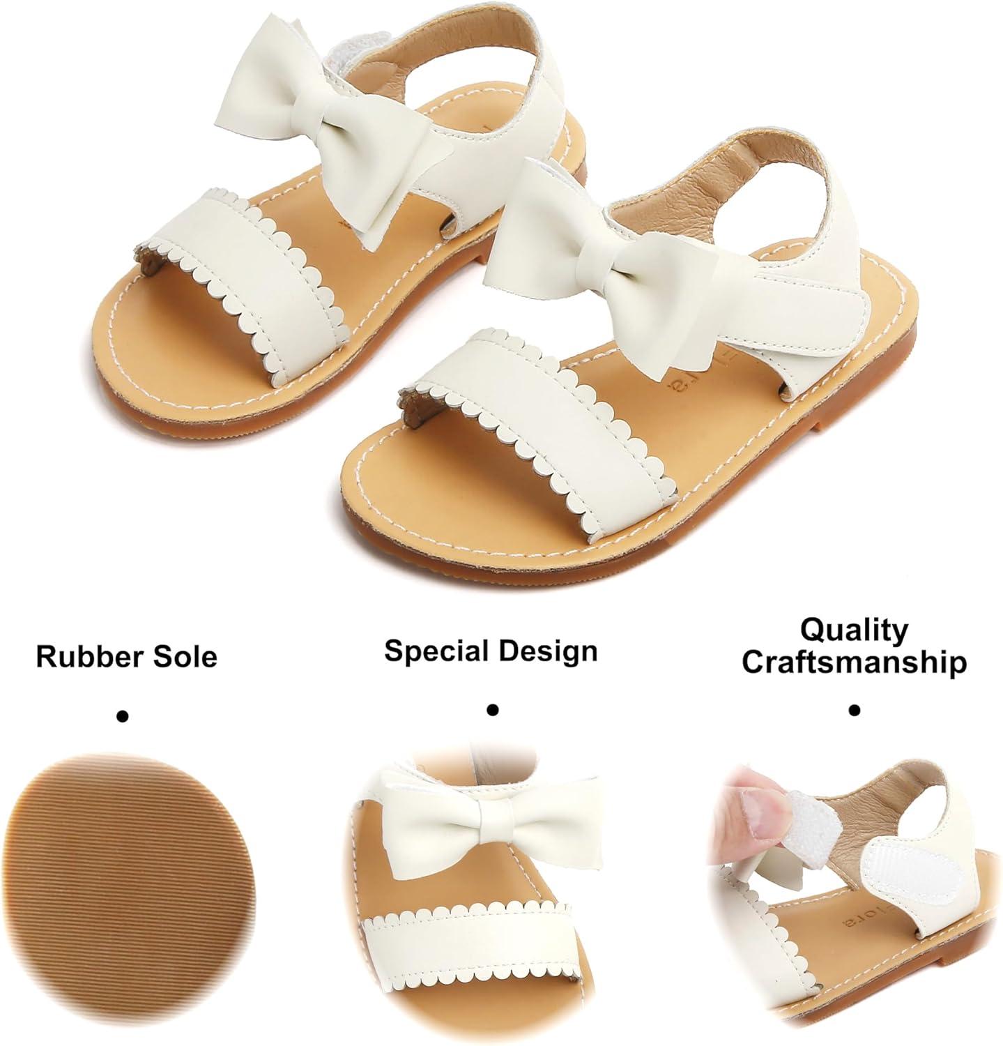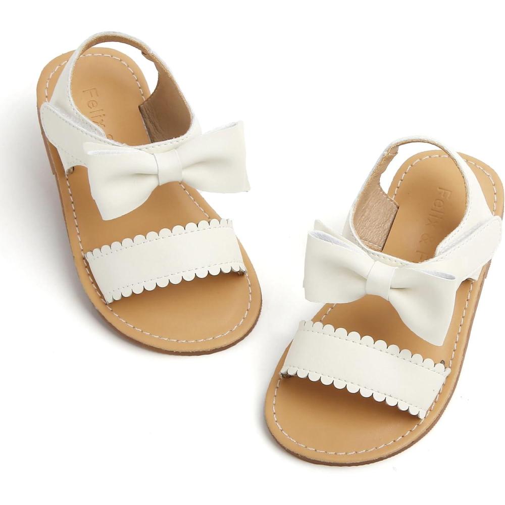 Felix & Flora Toddler Girl Sandals – Flower Girl Dress Shoes Open Toe Little Kid Summer Flats(Bc216-ivory White)