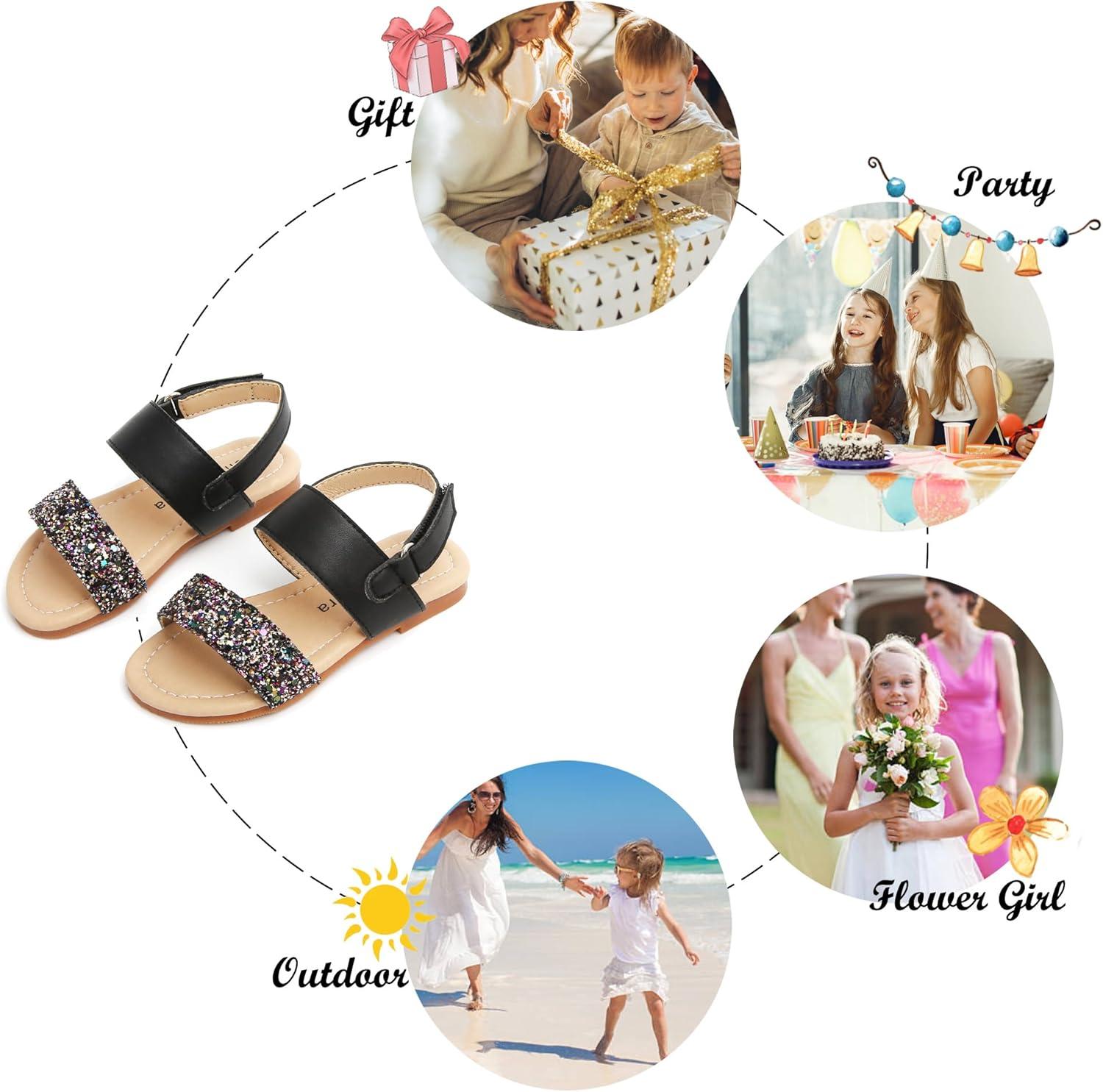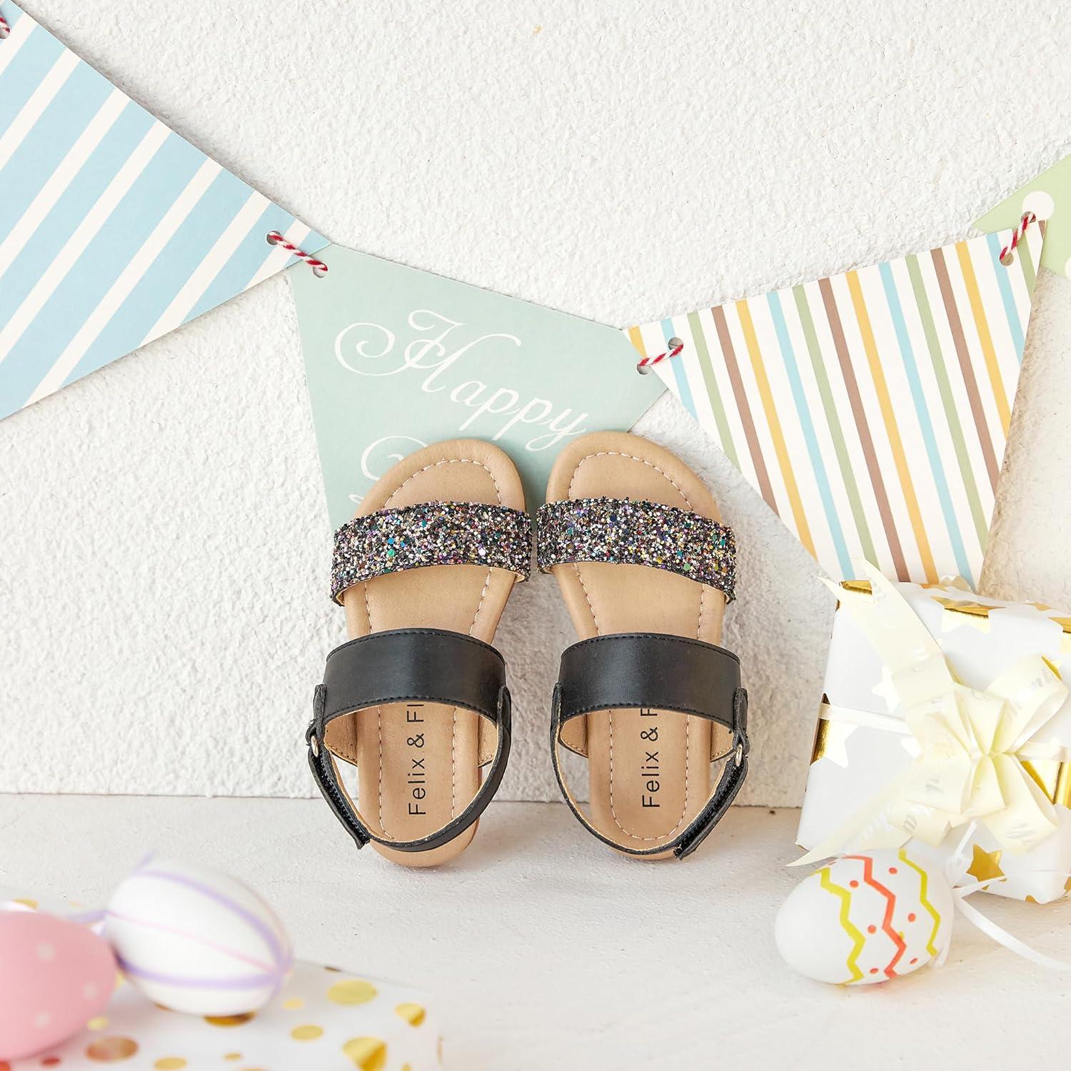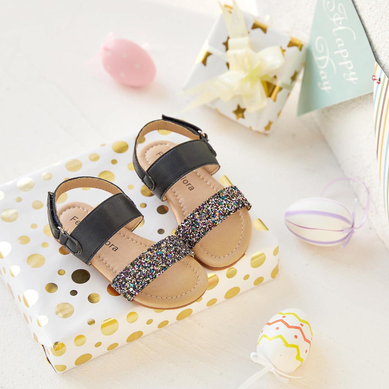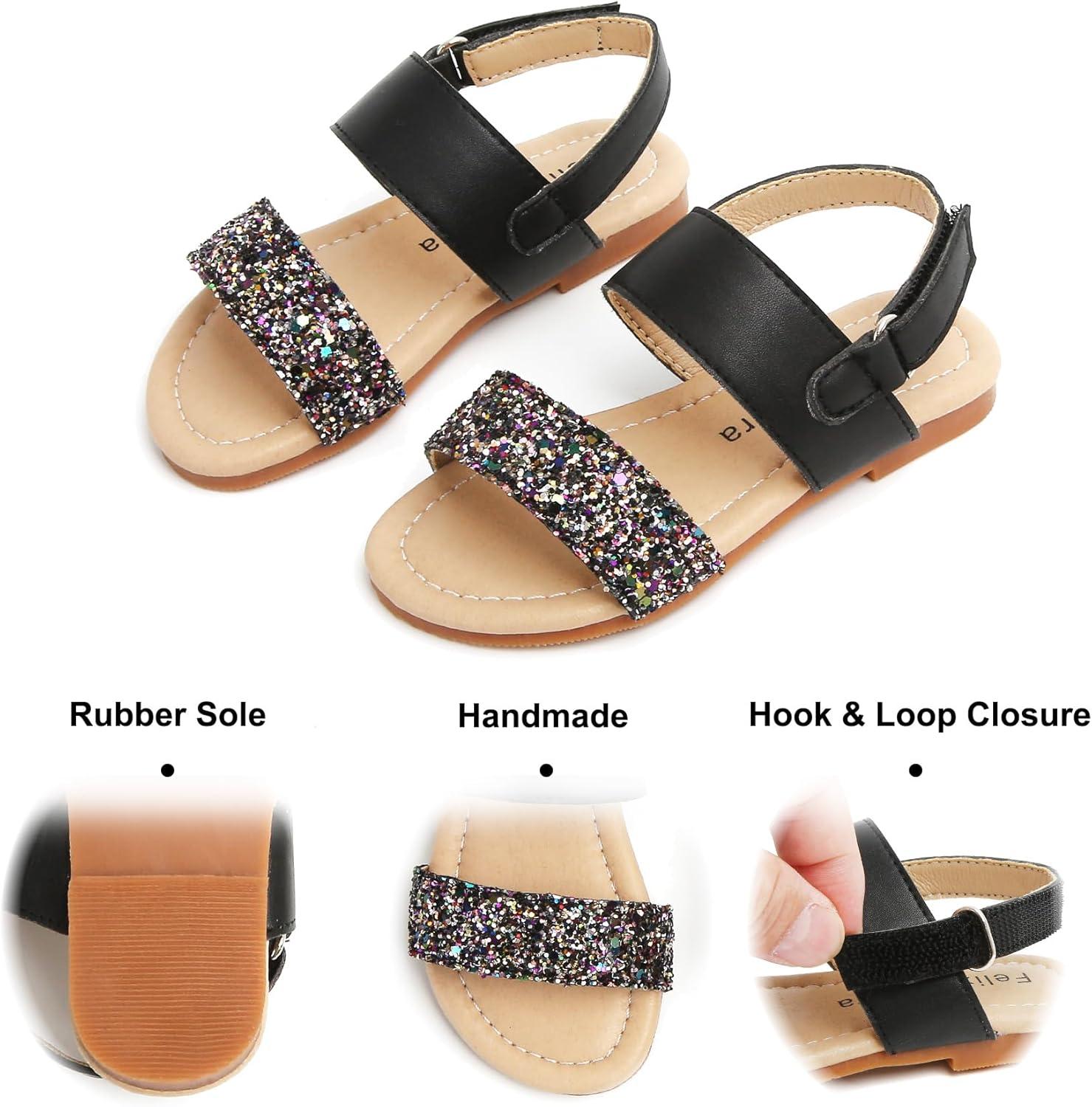 Felix & Flora Toddler Girl Sandals – Flower Girl Dress Shoes Open Toe Little Kid Summer Flats(Bc251-glitter Black)