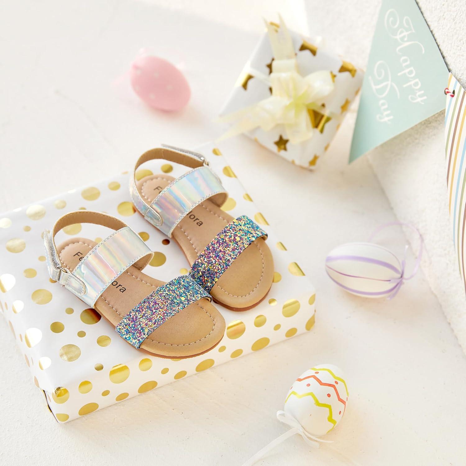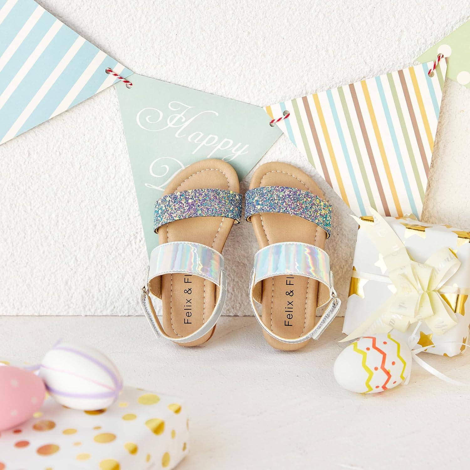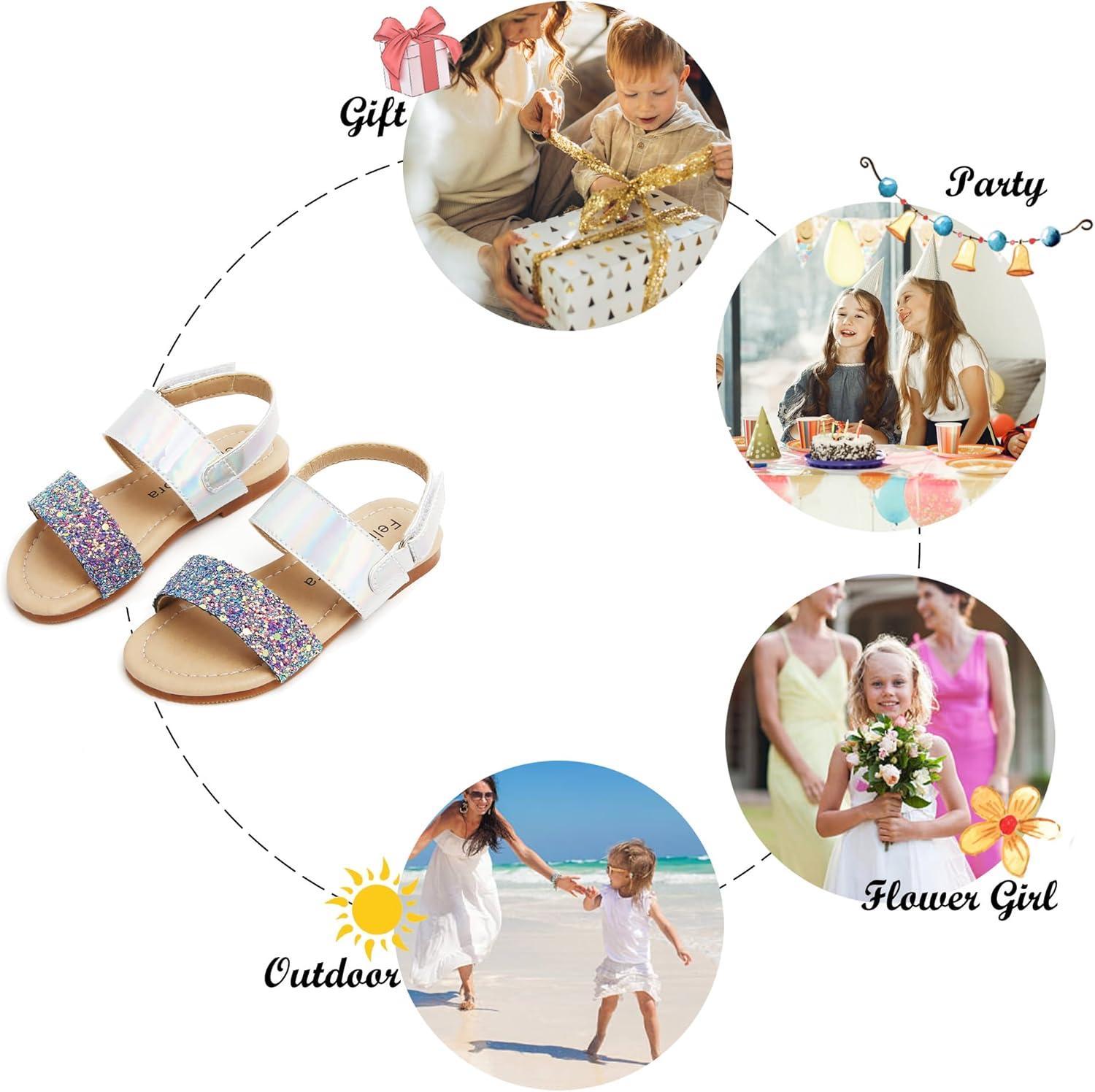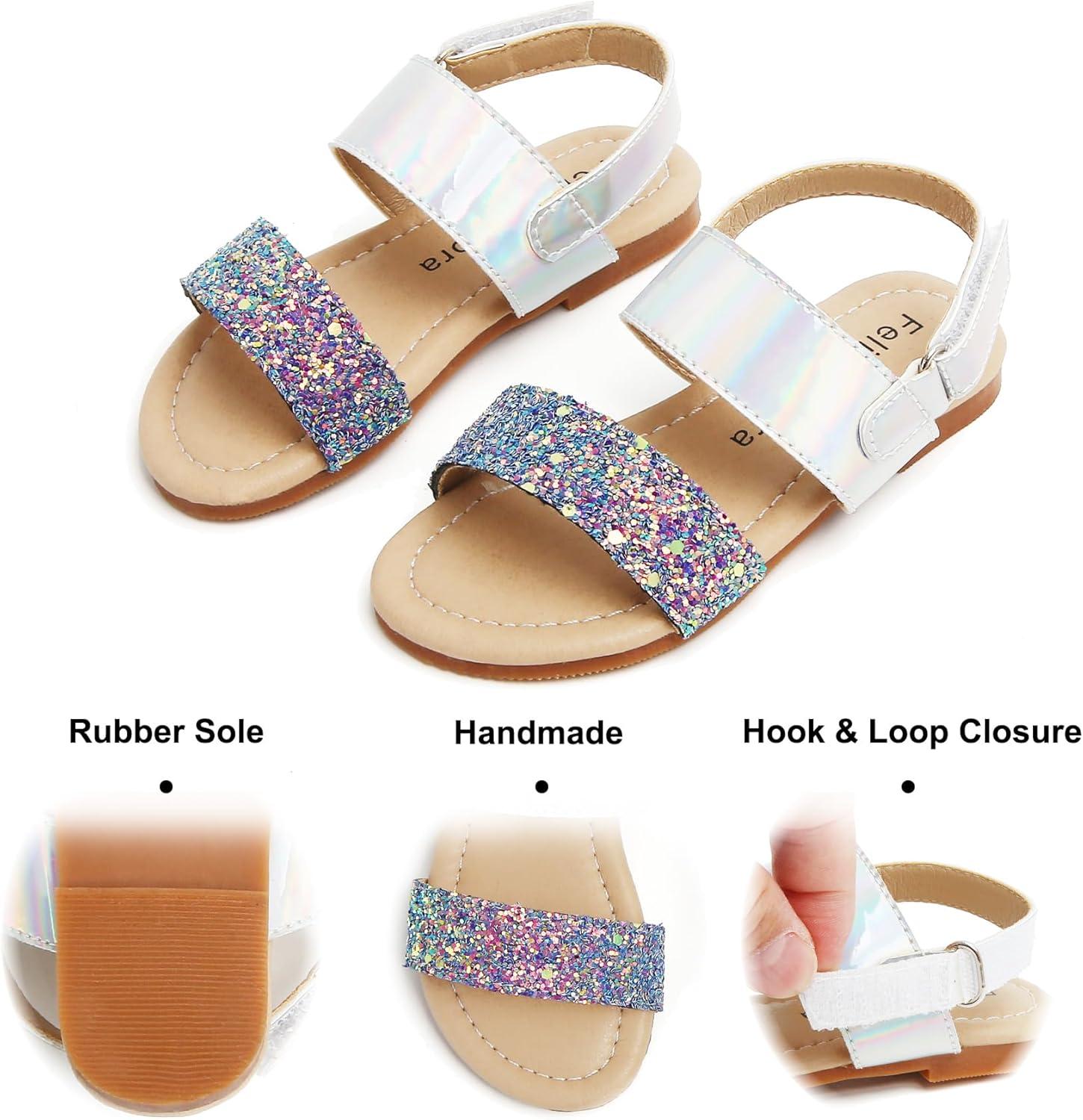 Felix & Flora Toddler Girl Sandals – Flower Girl Dress Shoes Open Toe Little Kid Summer Flats(Bc251-glitter Purple)