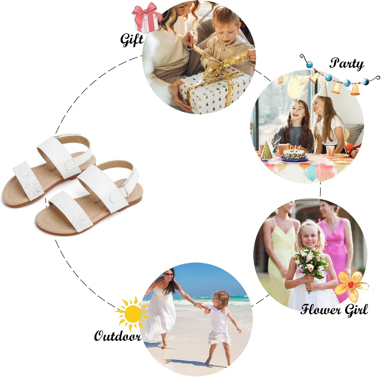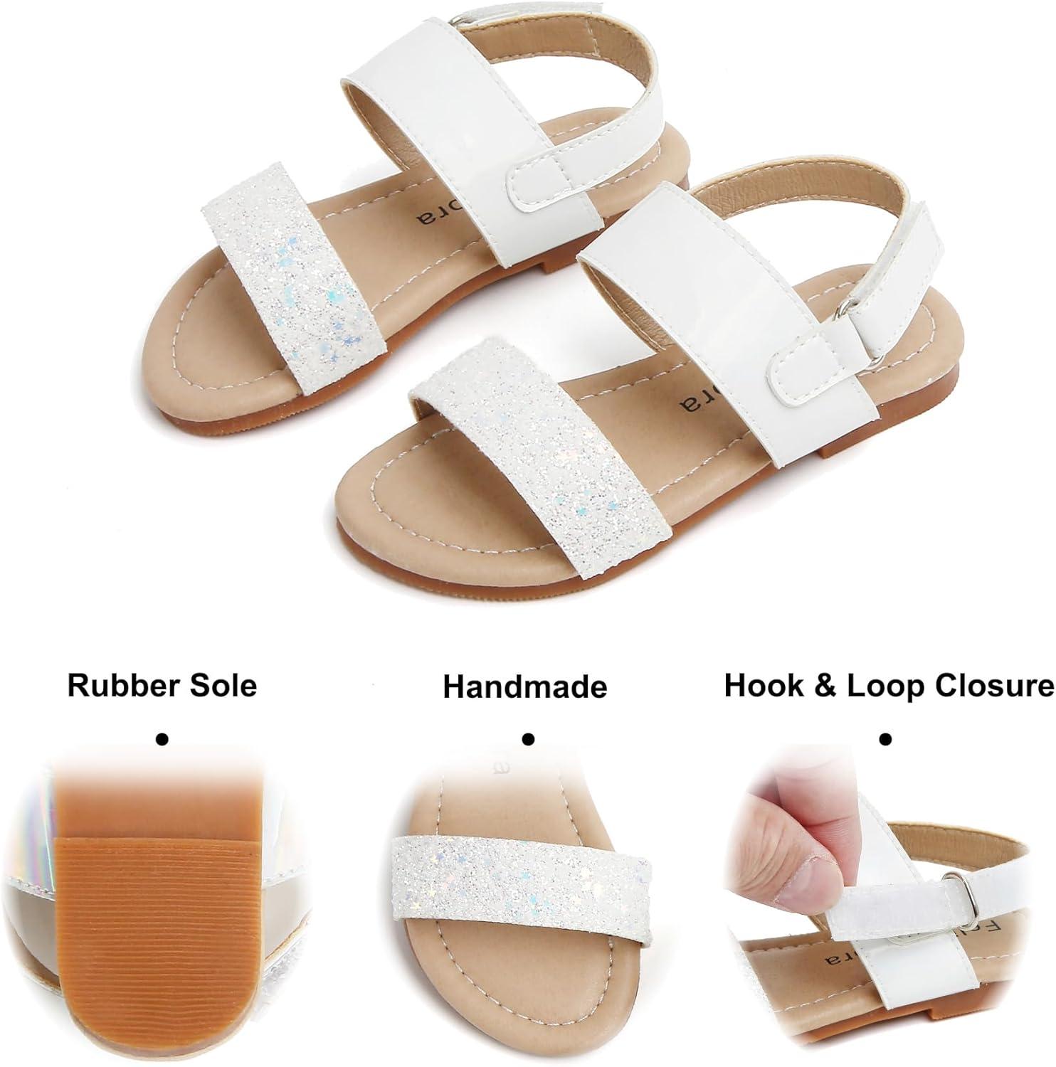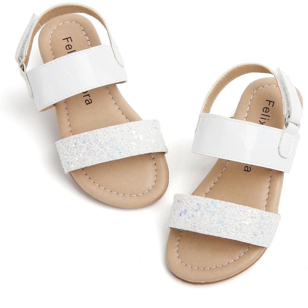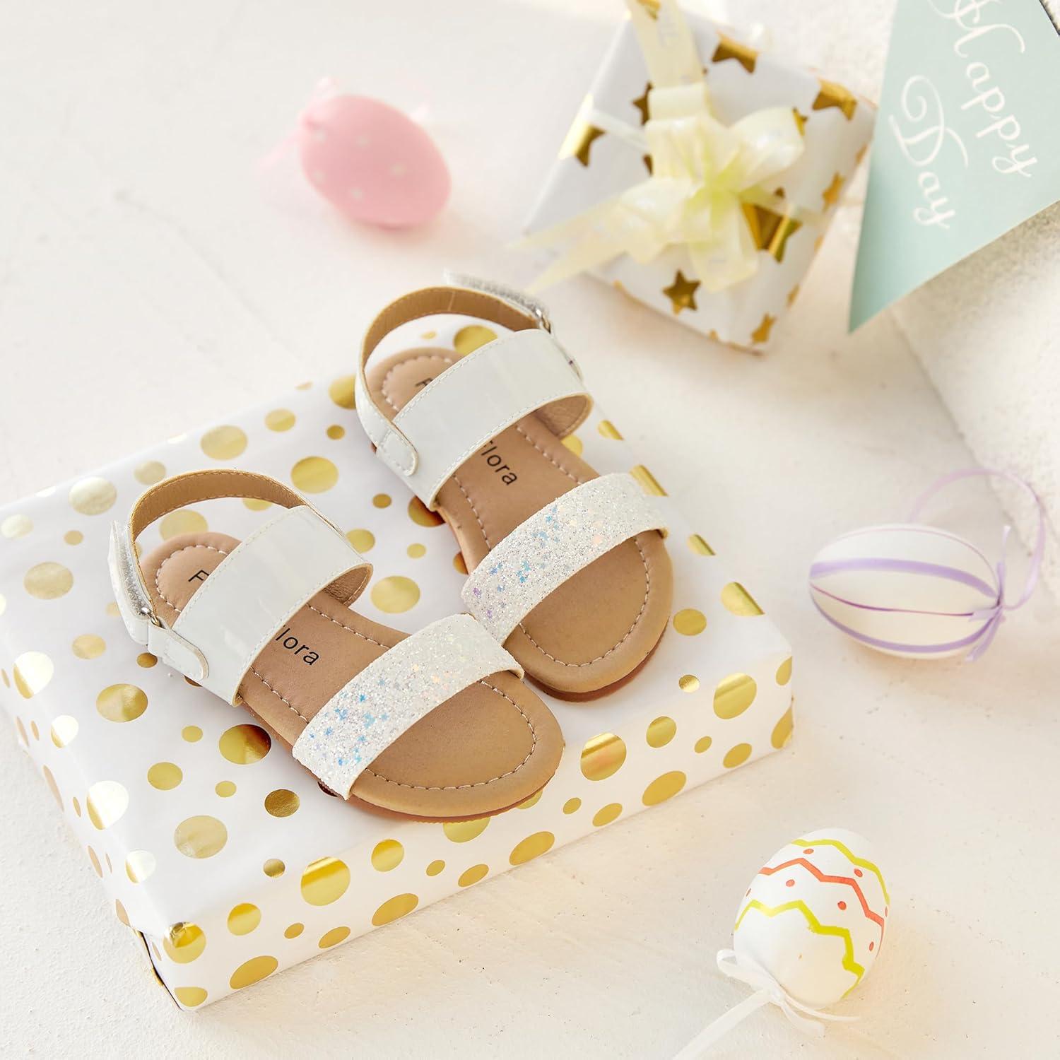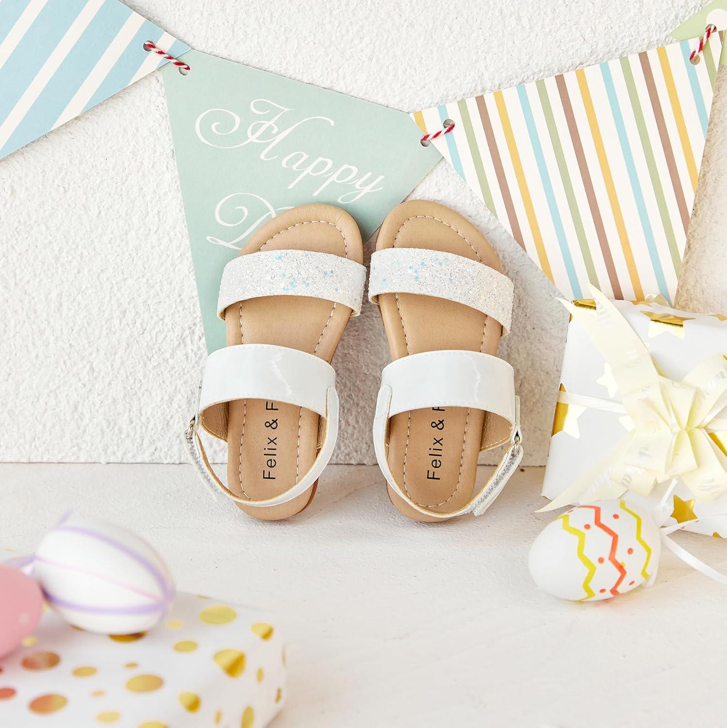 Felix & Flora Toddler Girl Sandals – Flower Girl Dress Shoes Open Toe Little Kid Summer Flats(Bc251-multicolor White)
