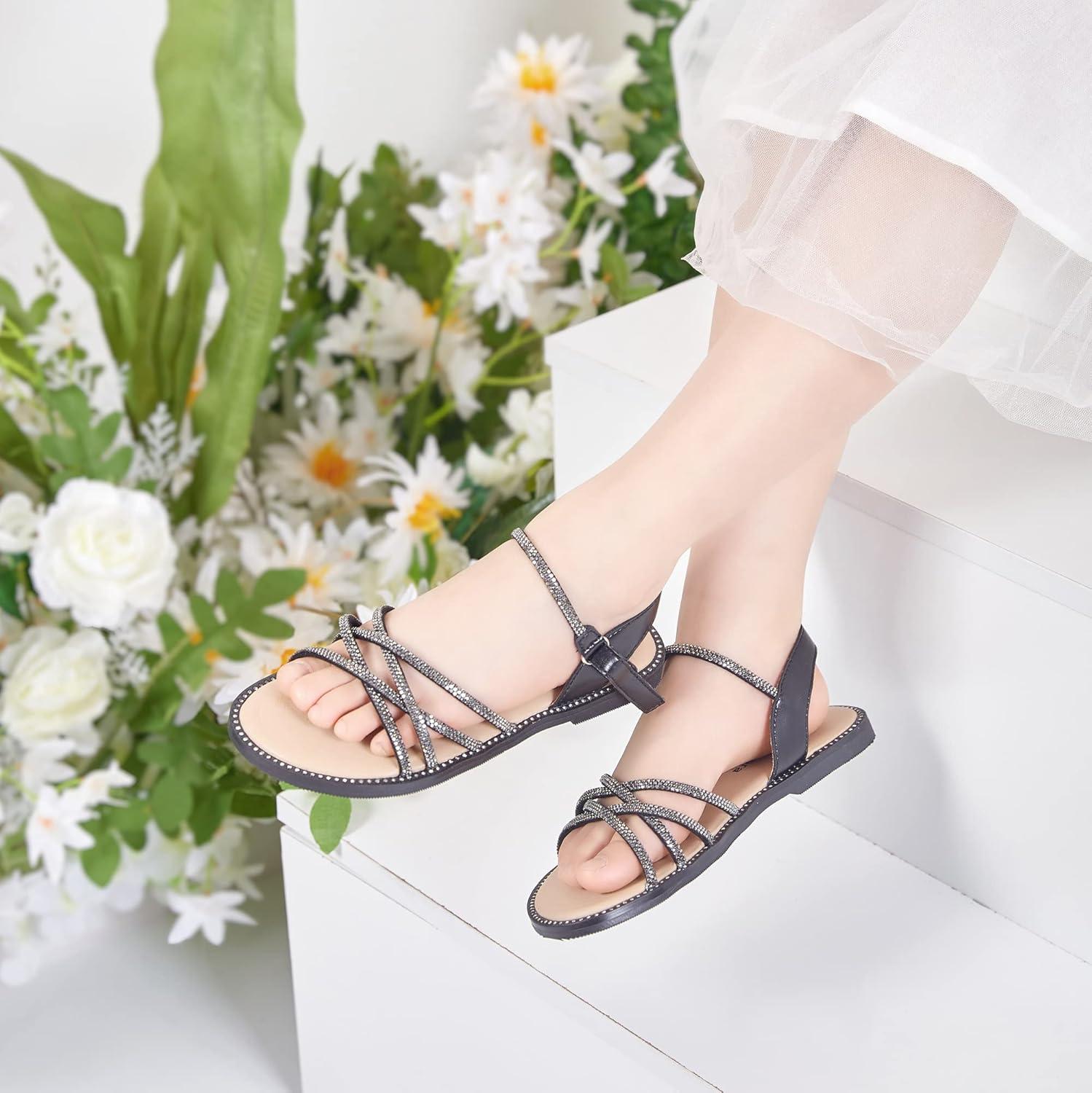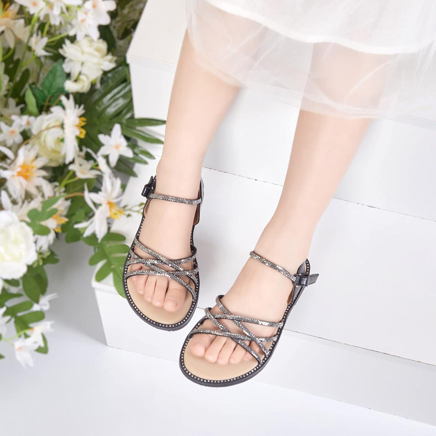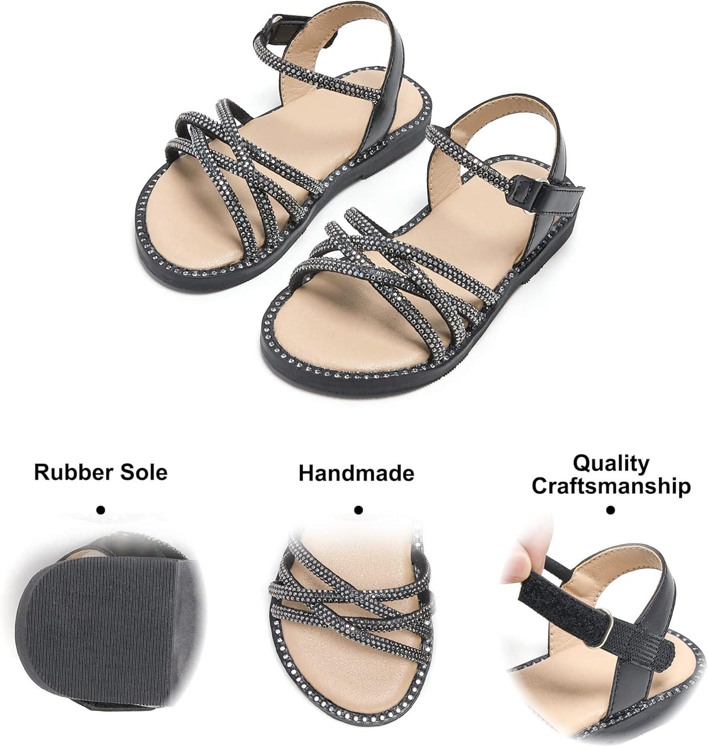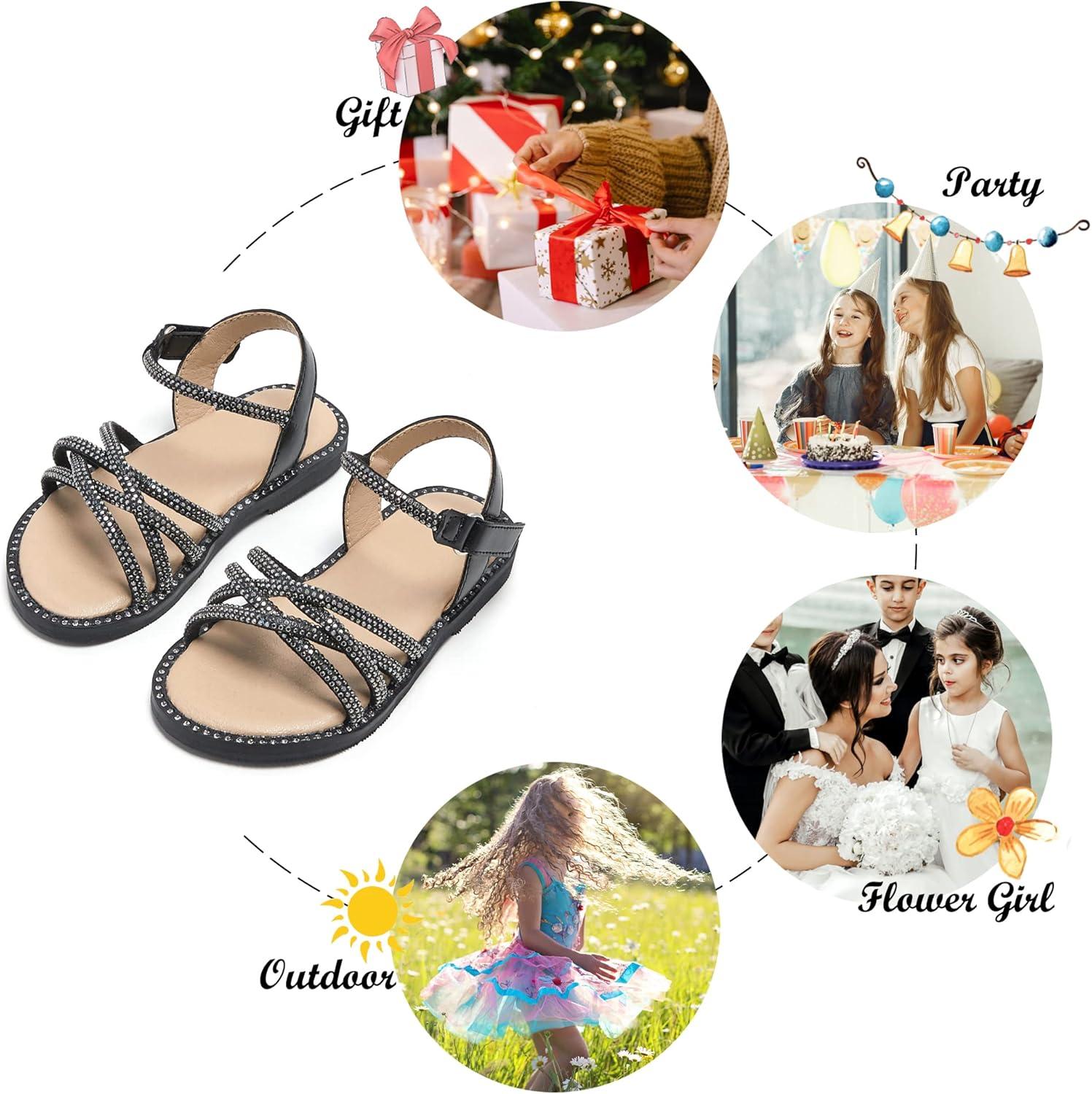 Felix & Flora Toddler Girl Sandals -Flower Girl Dress Shoes Open Toe Little Kid Summer Flats(Bc277-black)