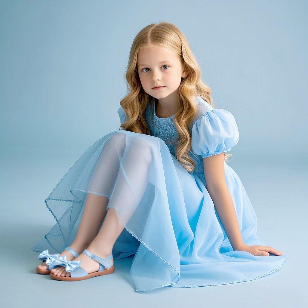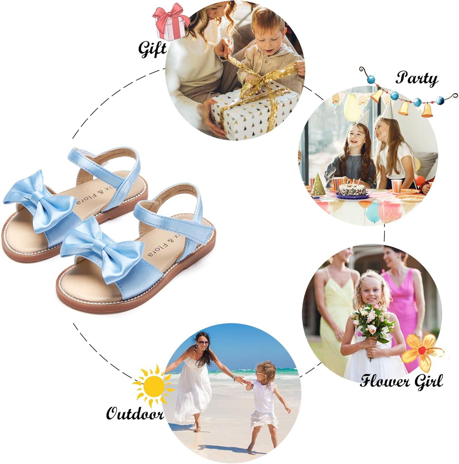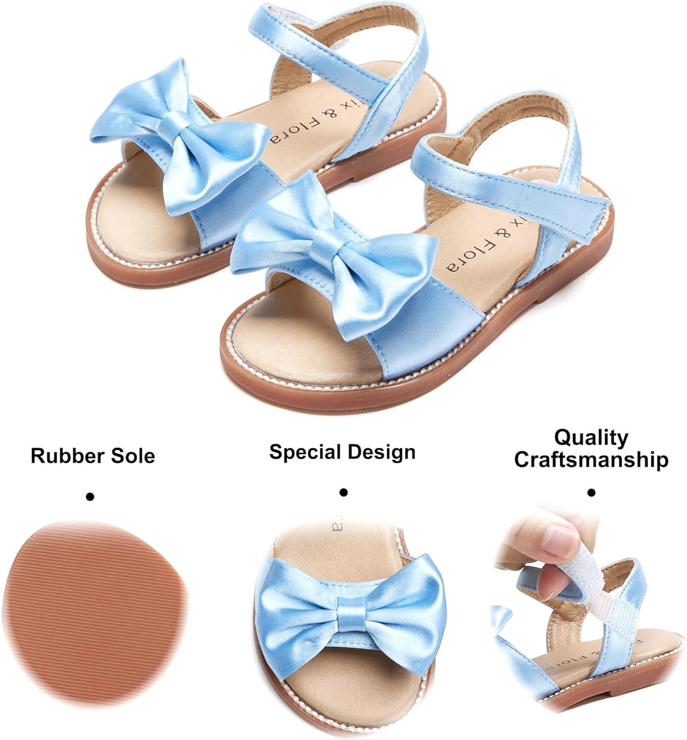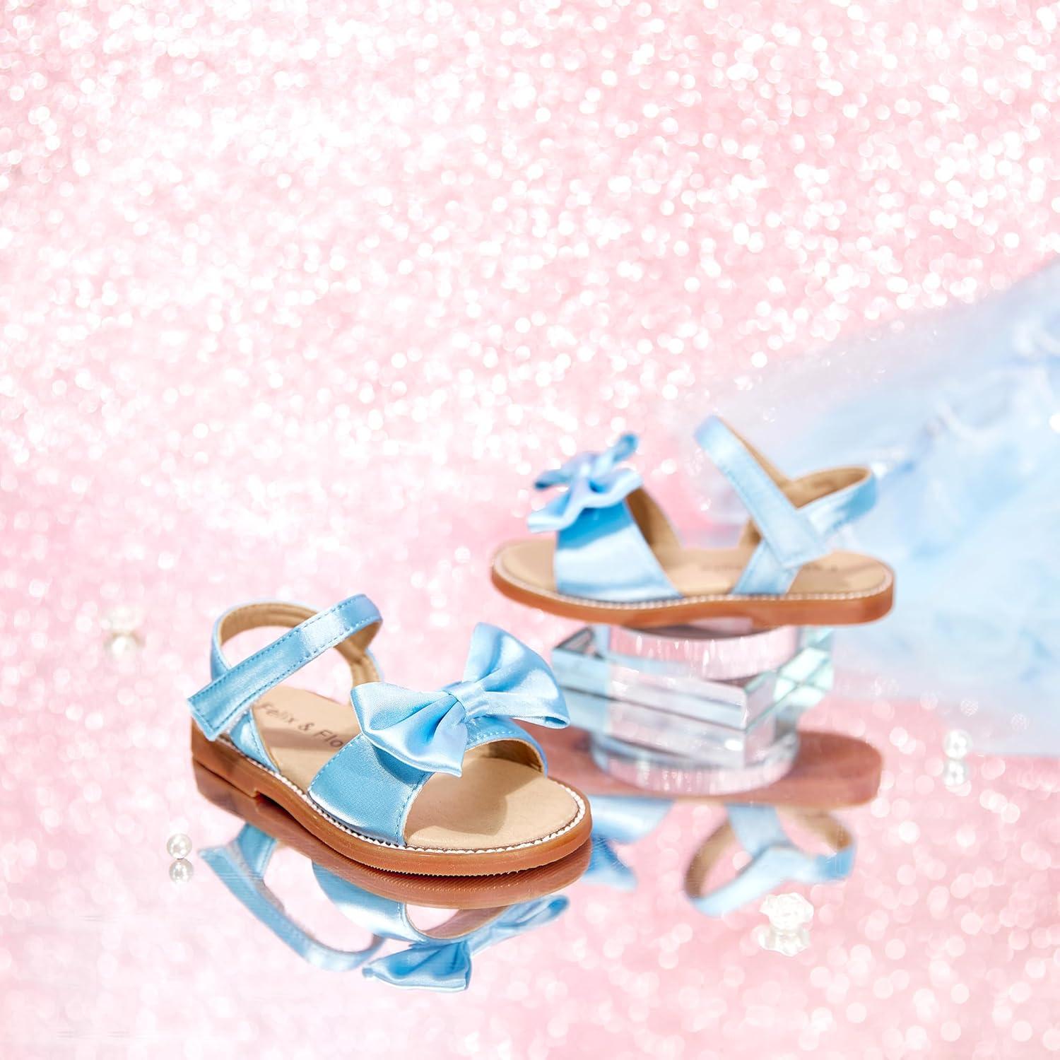 Felix & Flora Toddler Girl Sandals – Flower Girl Dress Shoes Open Toe Little Kid Summer Flats(Bc291-blue)