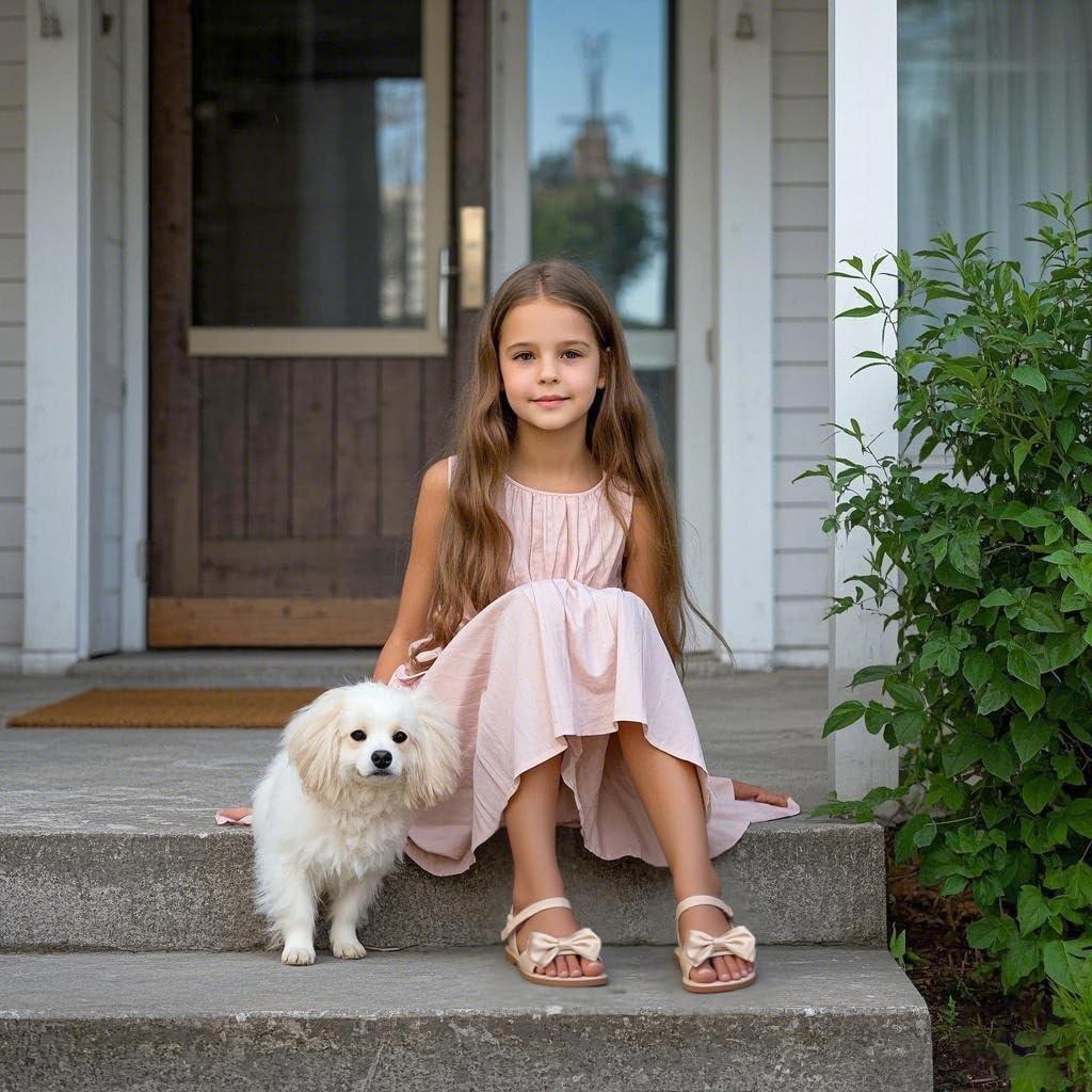 Felix & Flora Toddler Girl Sandals – Flower Girl Dress Shoes Open Toe Little Kid Summer Flats(Bc291-dark Nude)