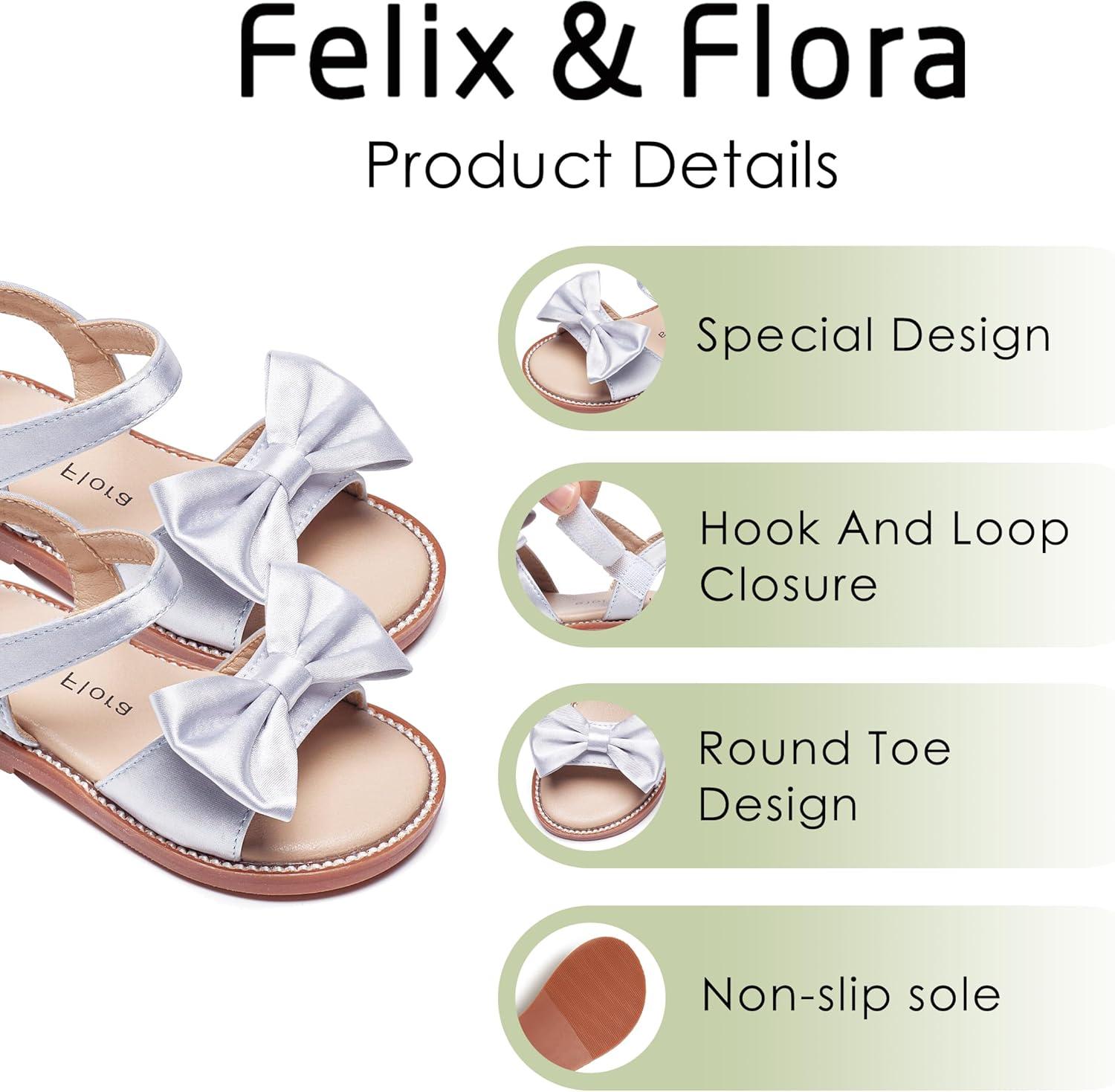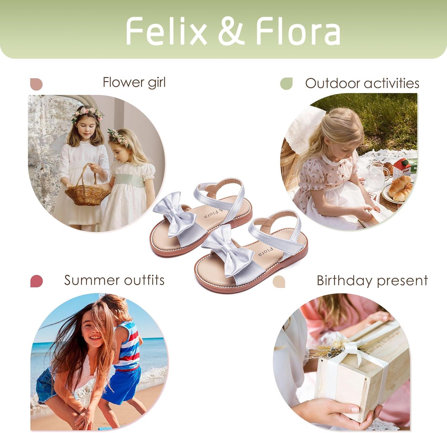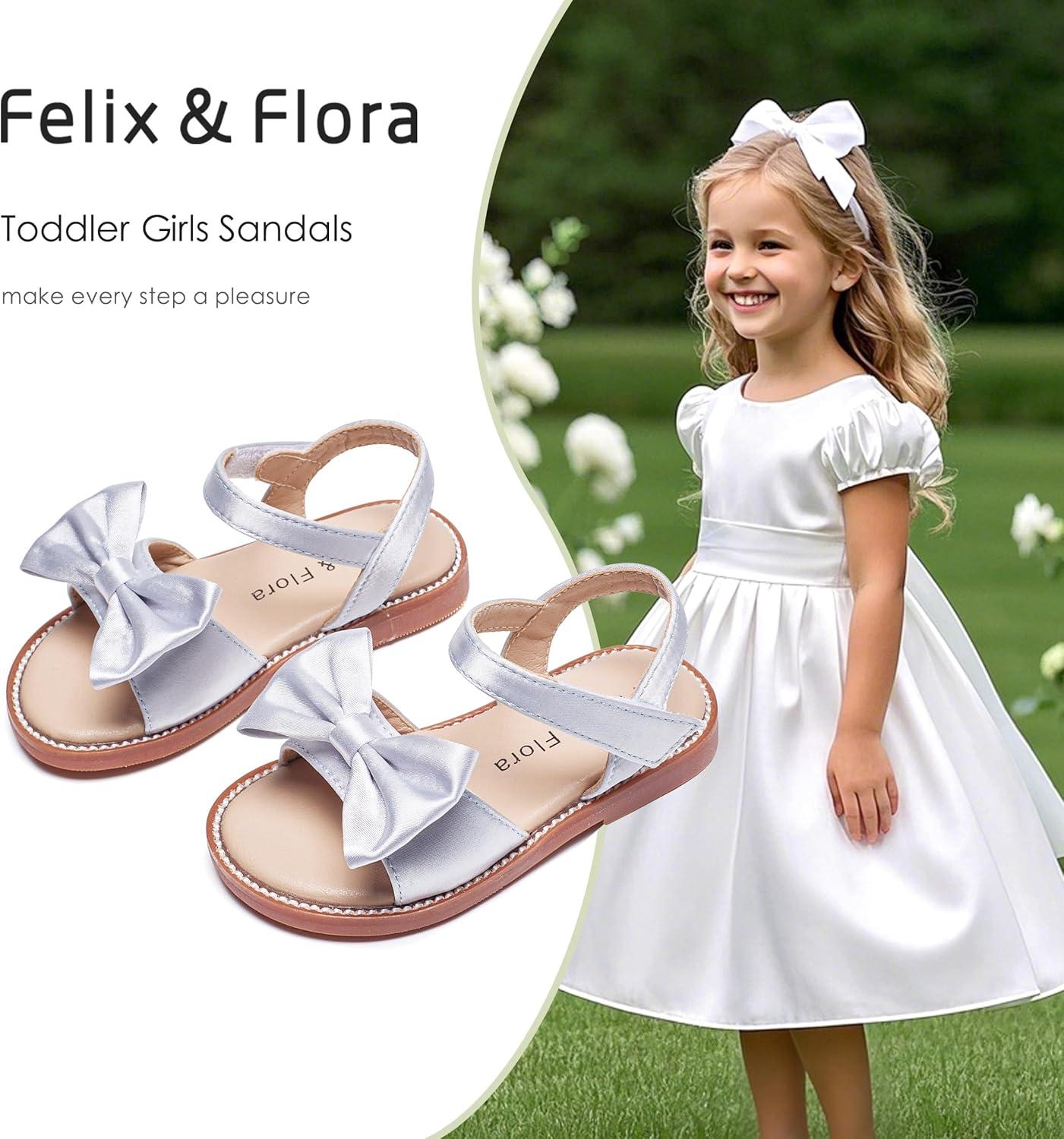 Felix & Flora Toddler Girl Sandals – Flower Girl Dress Shoes Open Toe Little Kid Summer Flats(Bc291-grey)