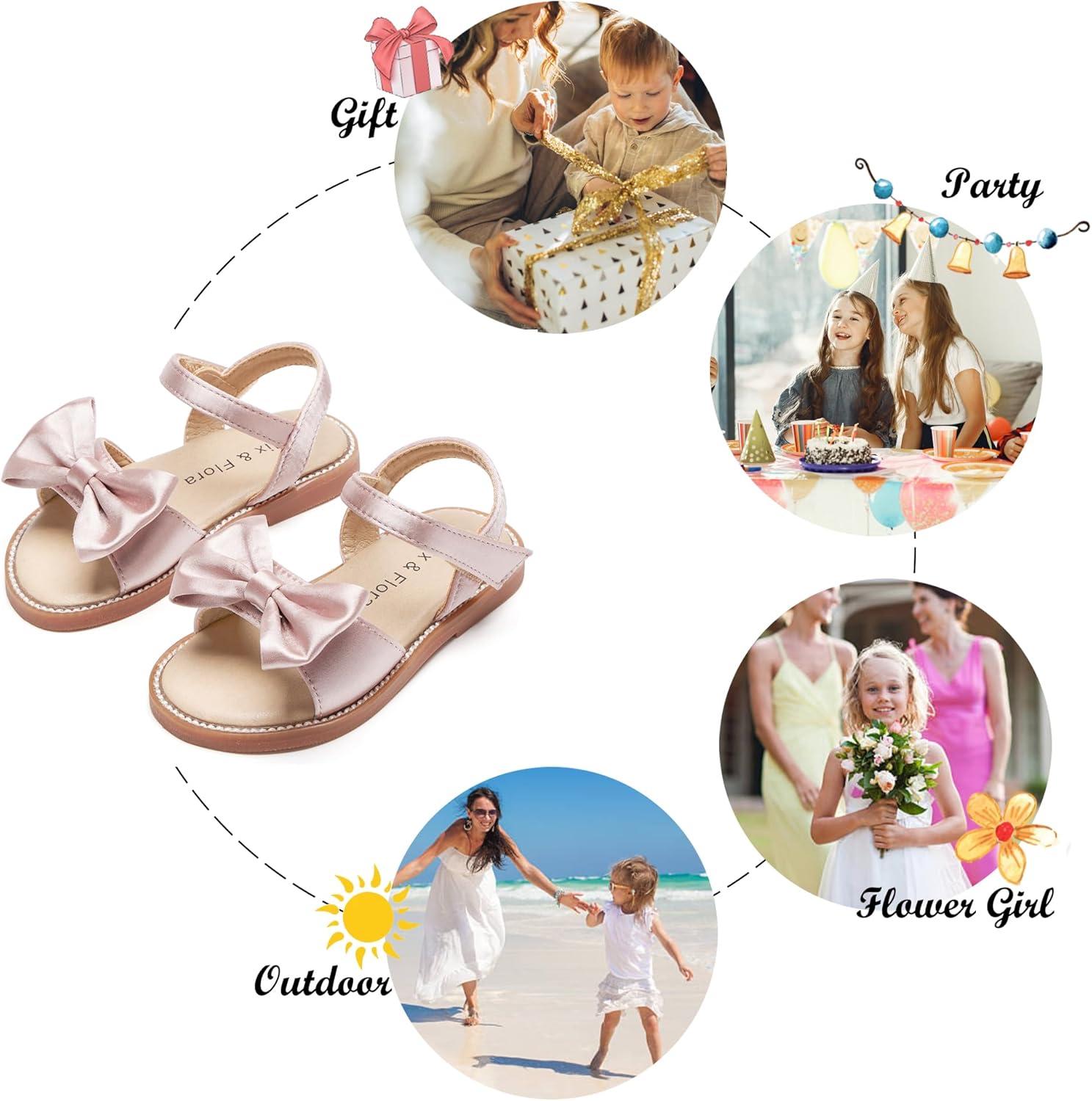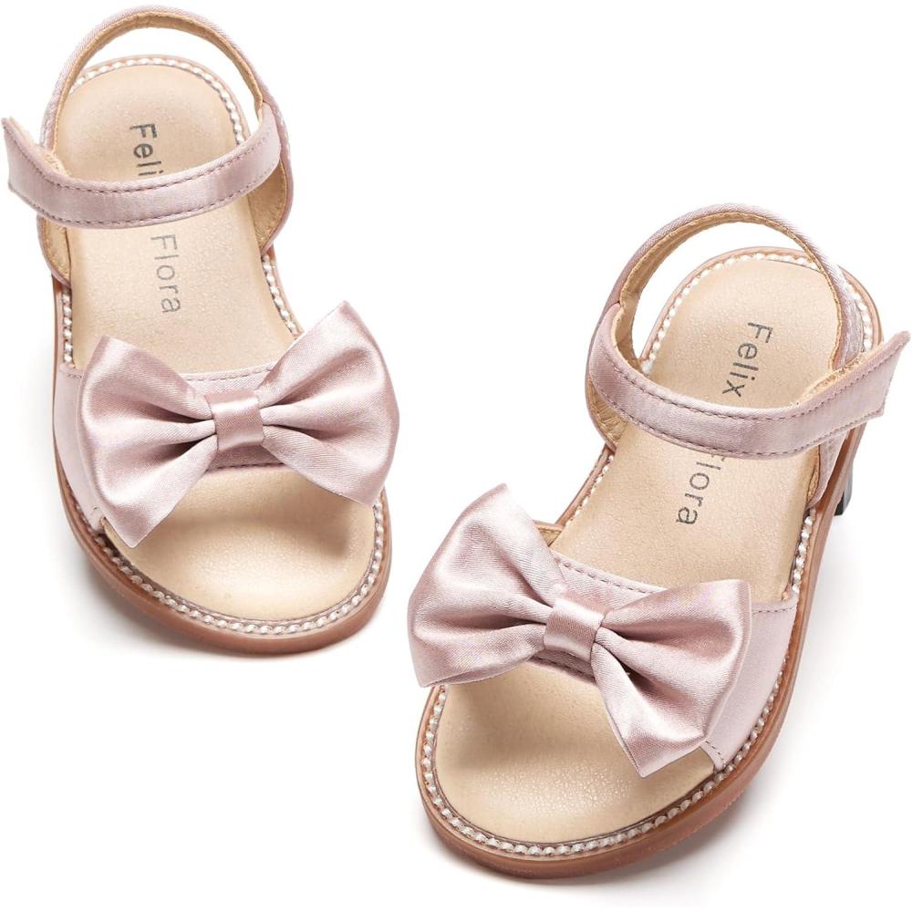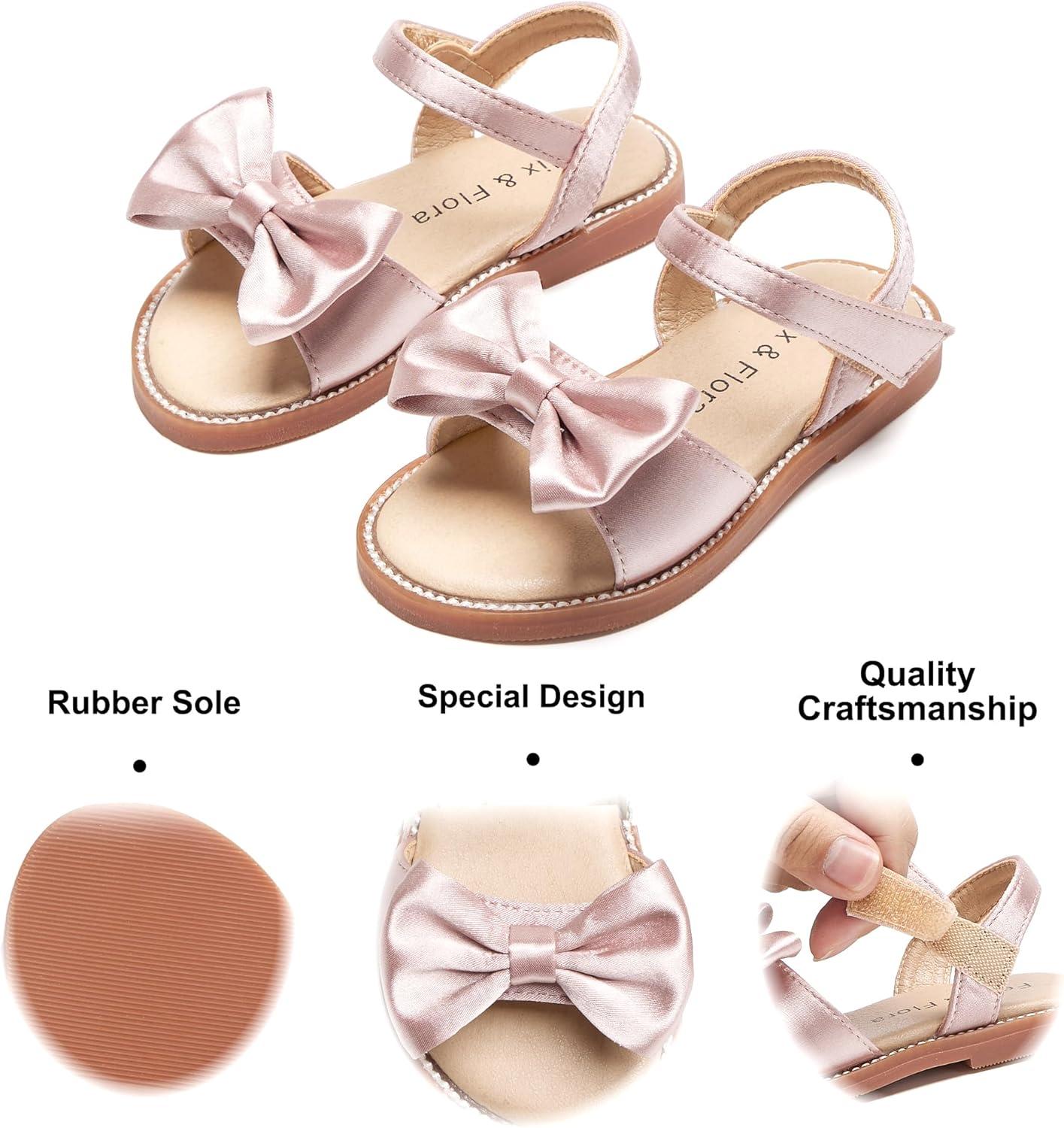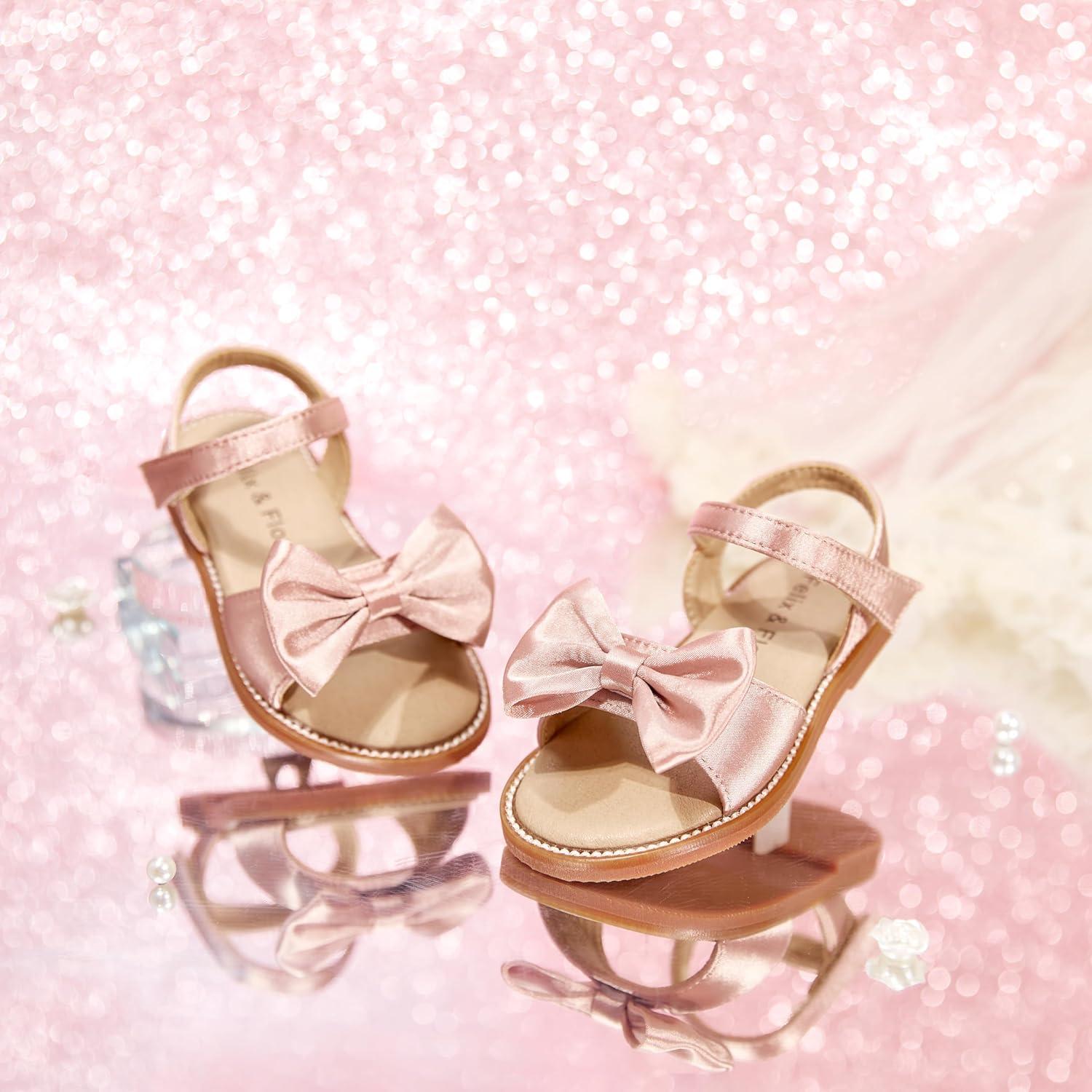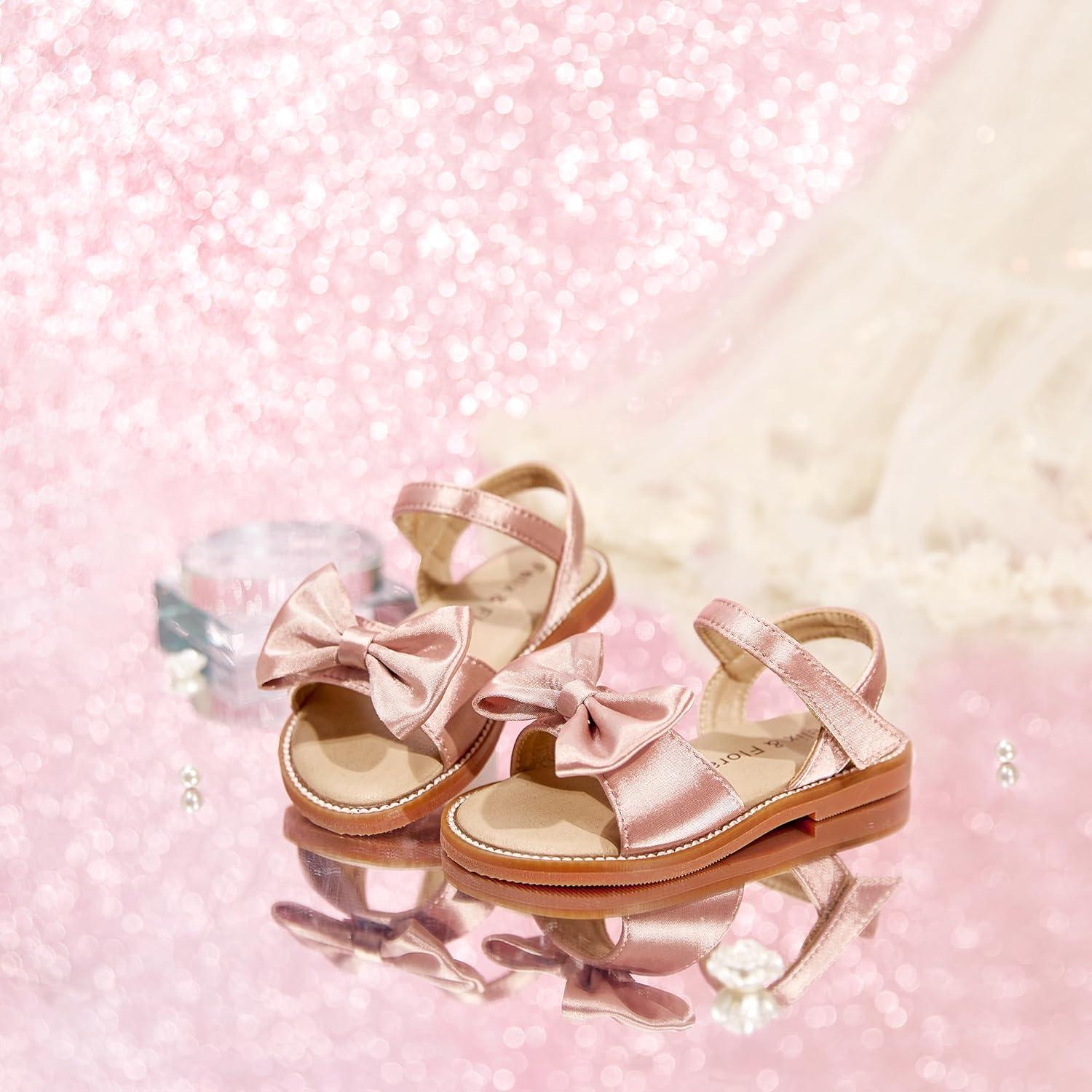 Felix & Flora Toddler Girl Sandals – Flower Girl Dress Shoes Open Toe Little Kid Summer Flats(Bc291-pink)