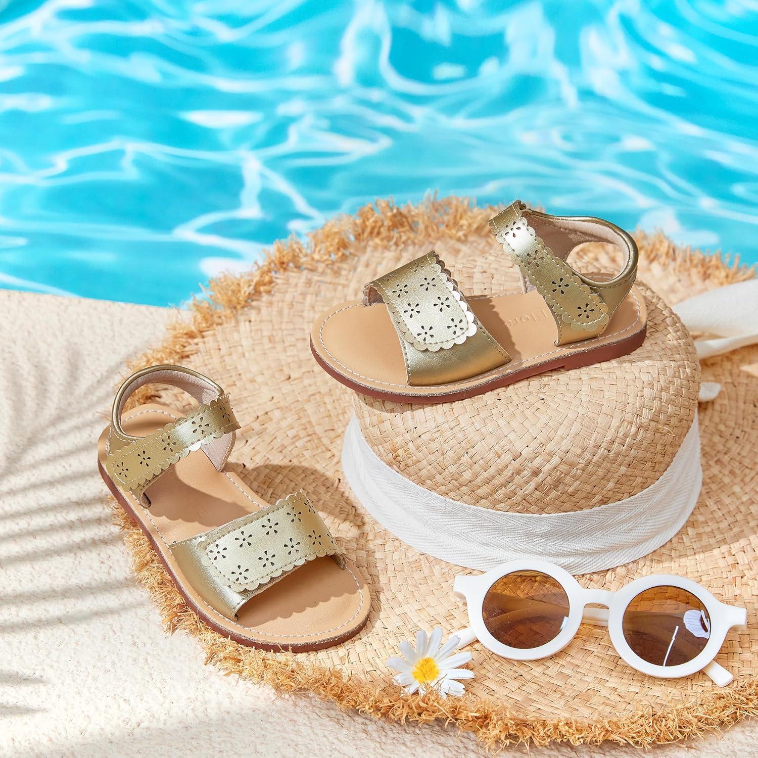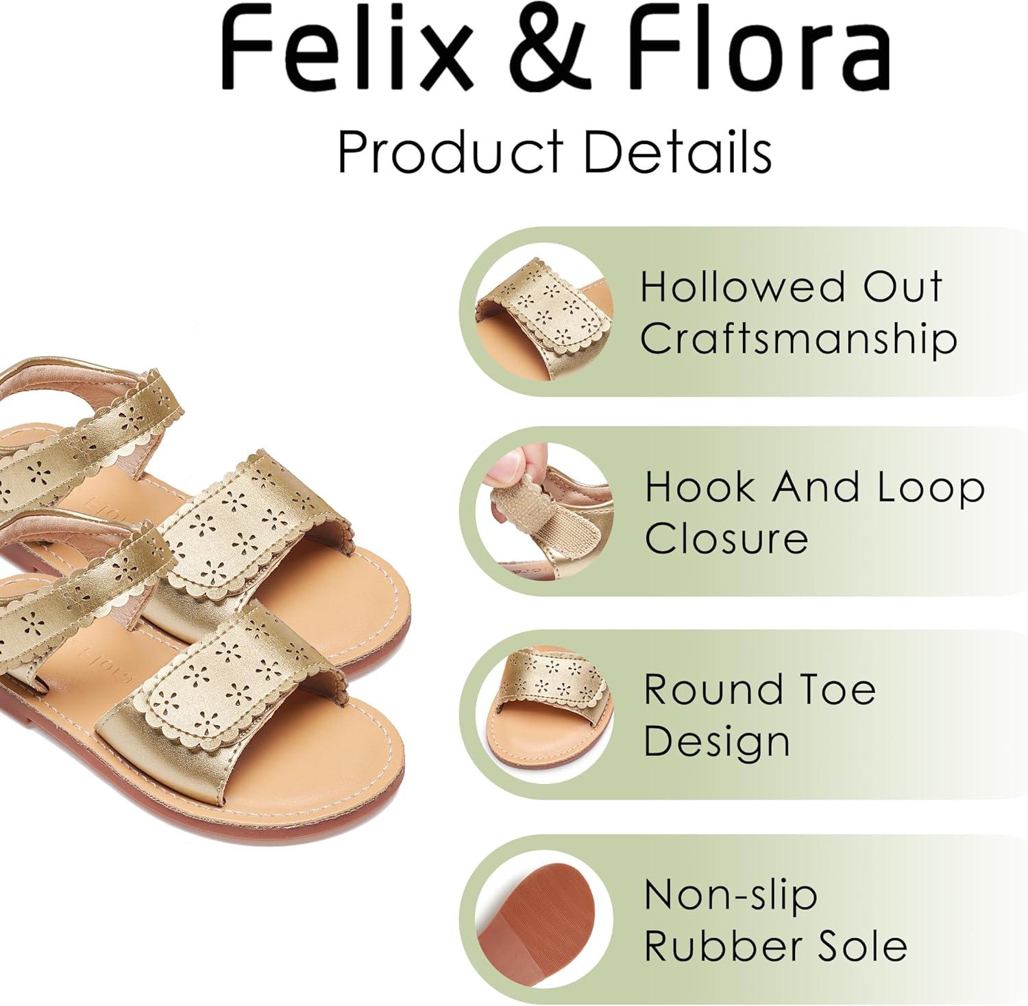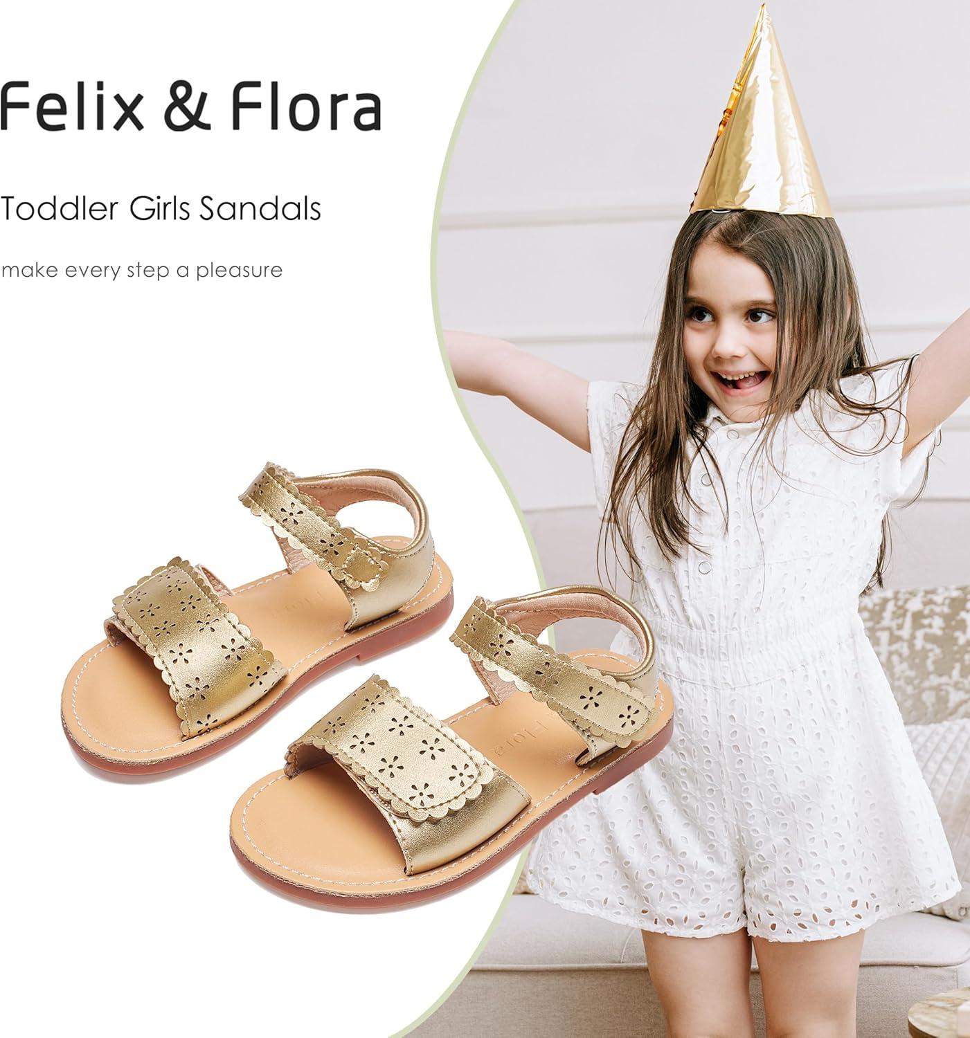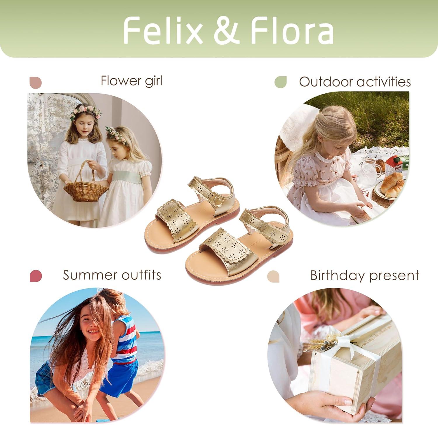 Felix & Flora Toddler Girl Sandals -Flower Girl Dress Shoes Open Toe Little Kid Summer Flats(Bc293-gold)