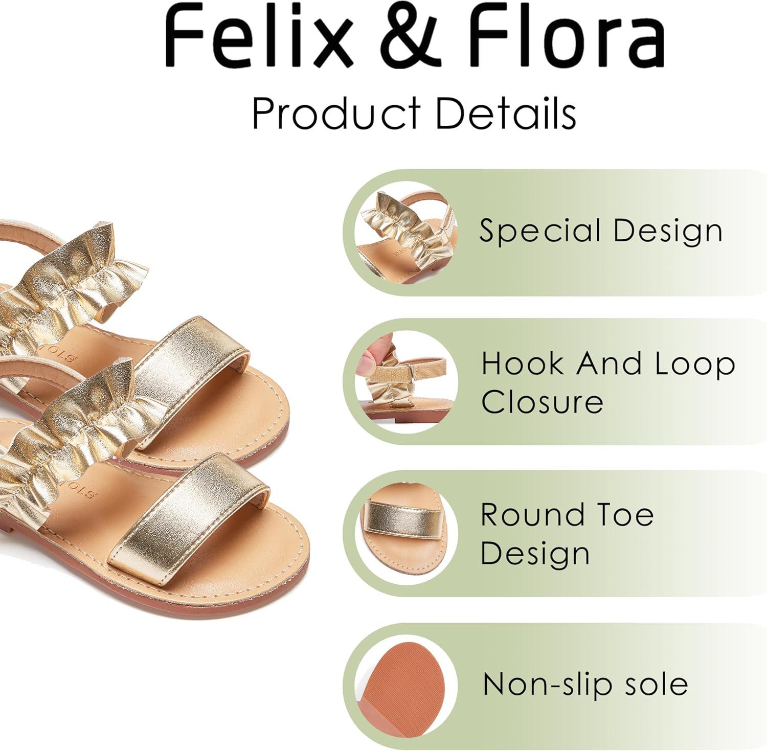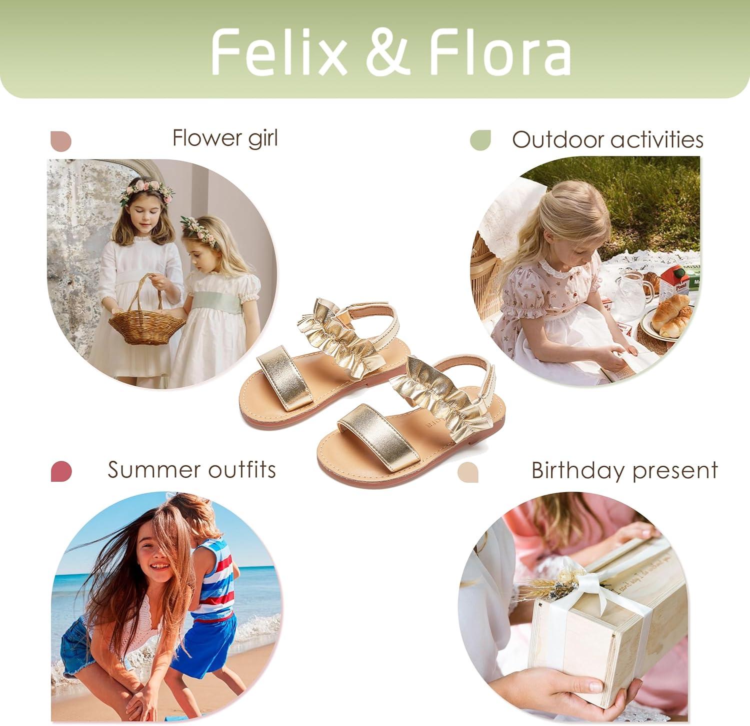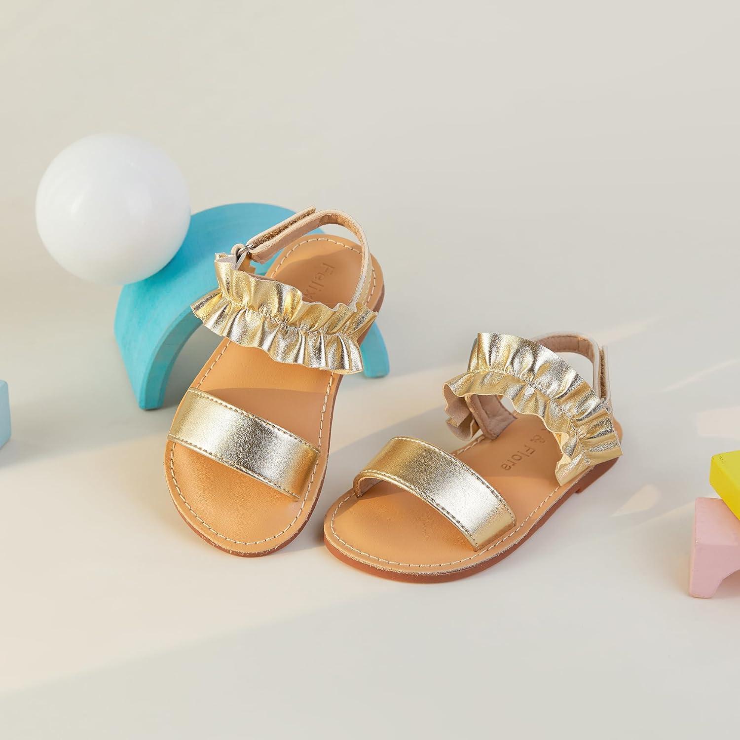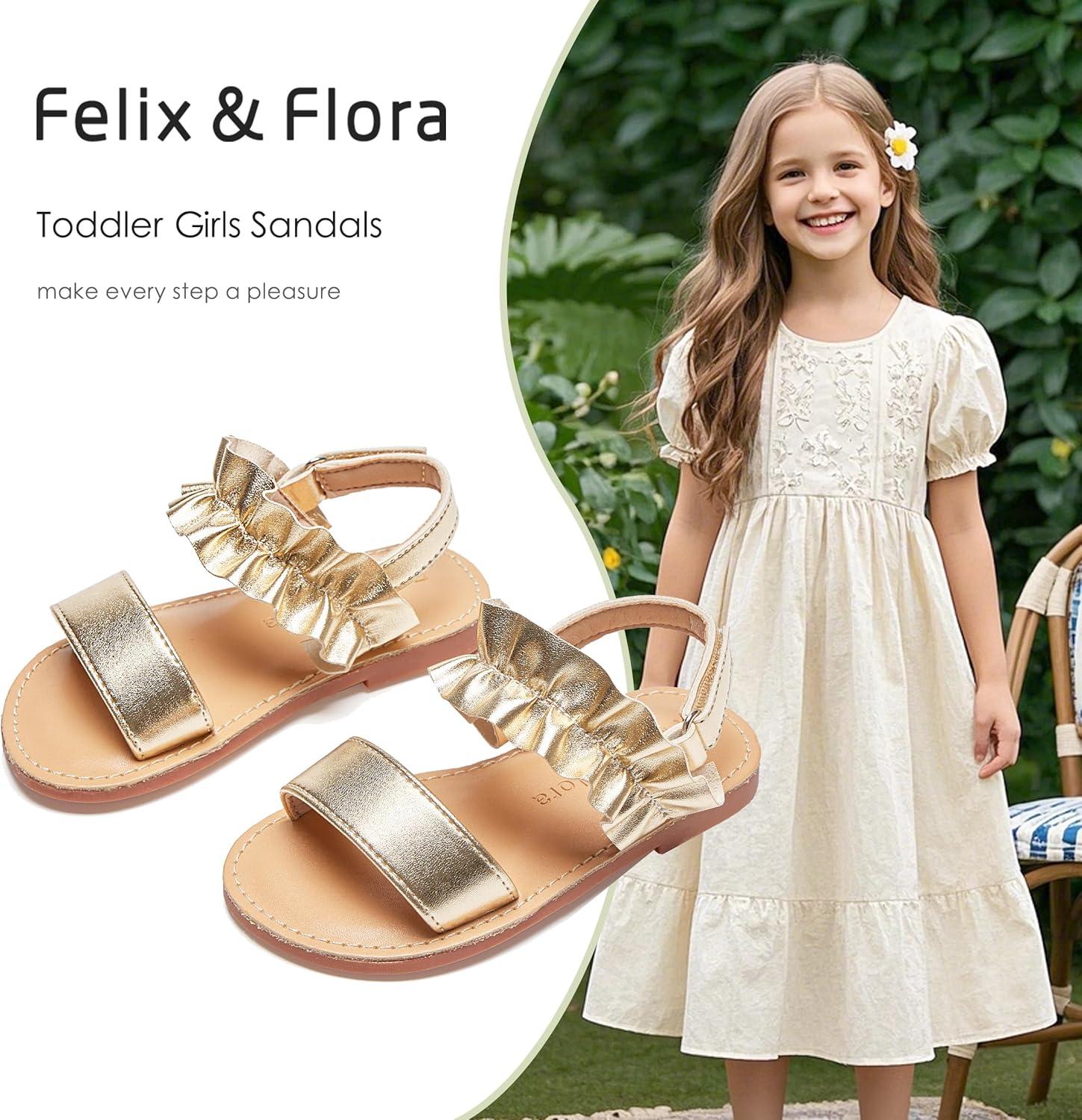 Felix & Flora Toddler Girl Sandals – Flower Girl Dress Shoes Open Toe Little Kid Summer Flats(Bc300-bright Gold)
