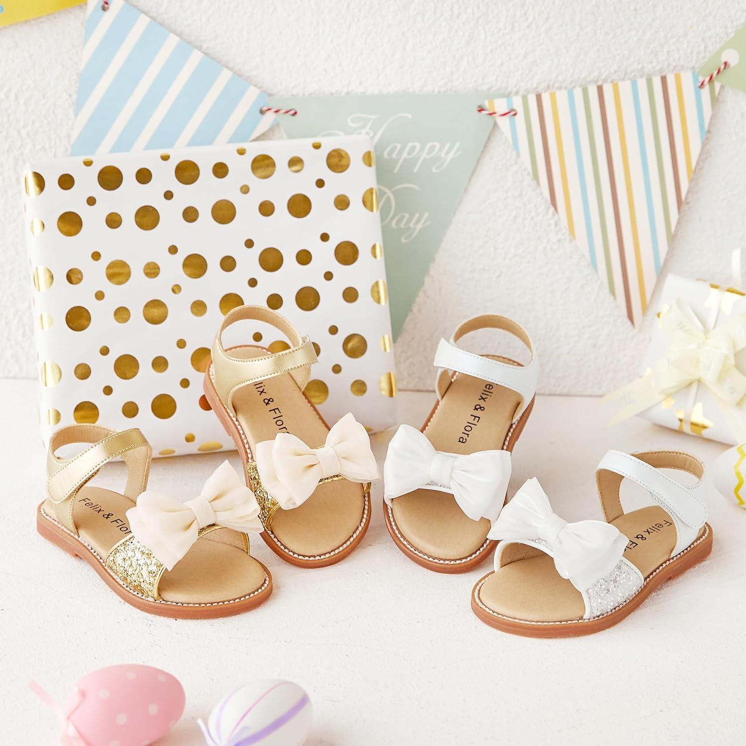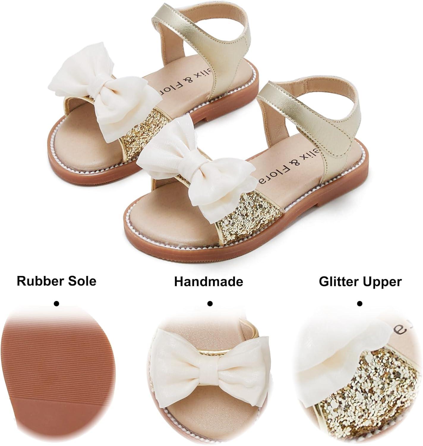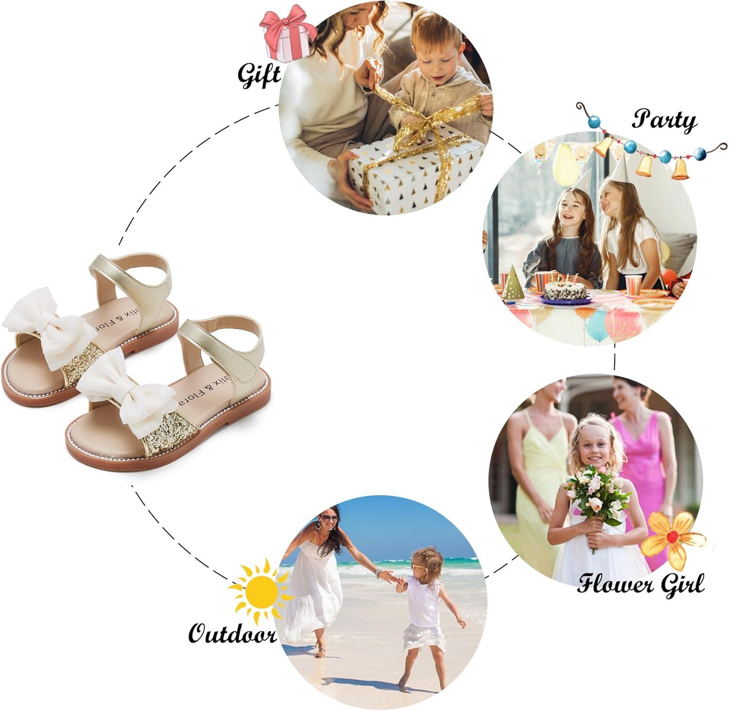 Felix & Flora Toddler Girl Sandals -Flower Girl Dress Shoes Open Toe Little Kid Summer Flats(Bc301-glitter Gold)