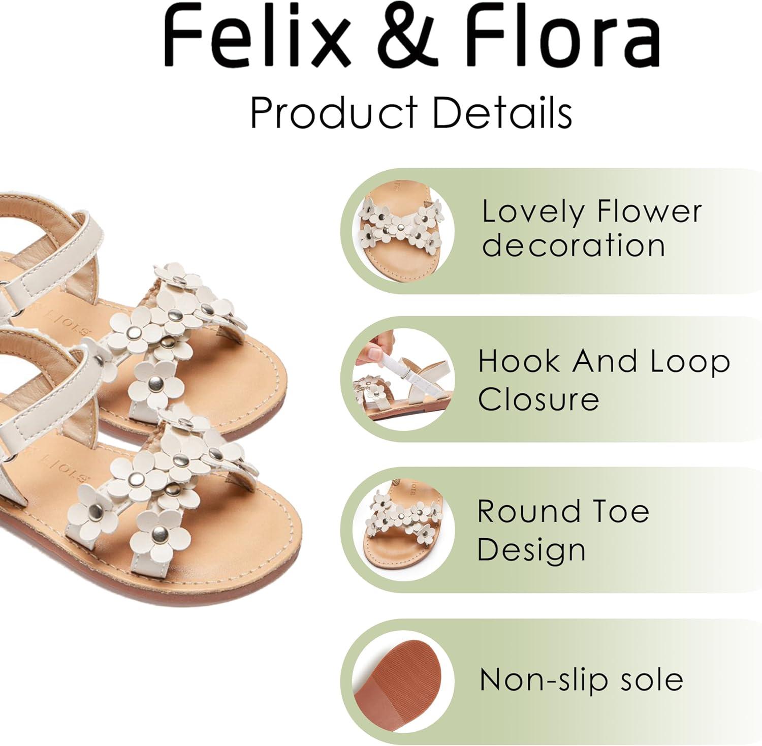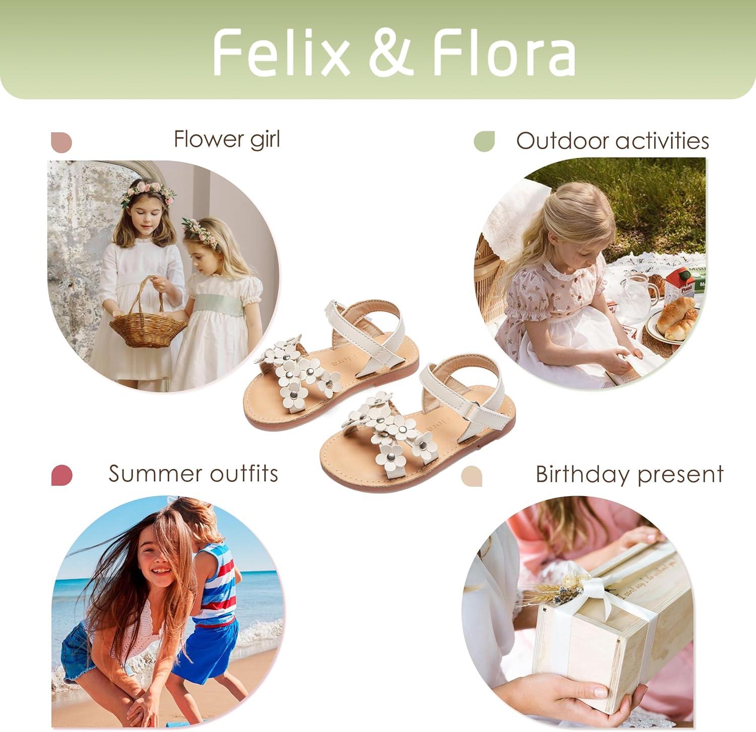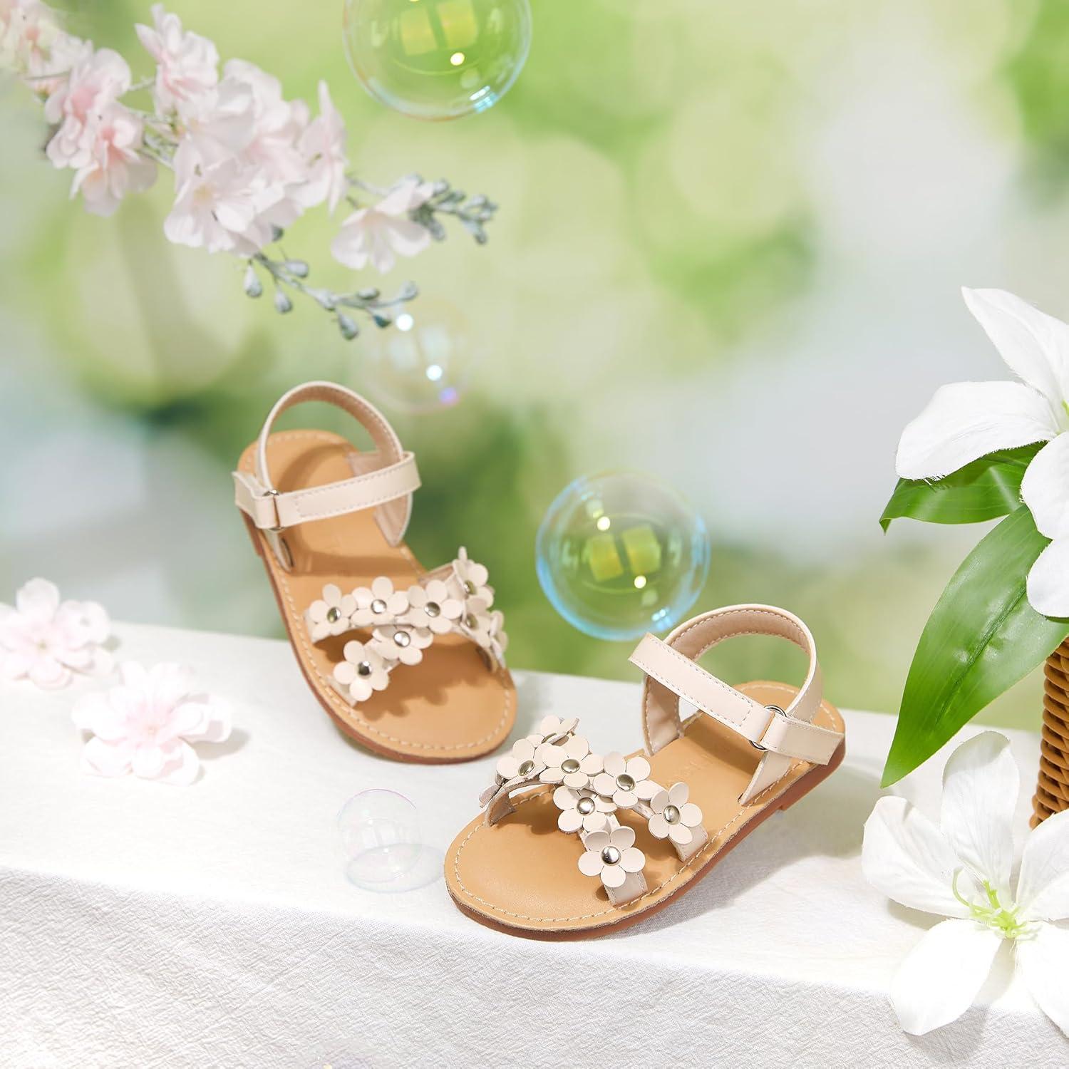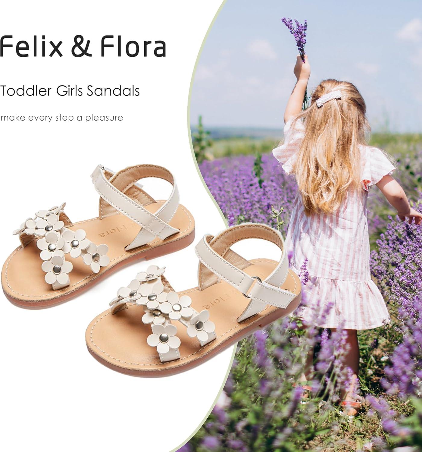 Felix & Flora Toddler Girl Sandals -Flower Girl Dress Shoes Open Toe Little Kid Summer Flats(Bc308-beige)