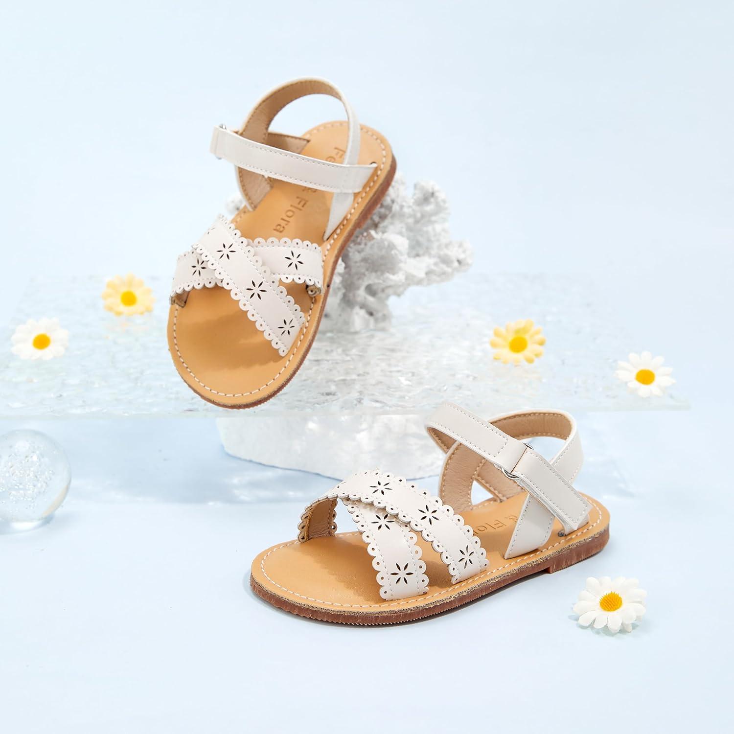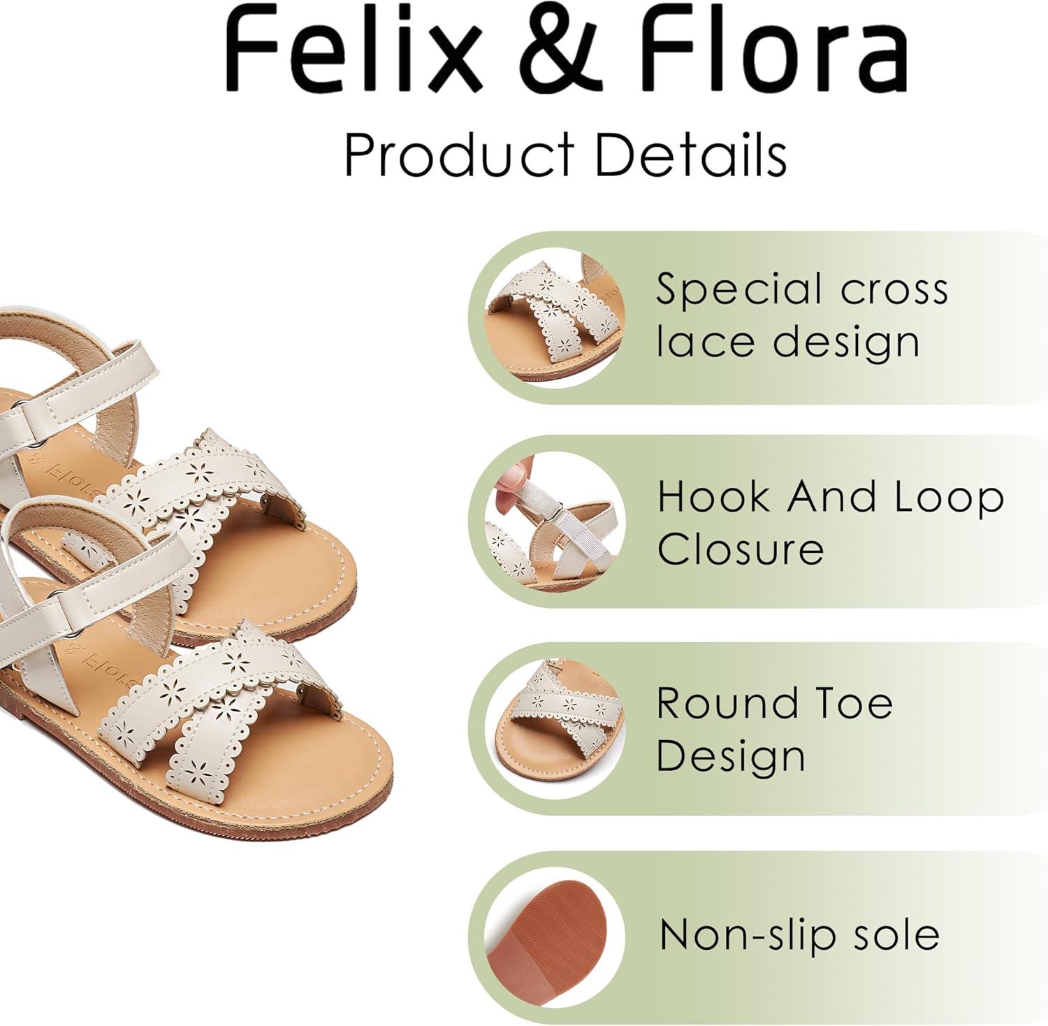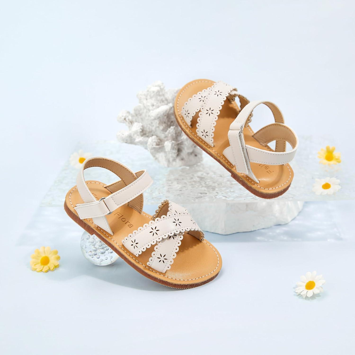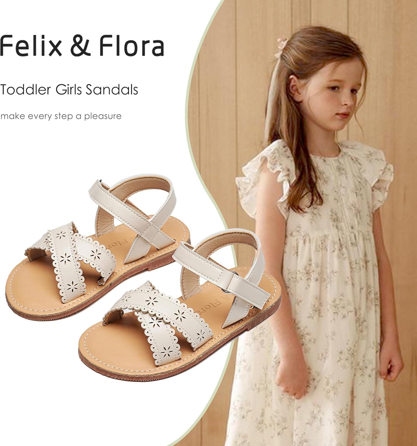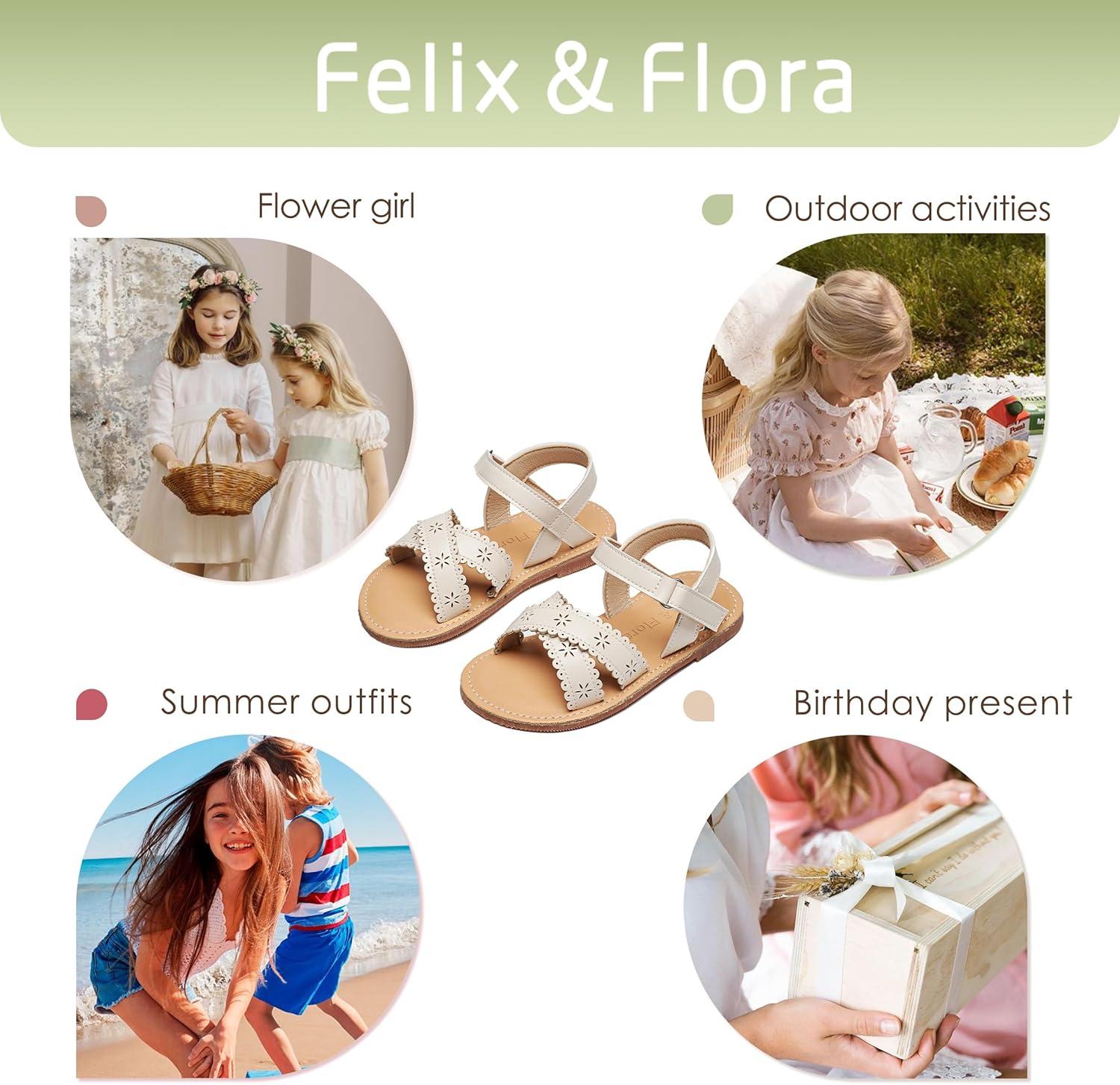 Felix & Flora Toddler Girl Sandals – Flower Girl Dress Shoes Open Toe Little Kid Summer Flats(Bc309-beige)